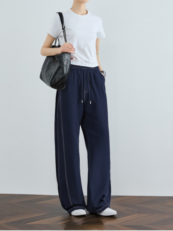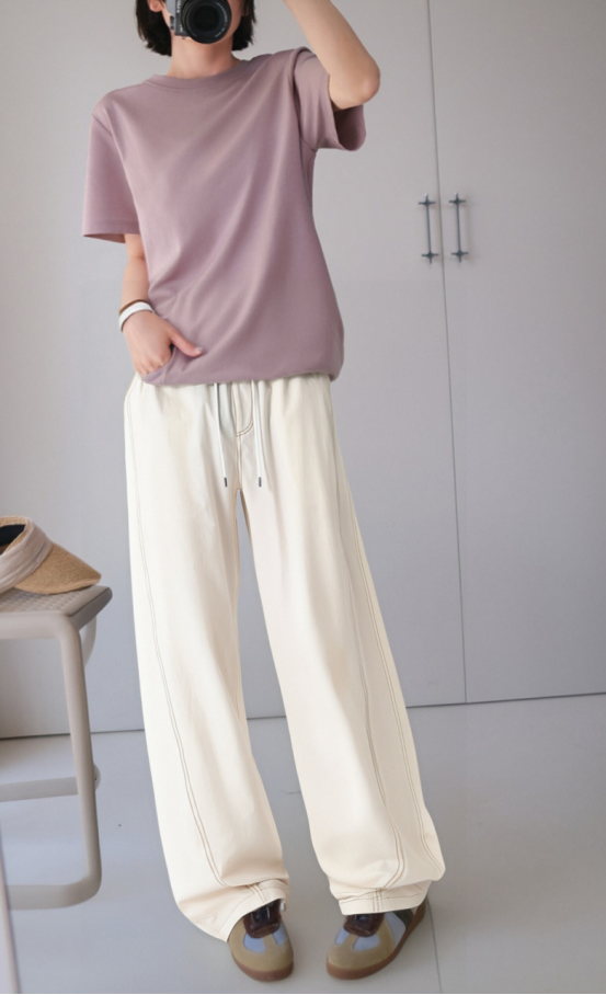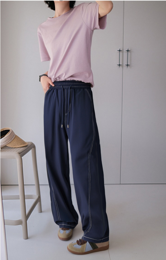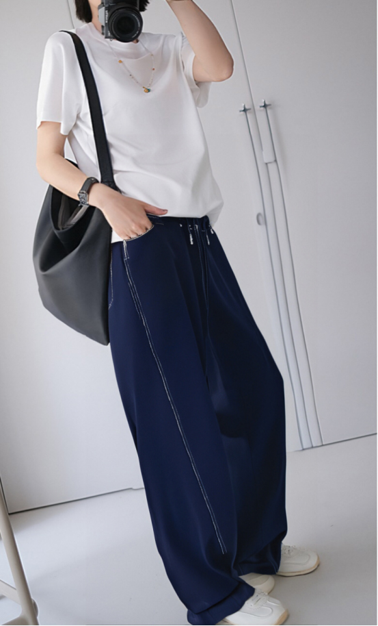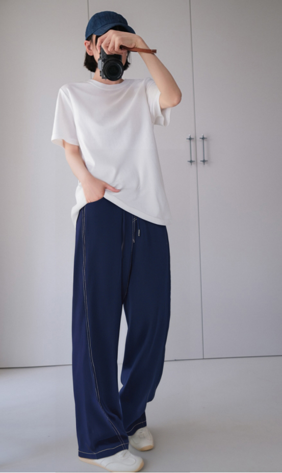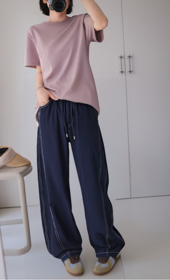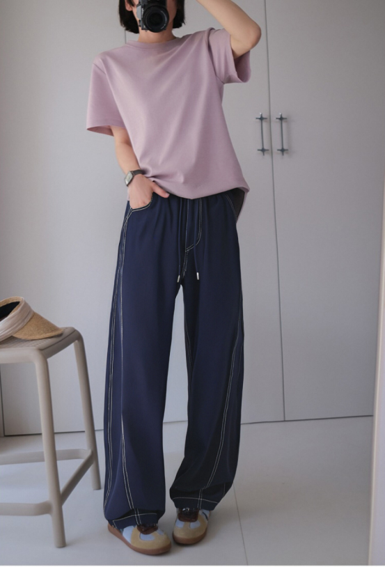 细节设计也堪称一绝 舒适腰口、侧边口袋、紧密车线和阔腿裤脚,每一个细节都彰显品质。 大口袋设计,出门把手机、钥匙轻松塞进去,再也不用大包小包带一堆东西