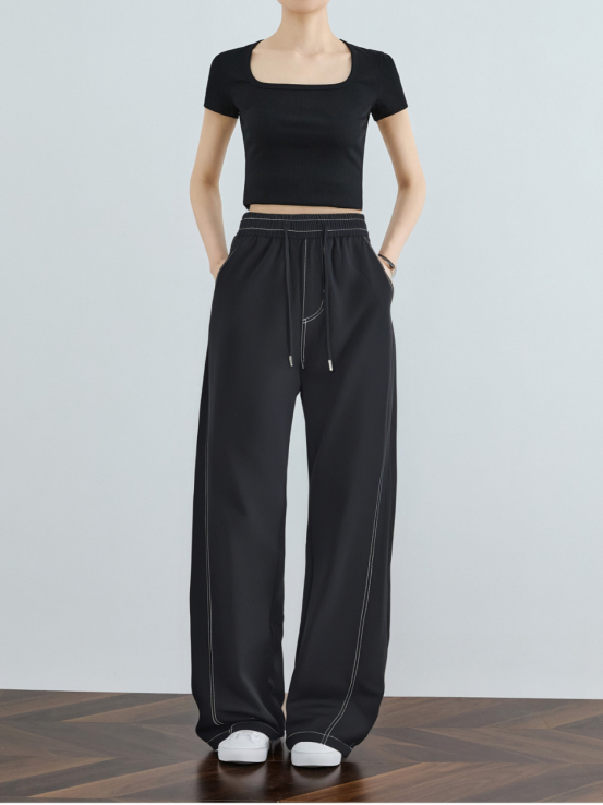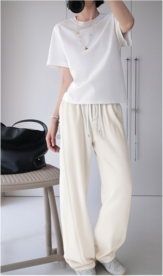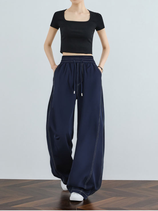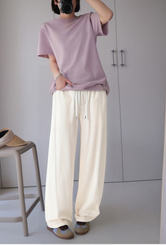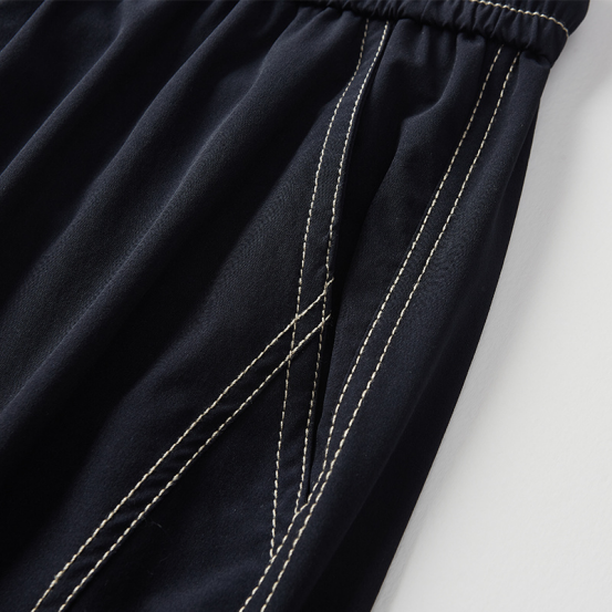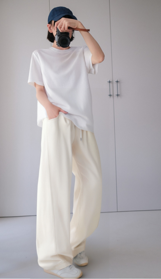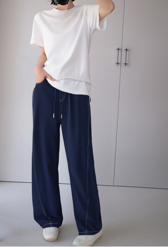 细节设计也堪称一绝 舒适腰口、侧边口袋、紧密车线和阔腿裤脚,每一个细节都彰显品质。 大口袋设计,出门把手机、钥匙轻松塞进去,再也不用大包小包带一堆东西