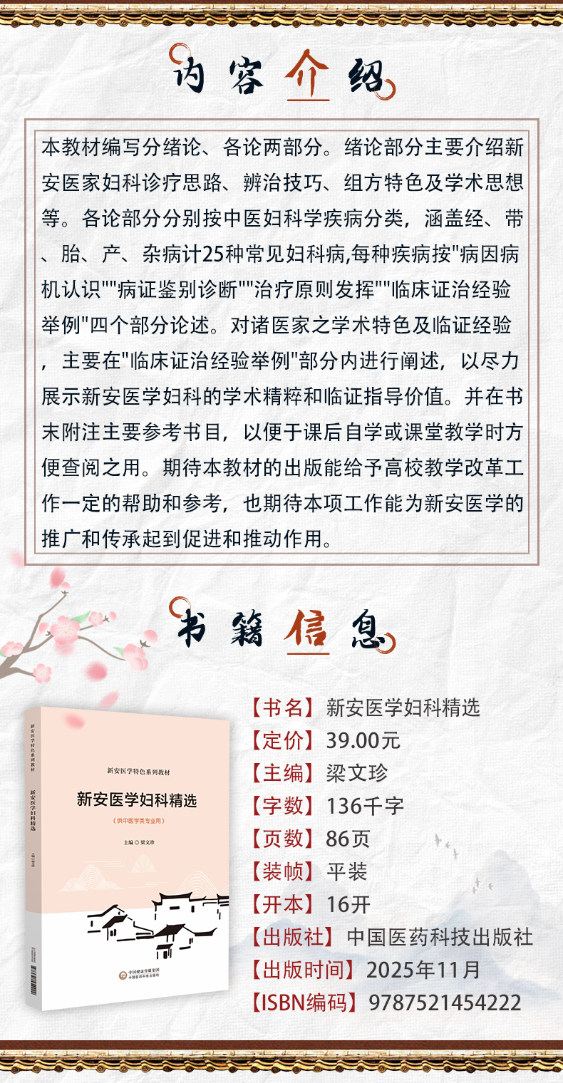 新安医学妇科精选(新安医学特色系列教材)梁文珍 主编 本教材可供中医学类专业师生教学使用 9787521454222中国医药科技出版社