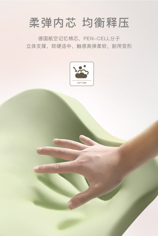 选用德国航空记忆棉作为内芯,层层回弹,立体支撑人体腰背部,层层回弹,有效缓解人体自身重量和驾车途中急刹对脊柱的损伤。软硬适中触感柔软高弹,耐用不变形。