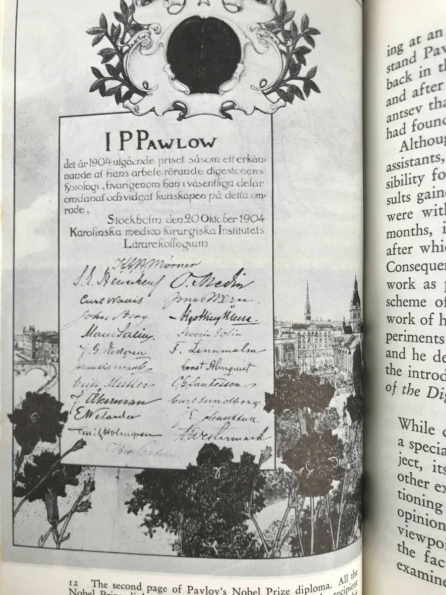 1904年,巴甫洛夫因在消化系统生理学方面取得的开拓性成就,获得了诺贝尔生理学或医学奖。他是苏联第一个获得诺贝尔奖的科学家。