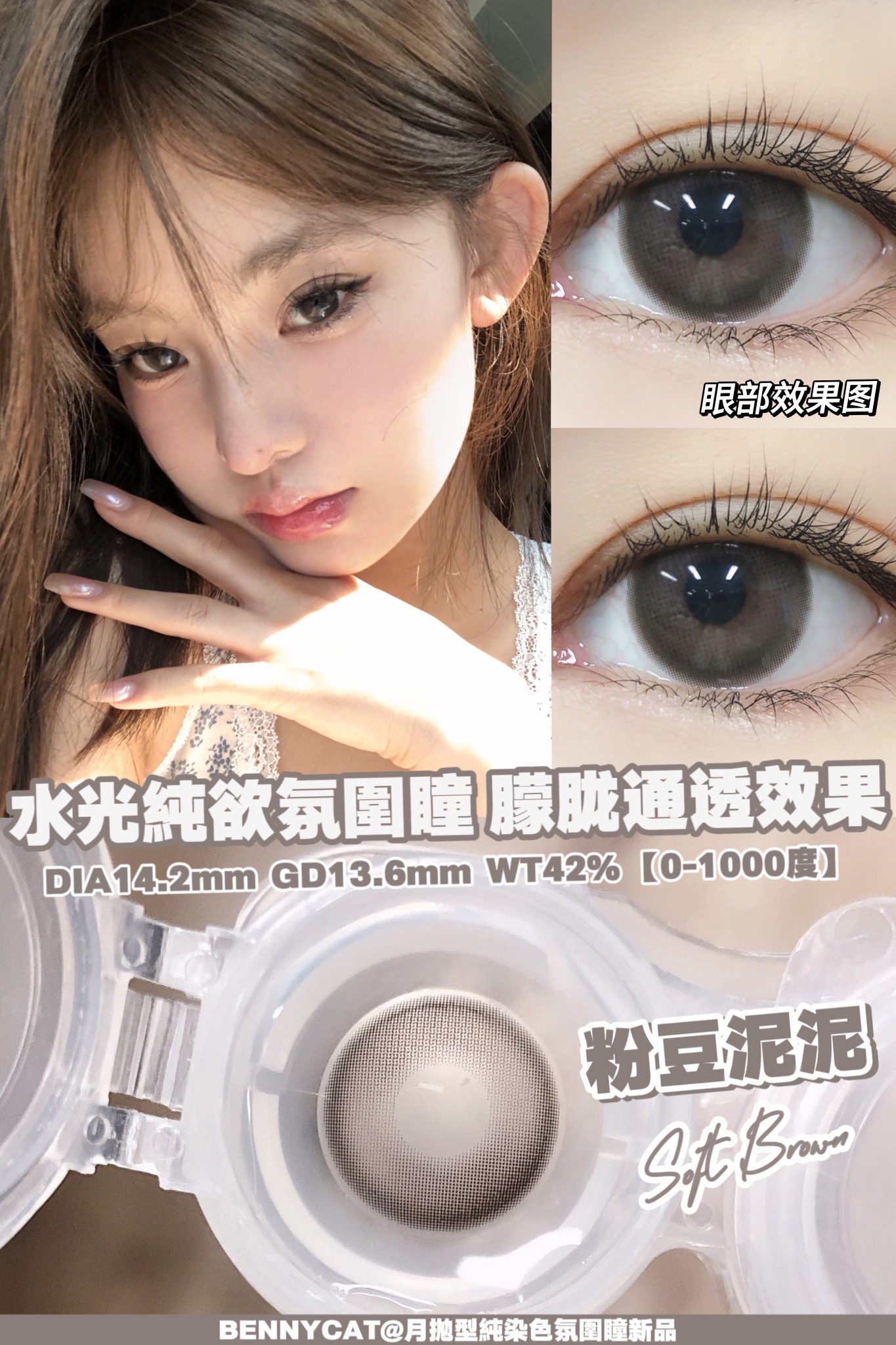粉豆泥泥 直径14.2 染色13.6 含水量42% 基弧8.6🆕博主同款 纯欲风格月抛!甘愿沉沦进粉豆泥泥的温柔乡