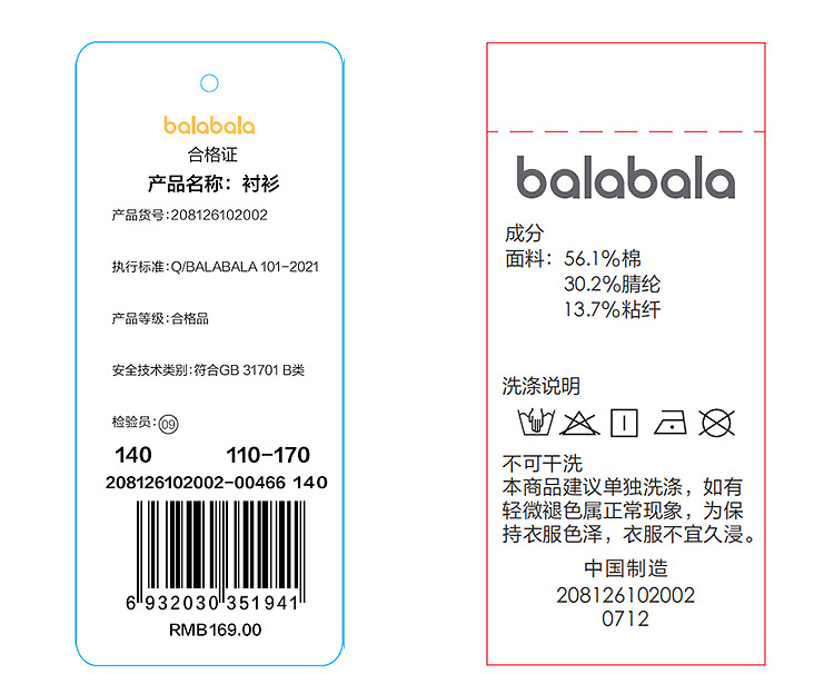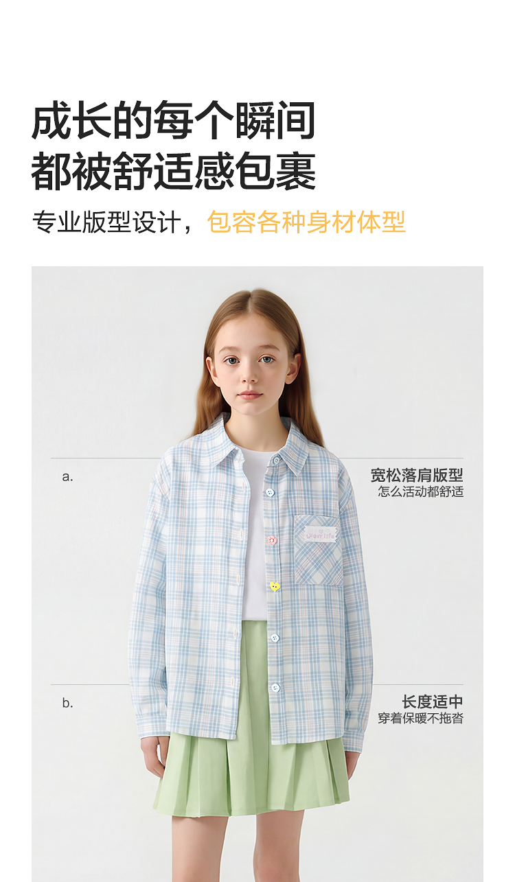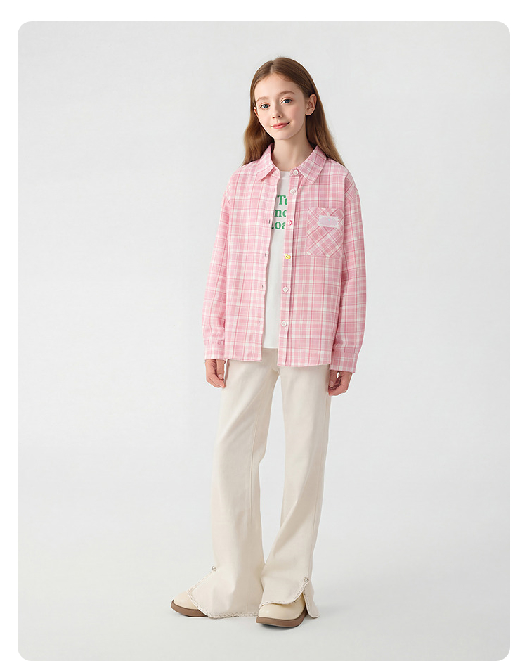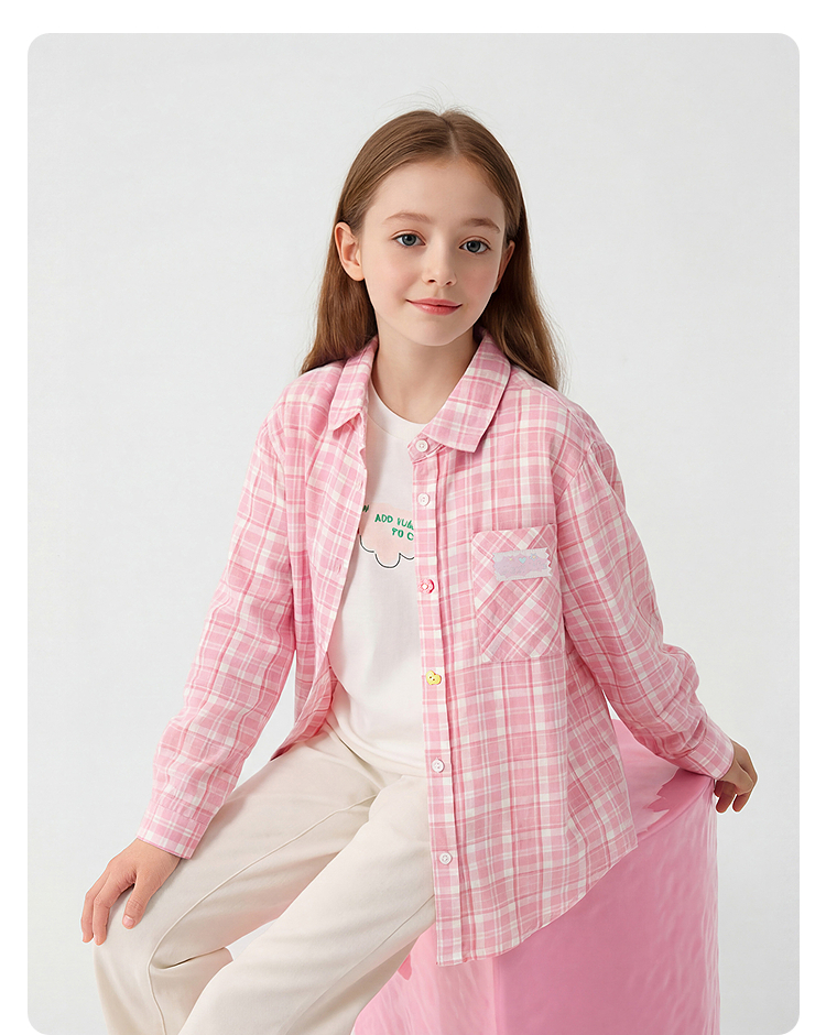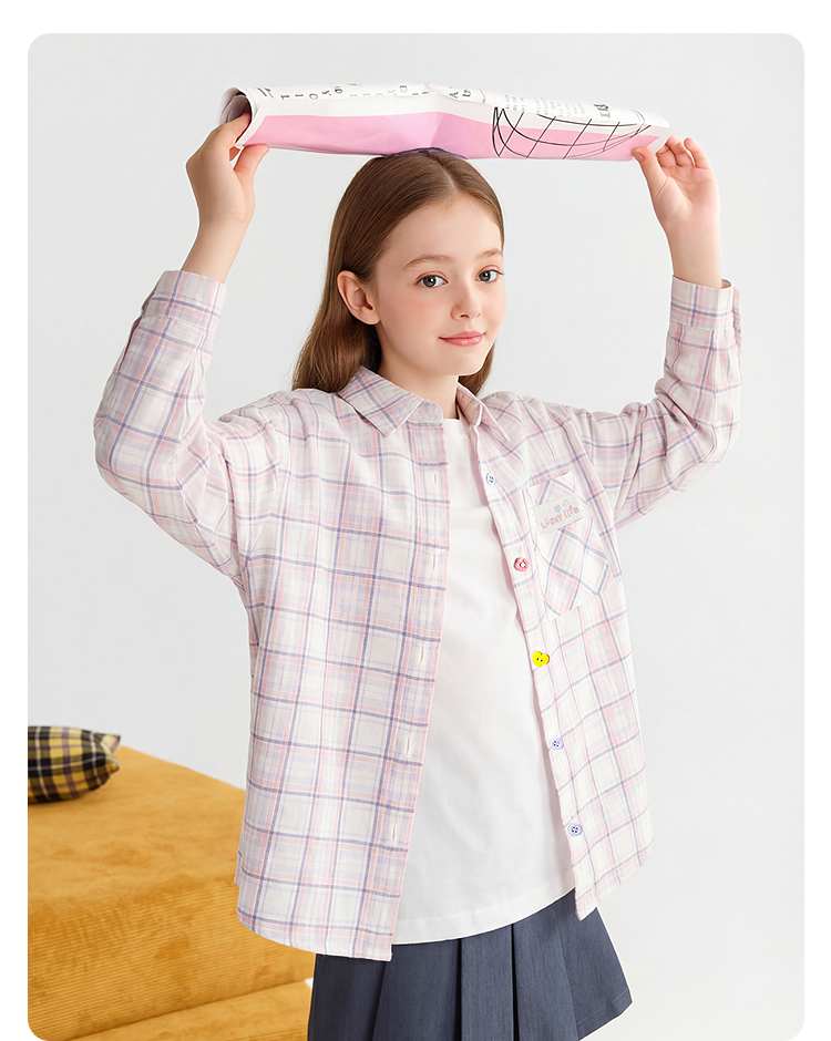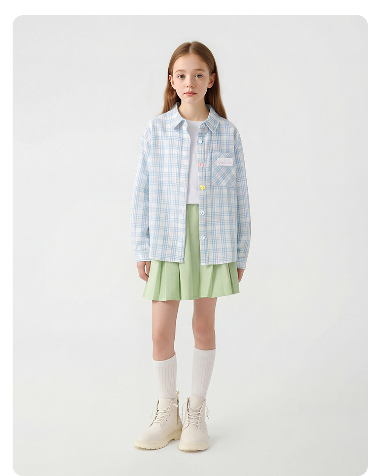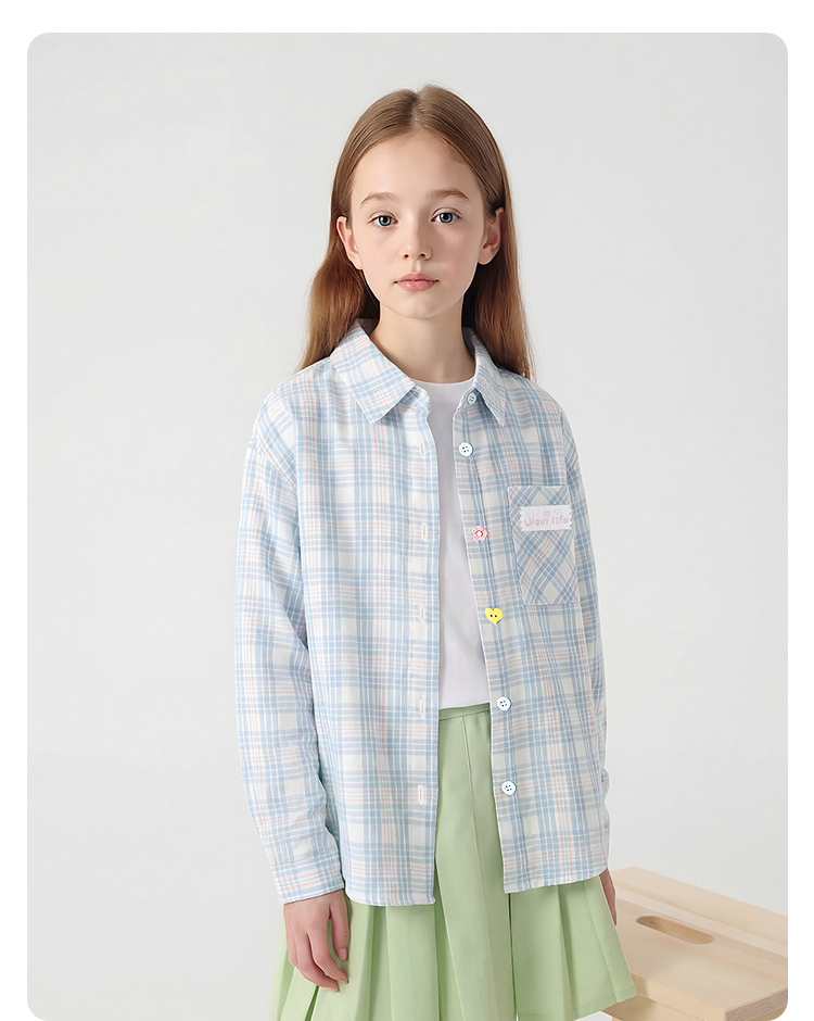 【balaOne】巴拉巴拉童装儿童长袖衬衫女童2026新款春装格子时尚