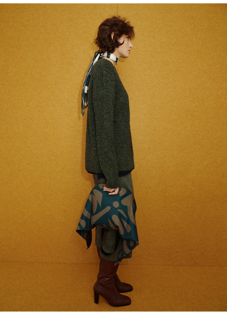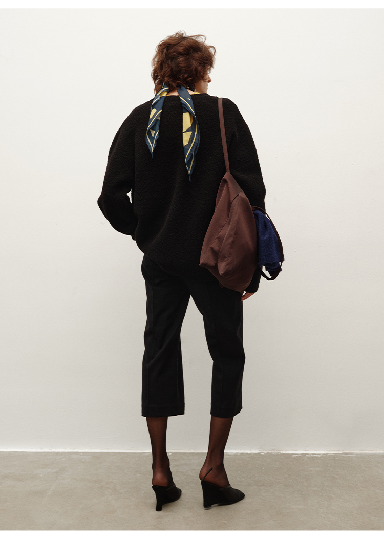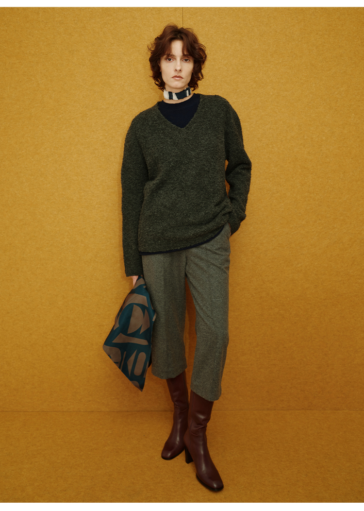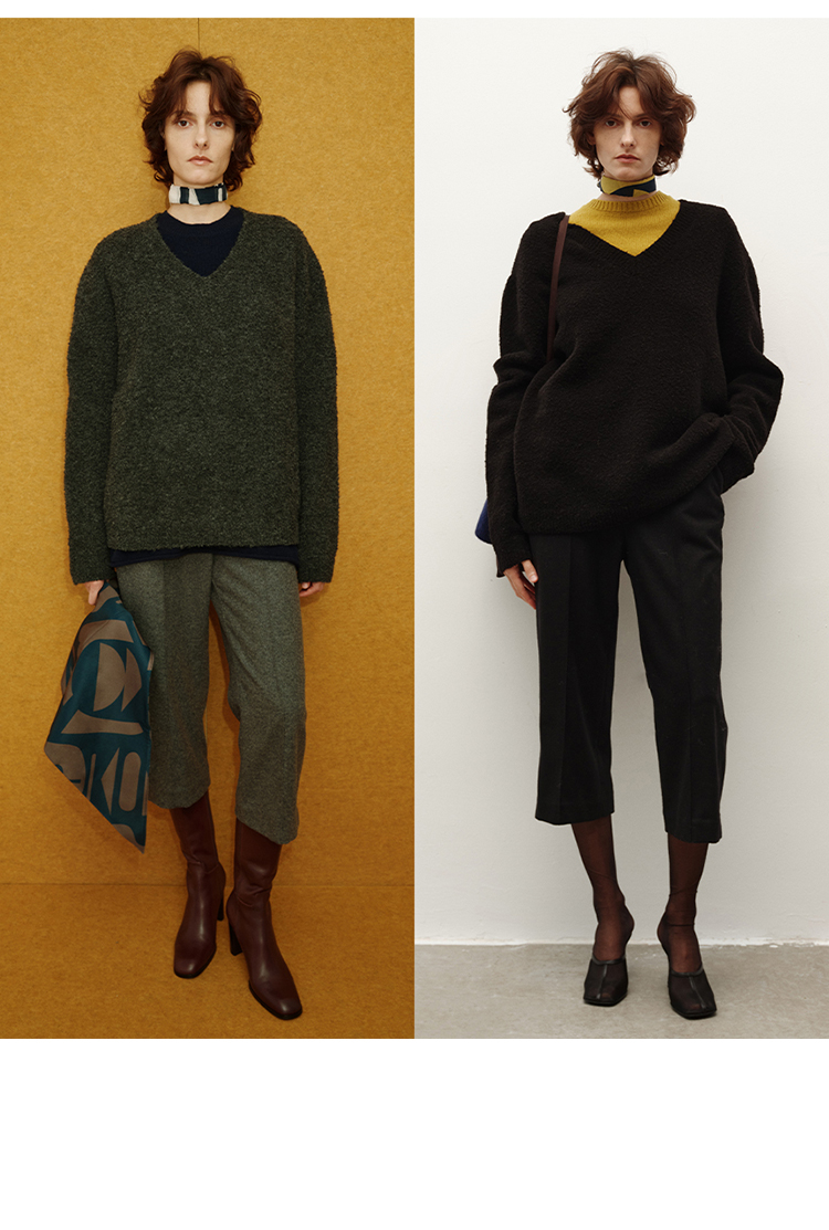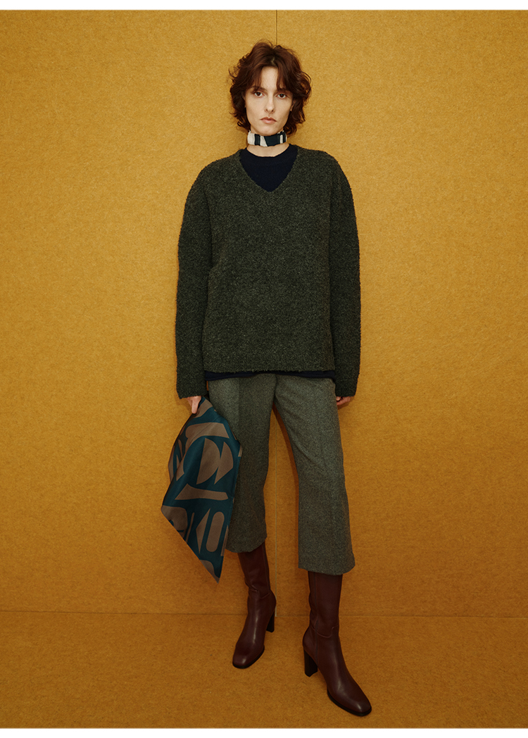 HIDEMI 进口强缩肌理澳洲美利奴羊毛v领大阔型厚款oversize套头慵懒毛衣