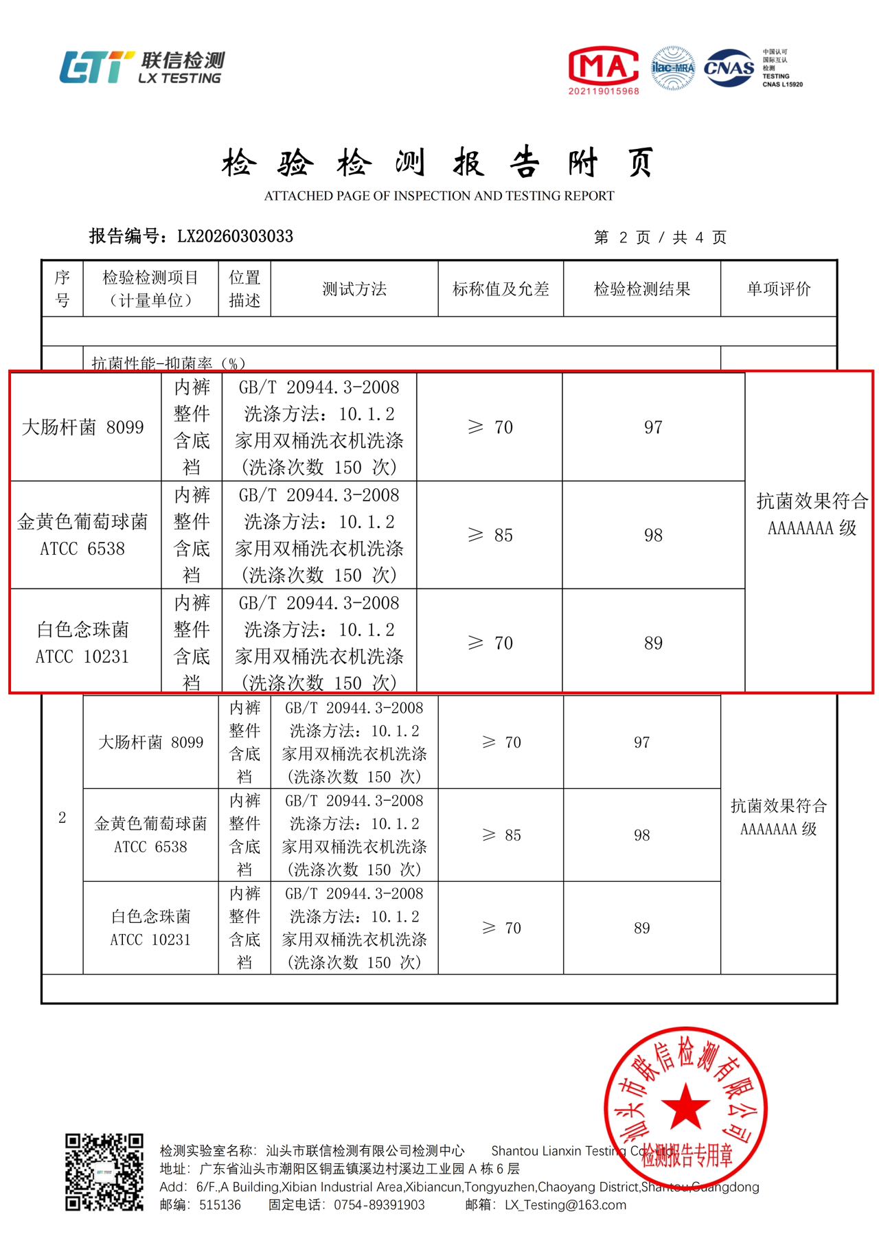 整件采用7A级高倍抗菌面料