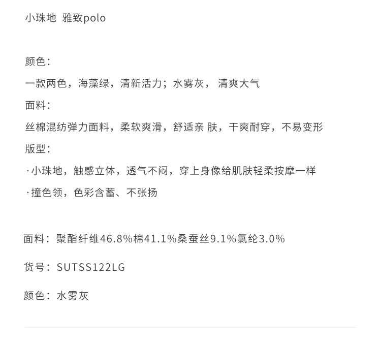 callisto水雾灰小珠地丝绵混纺弹力T恤