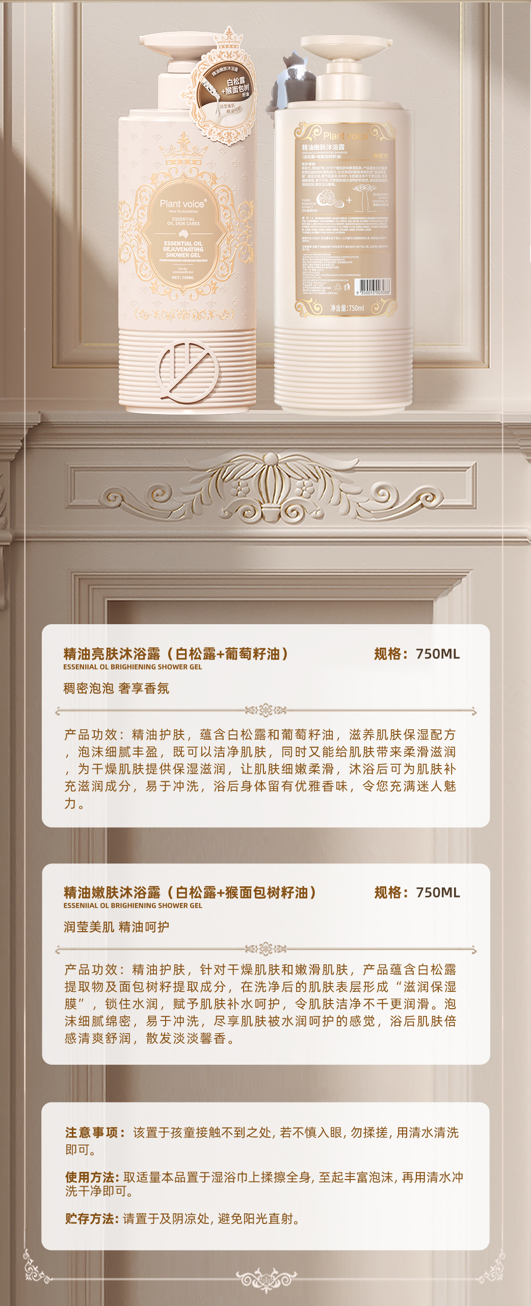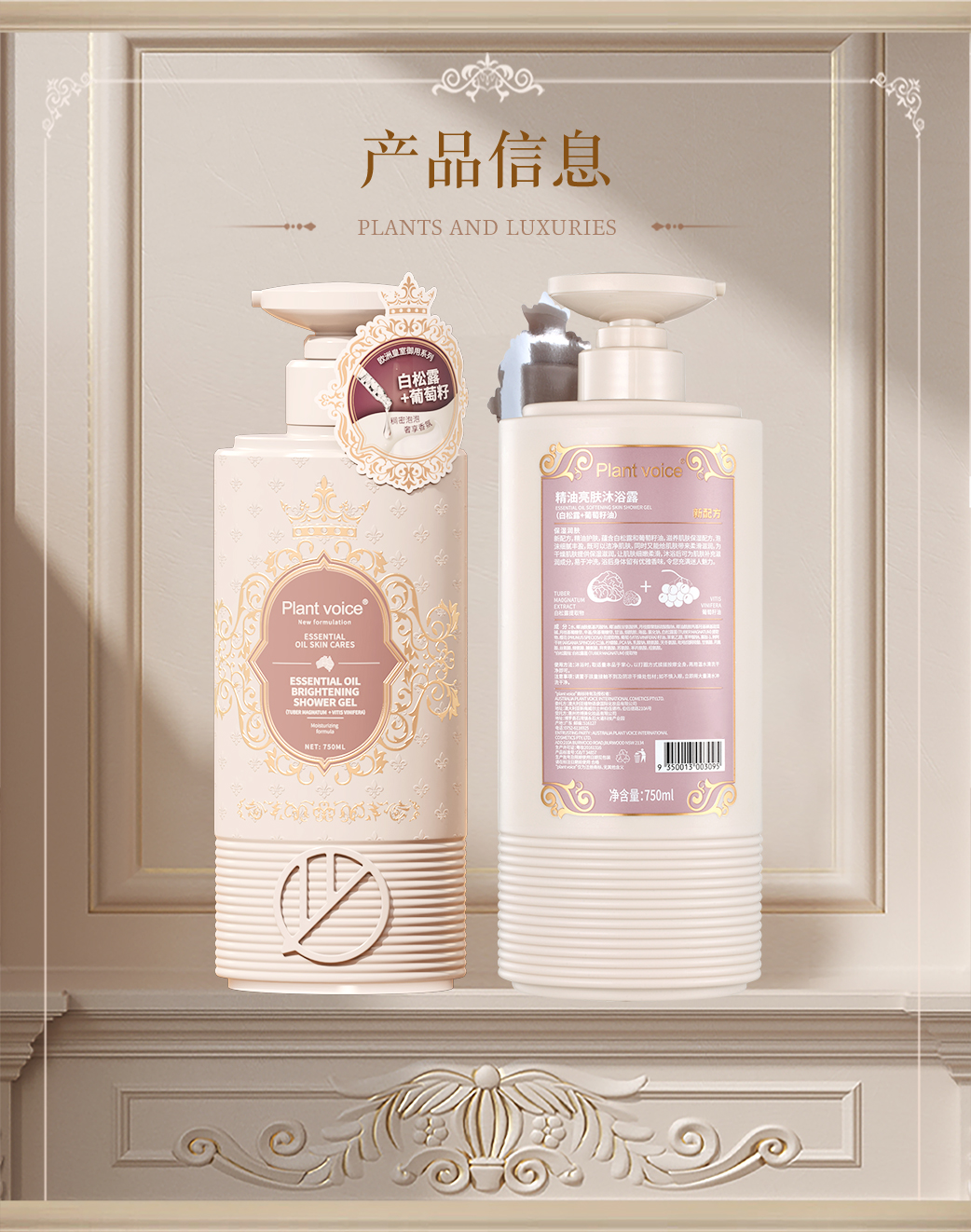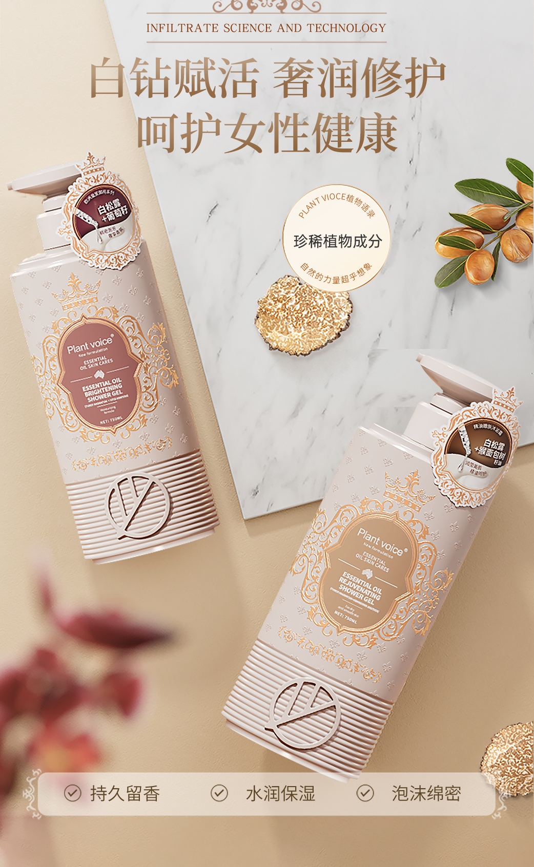 【皇家植园 天然萃取】Plant voice植物语录白松露精油香氛沐浴露750ml 持久留香 保湿滋润 亮肤嫩肤