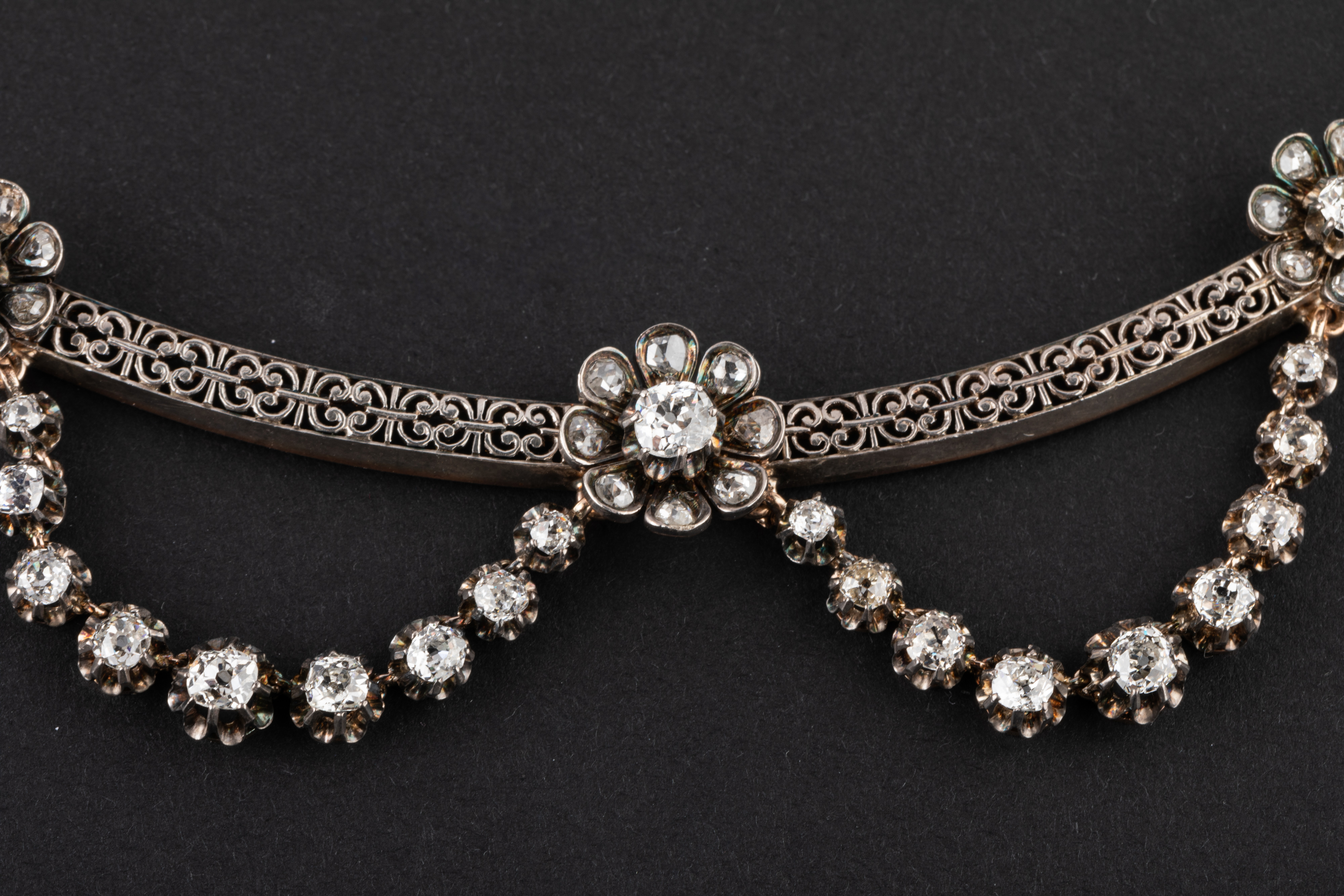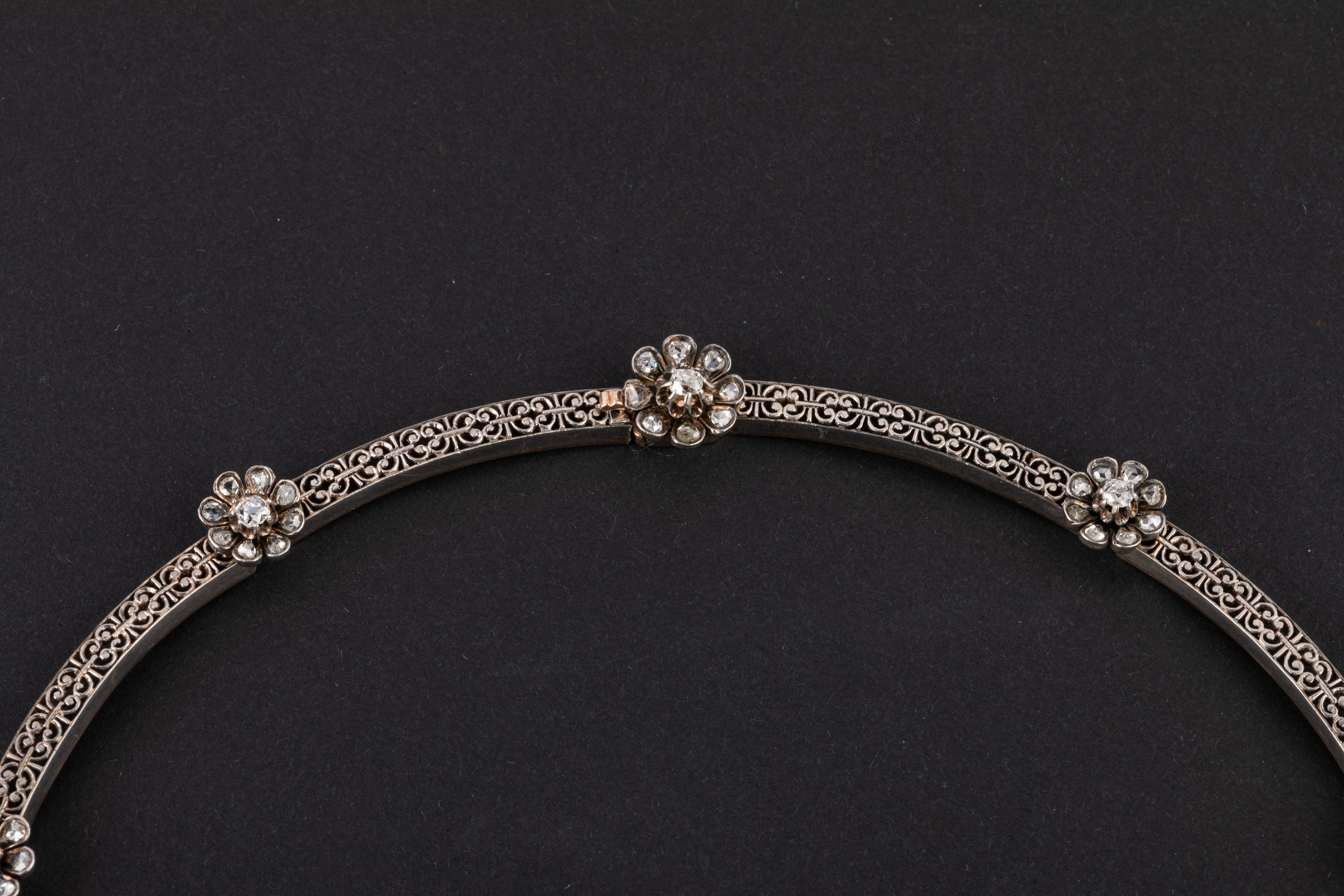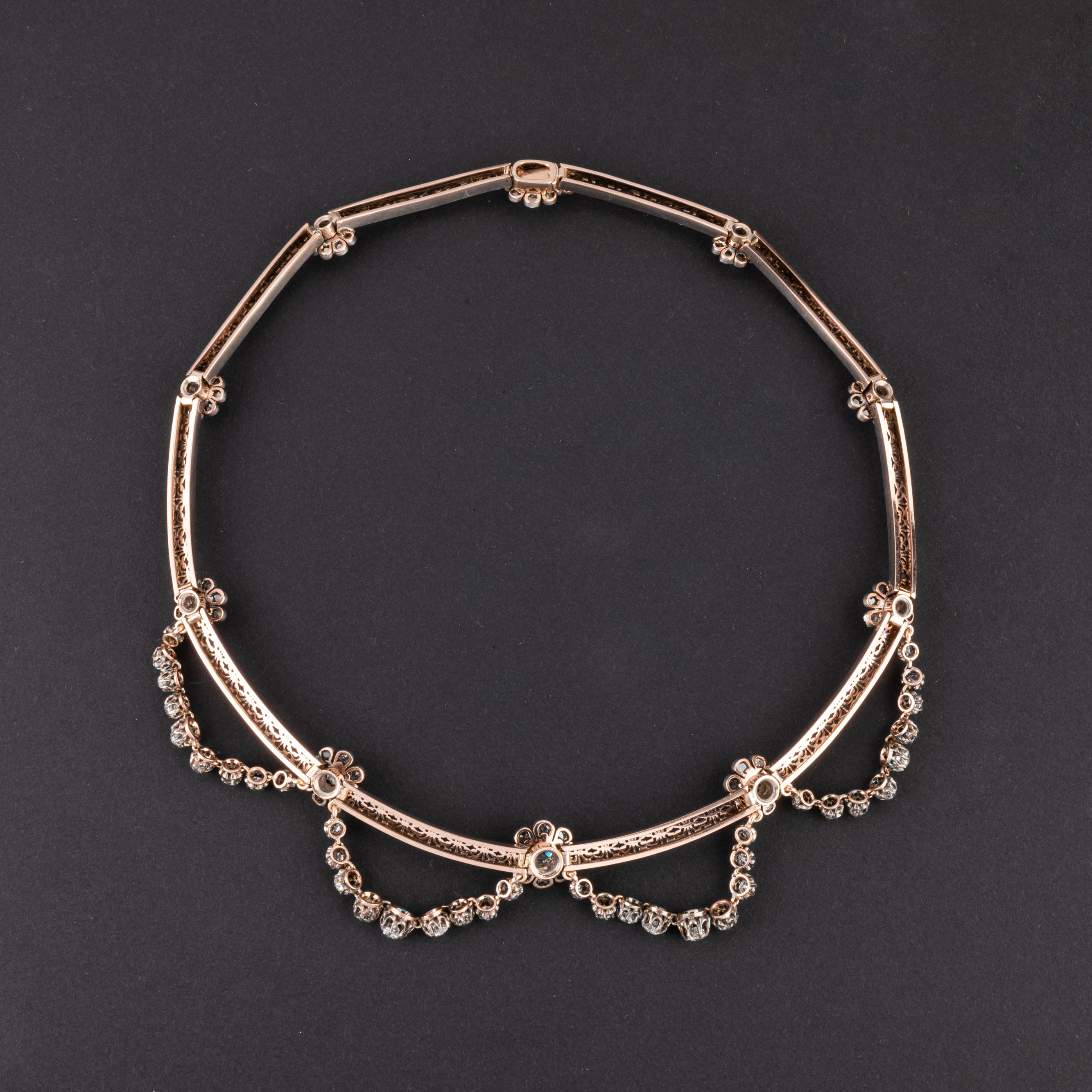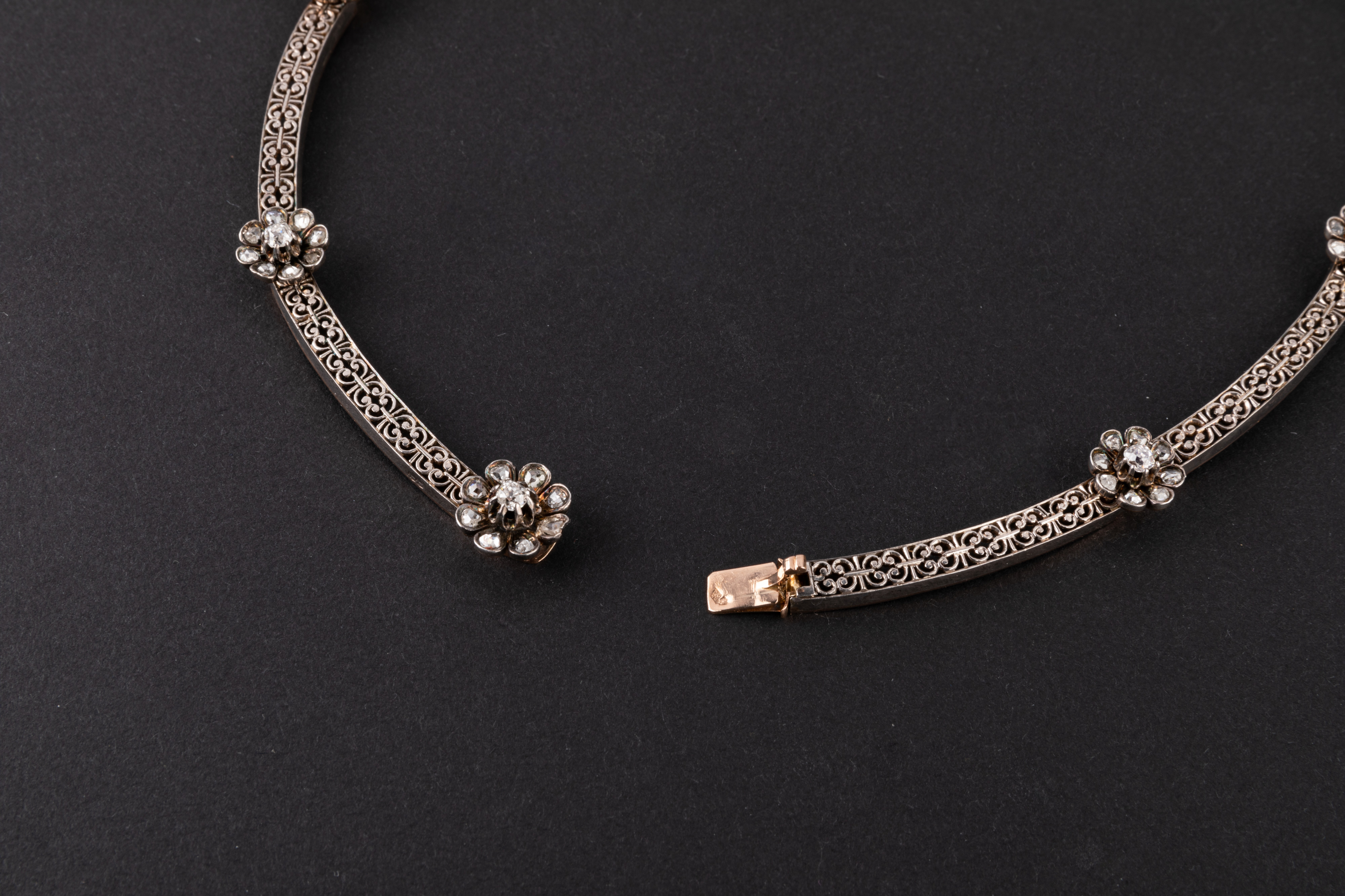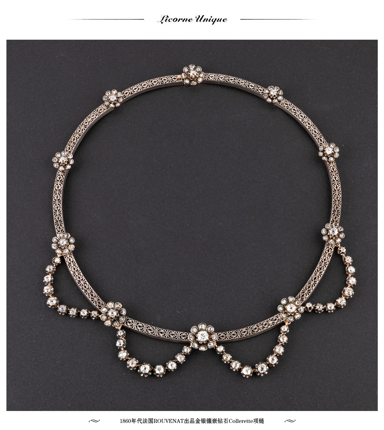 独角鹿西洋古董珠宝首饰法国ROUVENAT金银镶嵌钻石Collerette项链