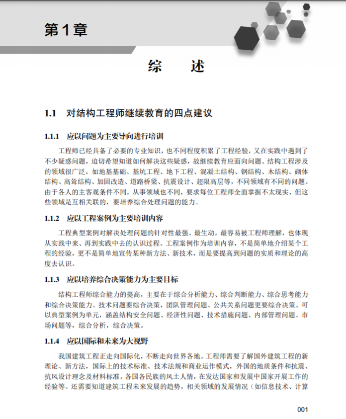 根据住房和城乡建设部对 2018 年全国具有资质的工程勘察设计企业从业人员情况进行的统计,2018 年年末全国工程勘察设计行业从业人员 447.3 万人,其中专业技术人员188.2 万人。具有高级职称的人员为 40 万人,占从业人员总数的 9%;具有中级职称的人员为 67.7 万人,占从业人员总数的 15.1%。由这些数据可以看出,我国还急需大量的素质高、技术能力强、工程实践经验丰富的建设人才。