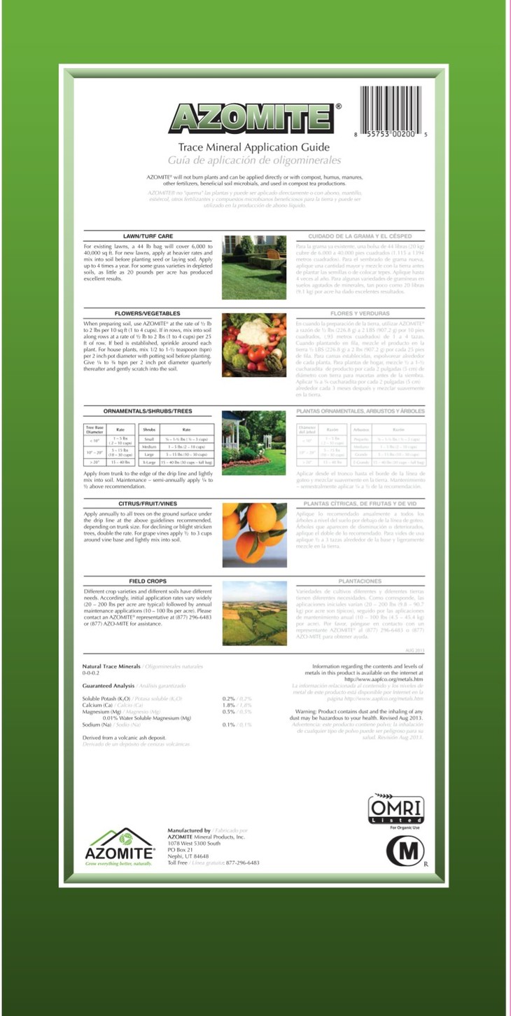本产品用于果树、蔬菜等作物根施,补充作物所需要的67种中微量元素,解决土壤长期耕作后造成的中微量元素缺乏问题,使用后显著改善品质,作物健康程度增加!