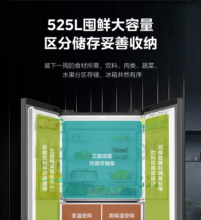 美的(Midea)(202834)冰箱 BCD-525WUSGPZM(Q) 墨兰灰-微澜