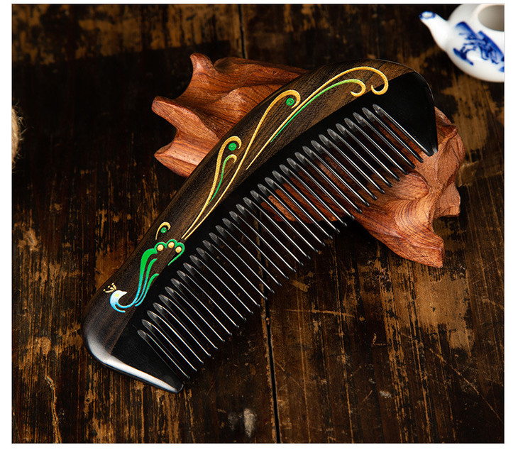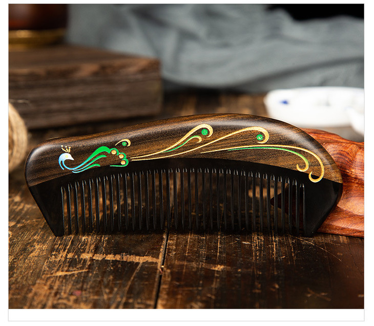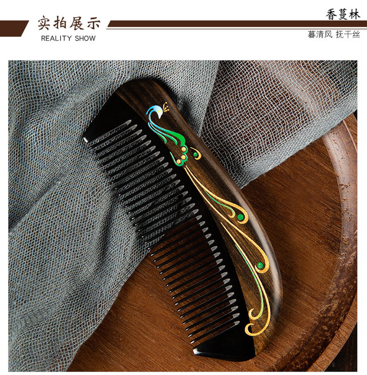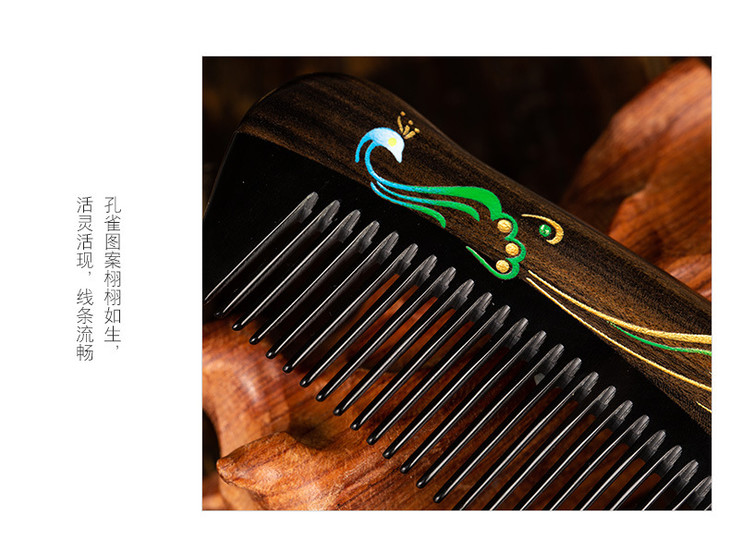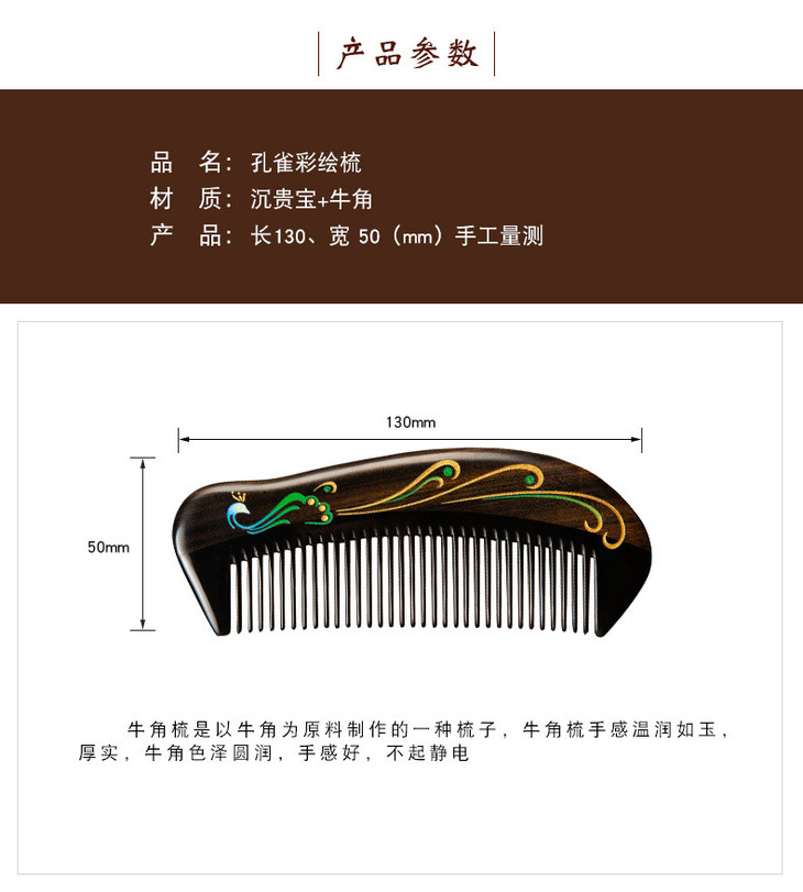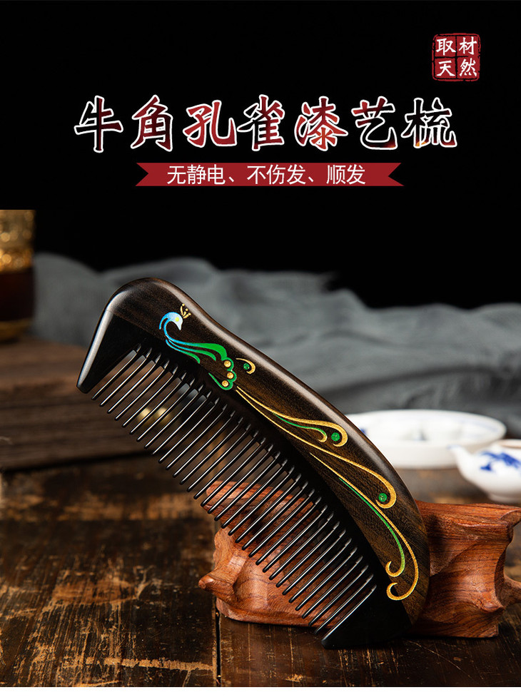 牛角梳沉贵宝手工漆艺梳子雀翎二天然创意礼物 谭木匠工艺