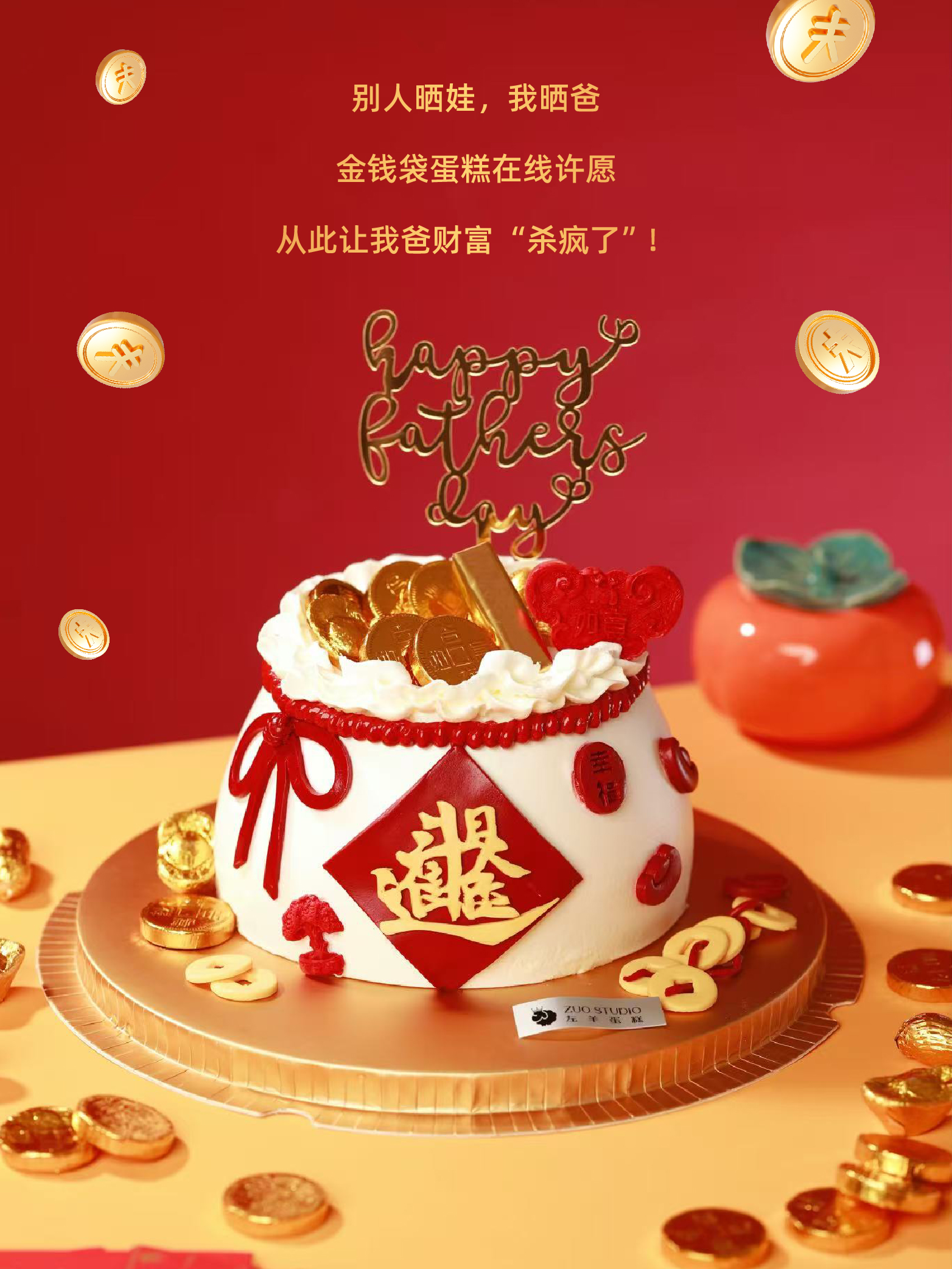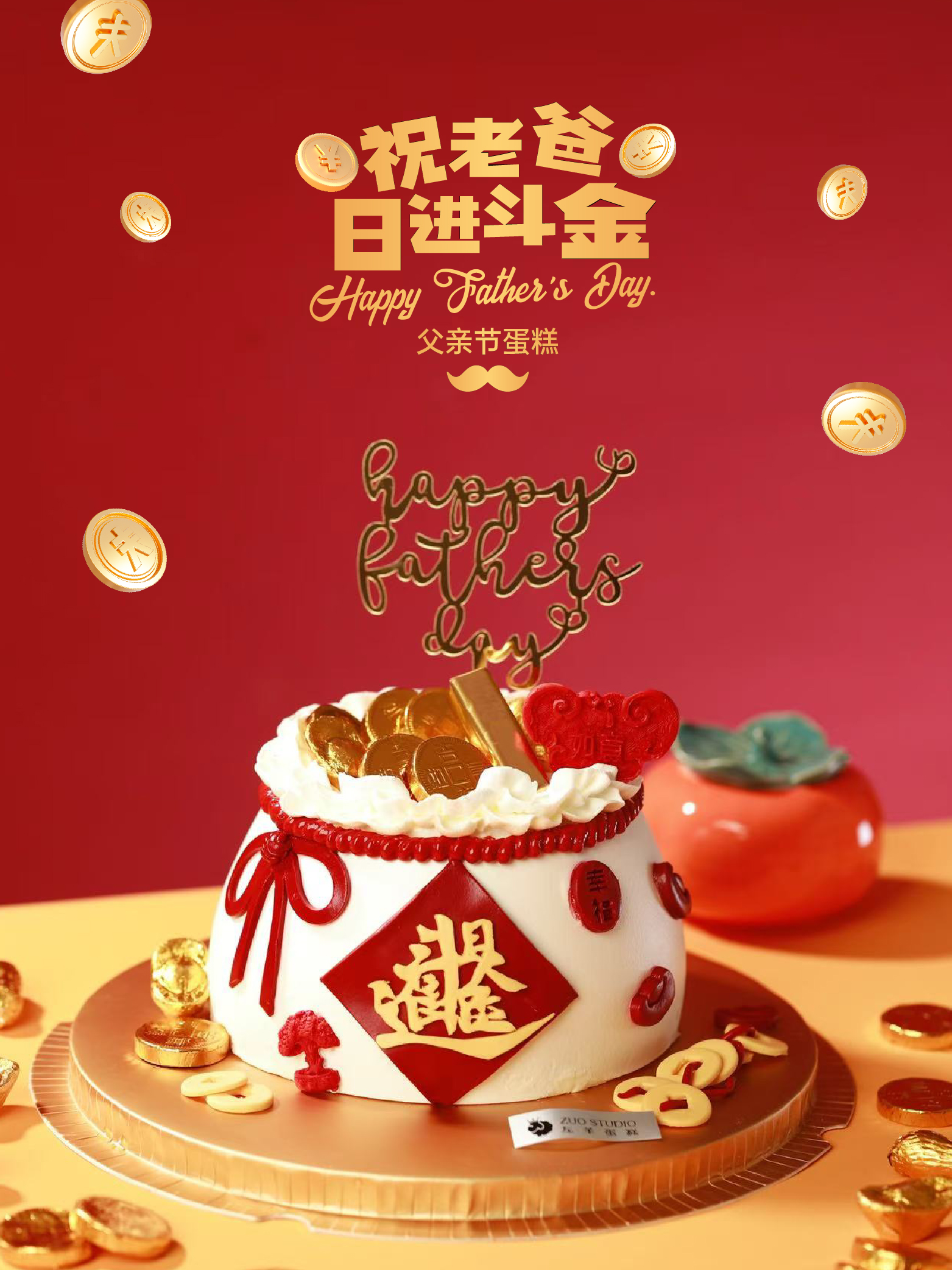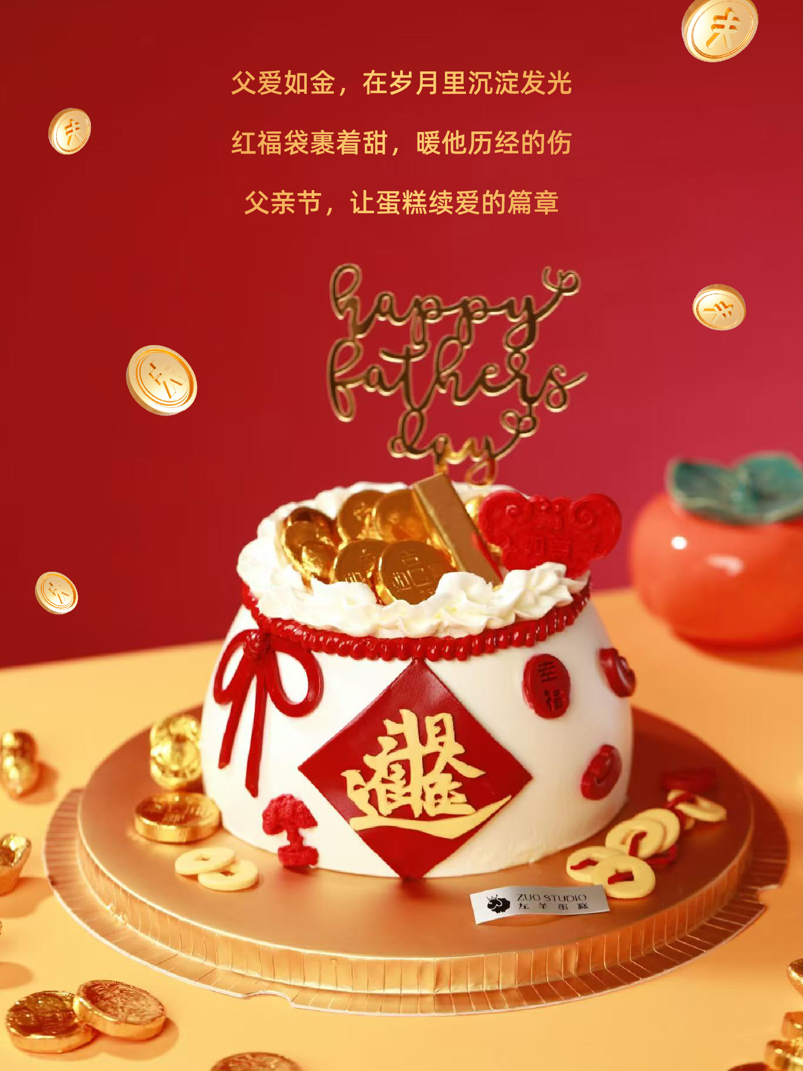 父亲节蛋糕【祝老爸日进斗金】1.5磅 香草奶油芒果来心口味 | 左羊