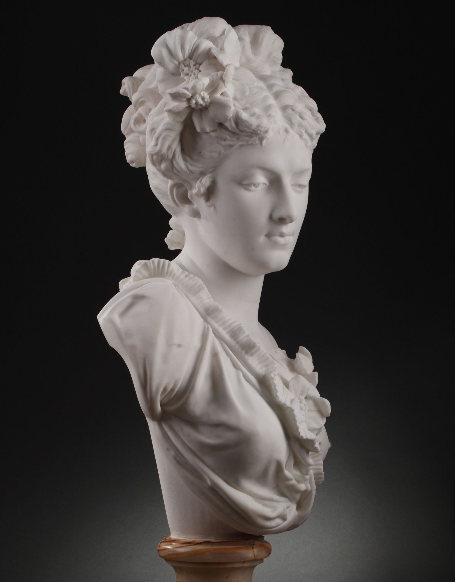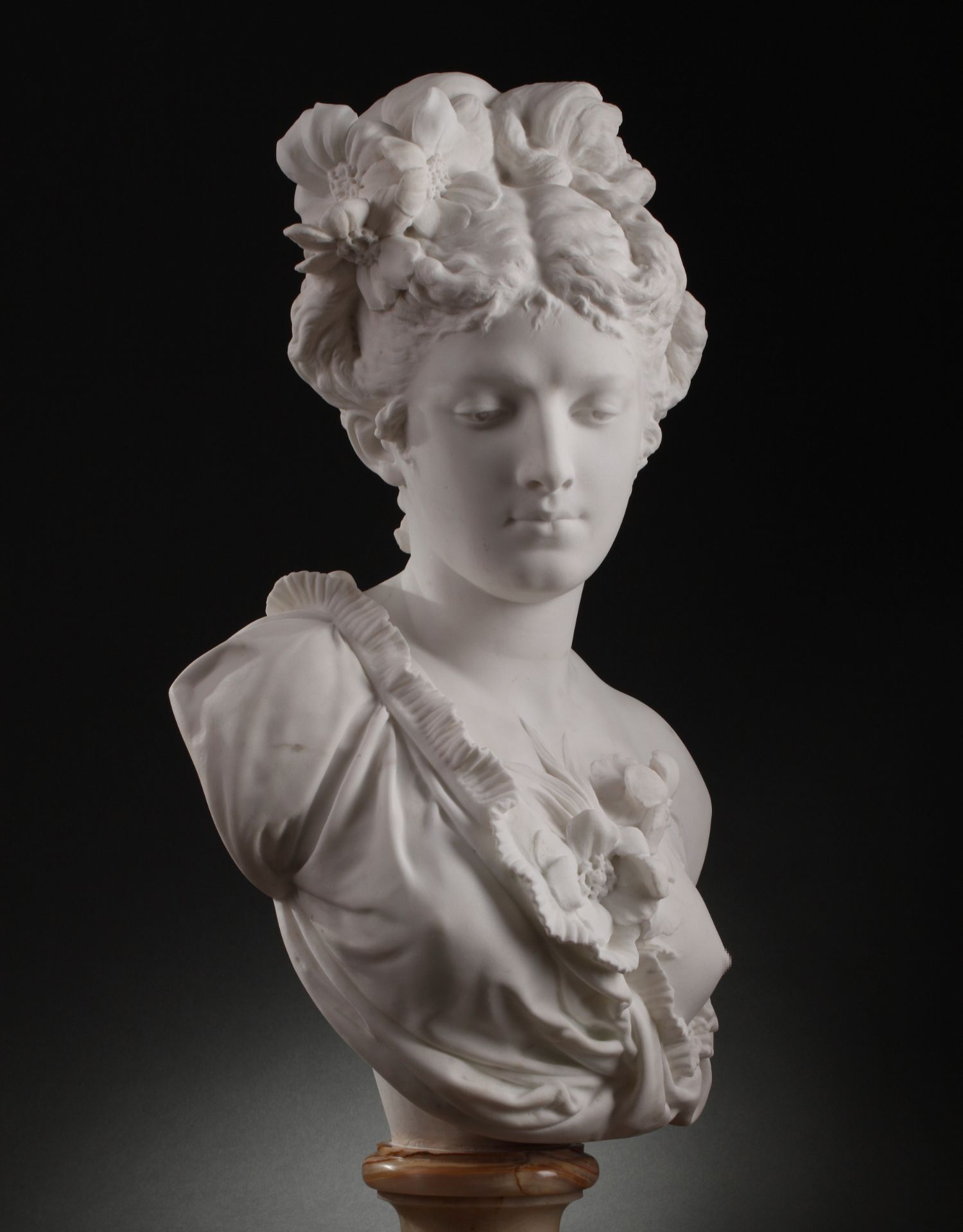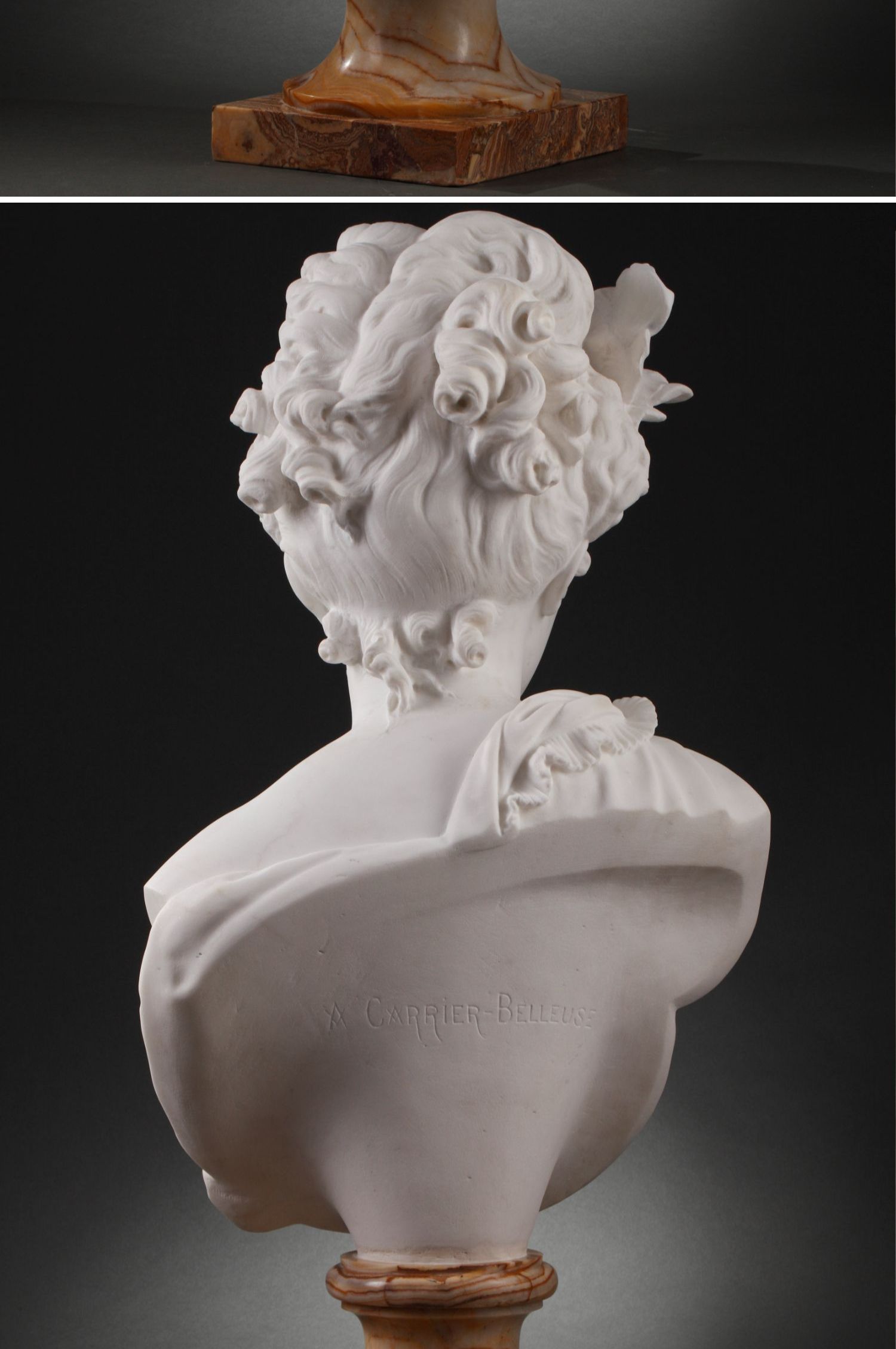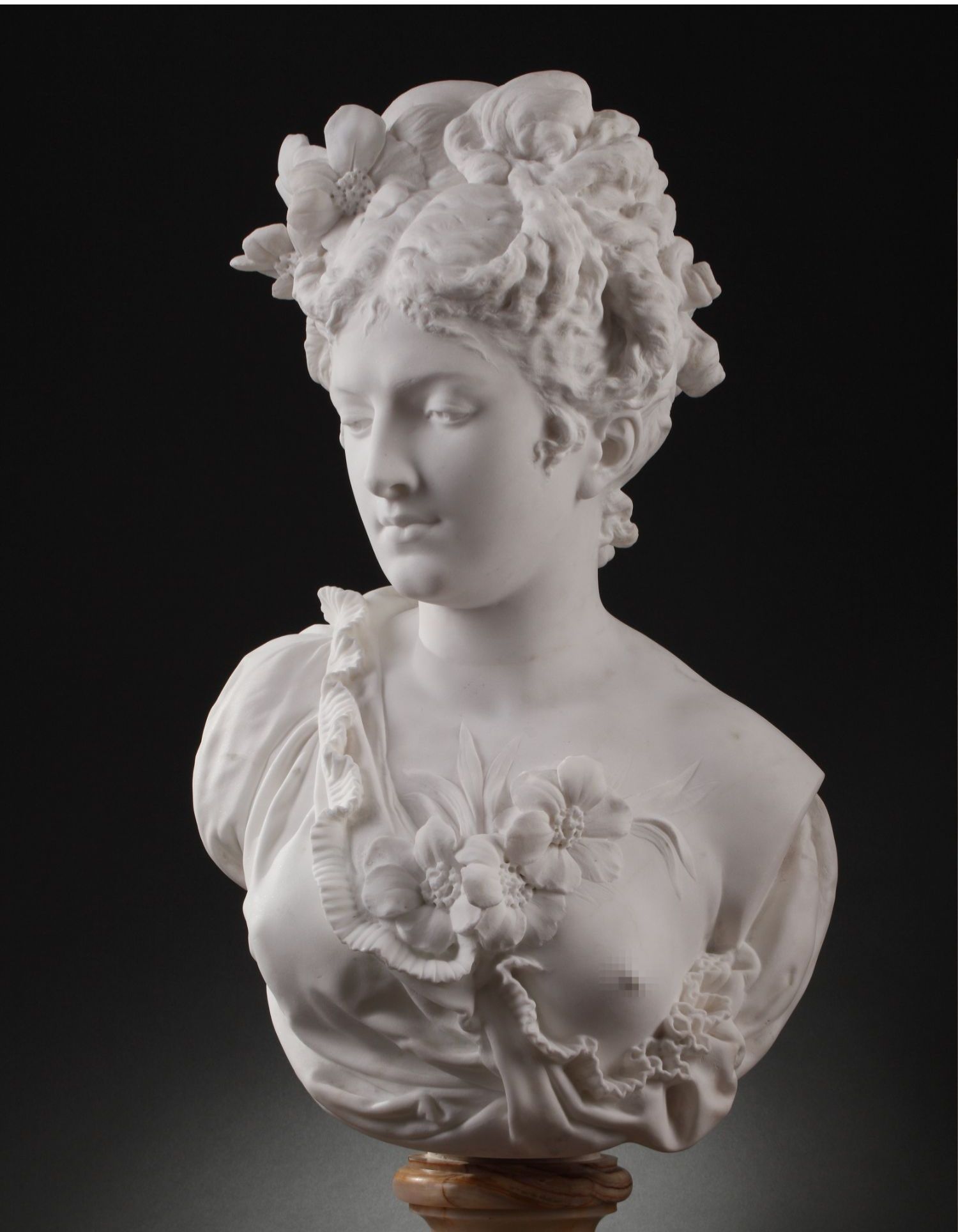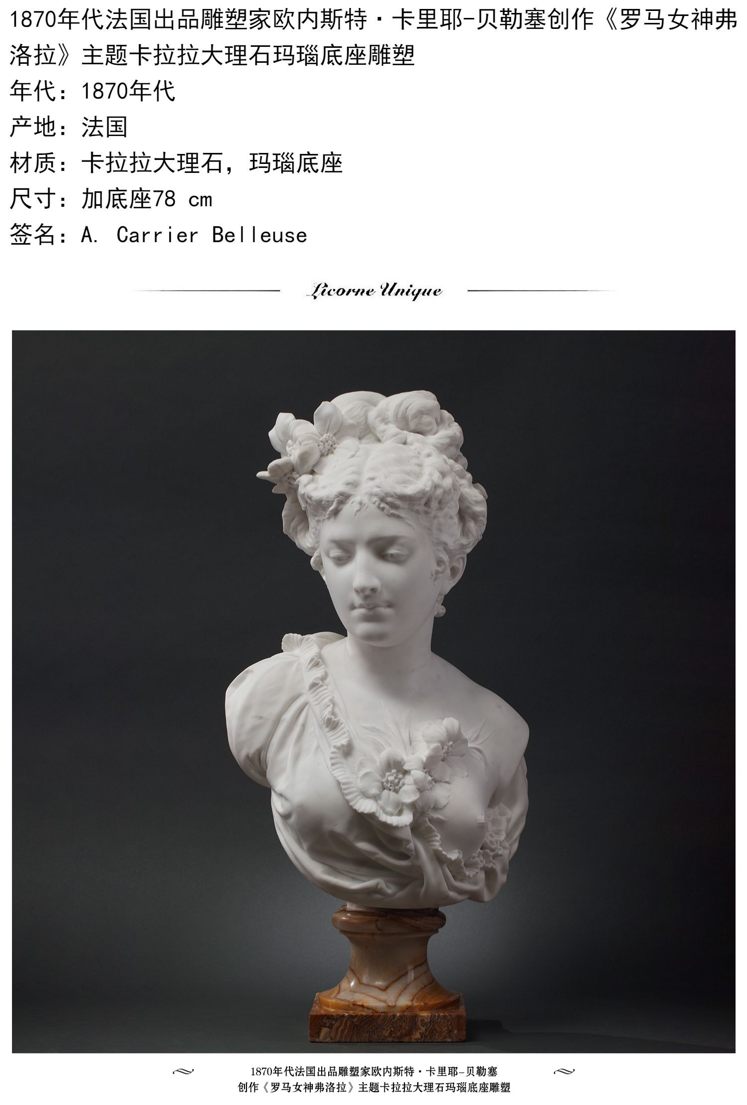 独角鹿西洋古董雕塑法国《罗马女神弗洛拉》卡拉拉大理石玛瑙底座