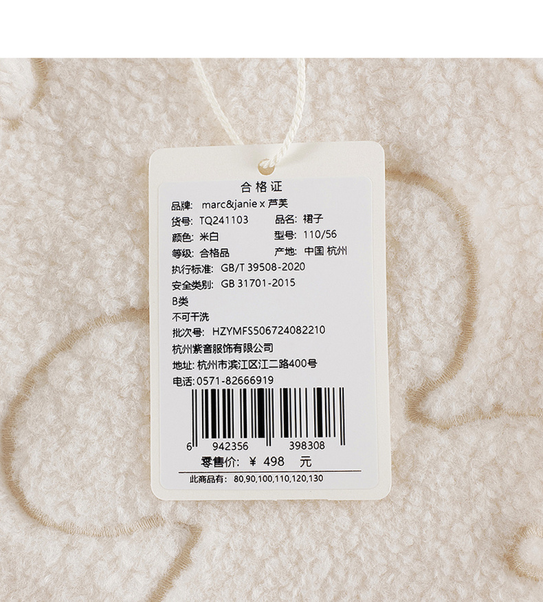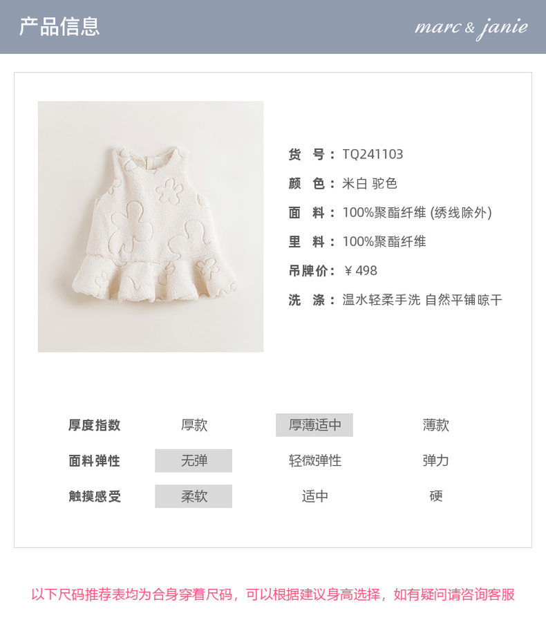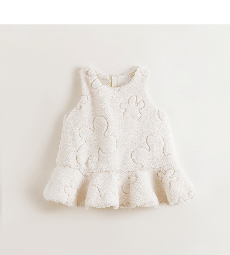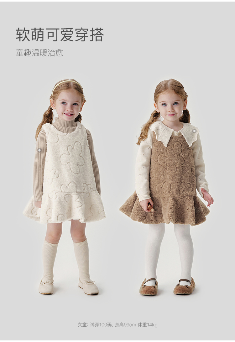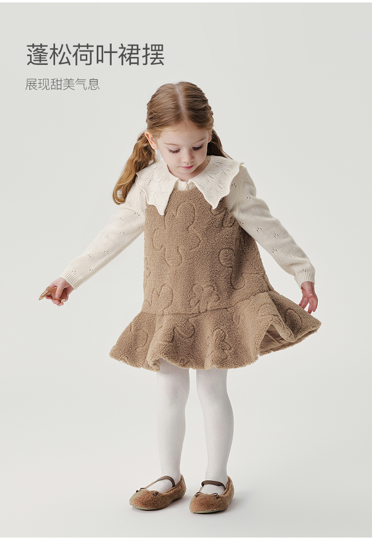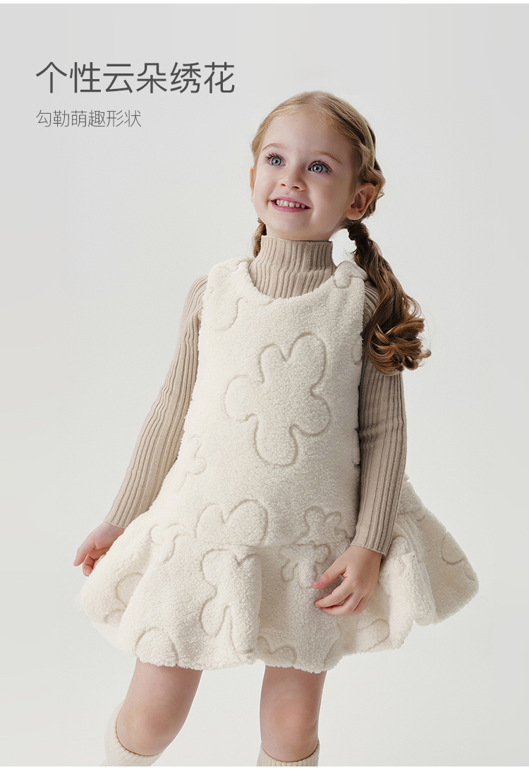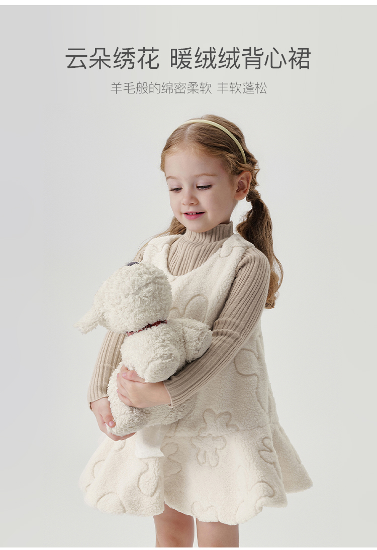 马克珍妮女童云朵绣花毛绒连衣裙儿童背心裙宝宝秋冬裙子241103