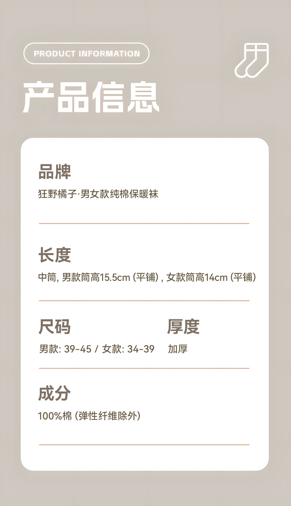 售后政策:袜子为贴身衣物,考虑到健康、卫生问题,试穿后非质量问题不支持7天无理由退换货