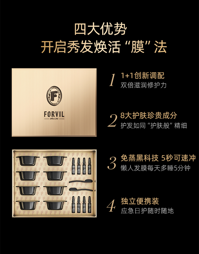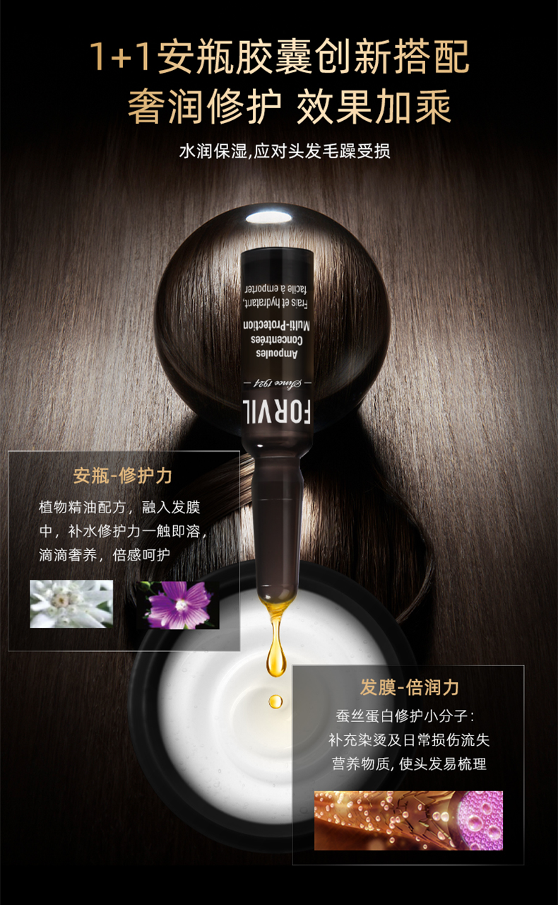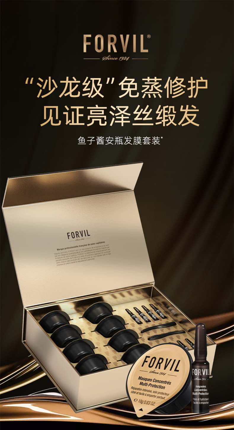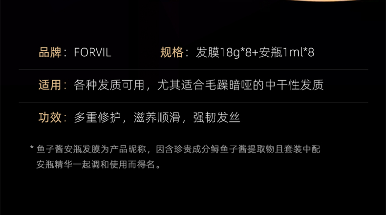 【超值买赠】五秒丝滑! Forvil温莎森林鱼子酱安瓶修护免蒸发膜 8支装 赠:价值158元 正装彩瓶洗发水520ml一瓶