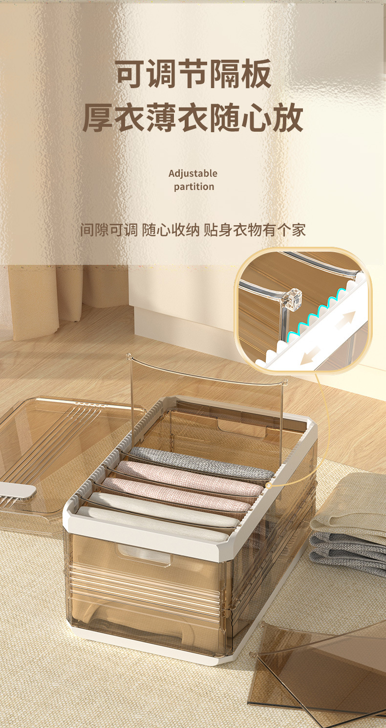 「升级可折叠!分格收纳」衣裤收纳盒分格盒带滑轮抽屉式透明可视家用带盖可折叠拆卸收纳整理盒