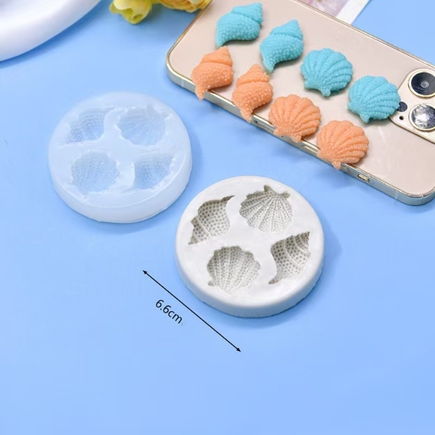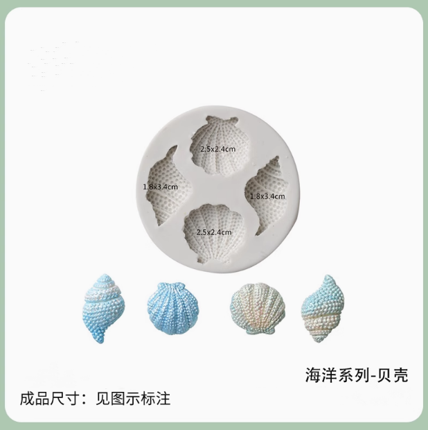 硅胶模【贝壳海螺4入】 海洋系列 硅胶巧克力翻糖模具1个