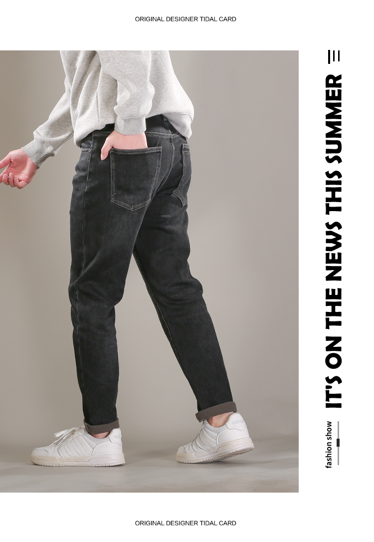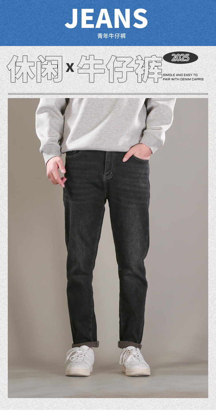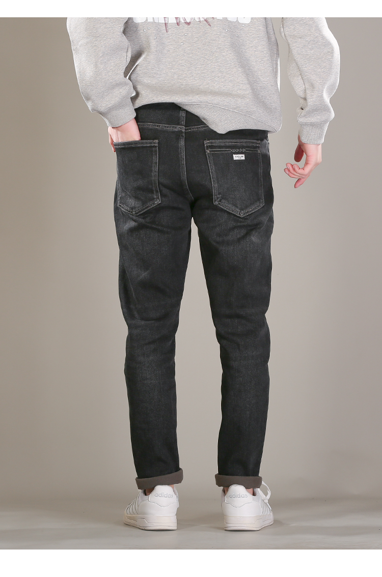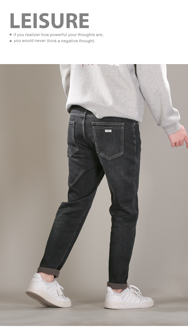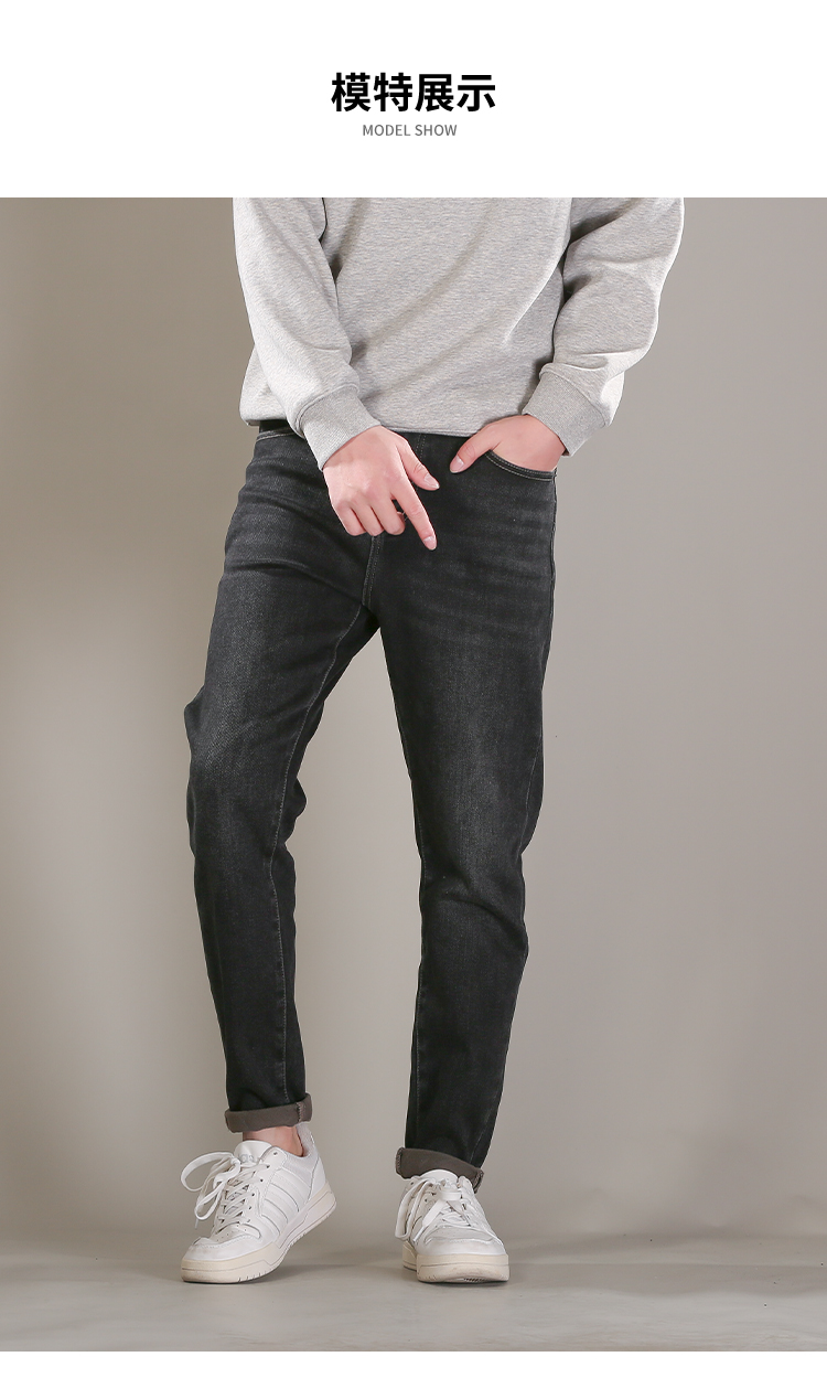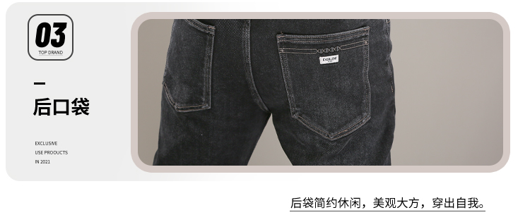DRONKOO 2025 正常腰表袋右后袋X绣线织唛一体绒墨绿底厚牛仔长裤