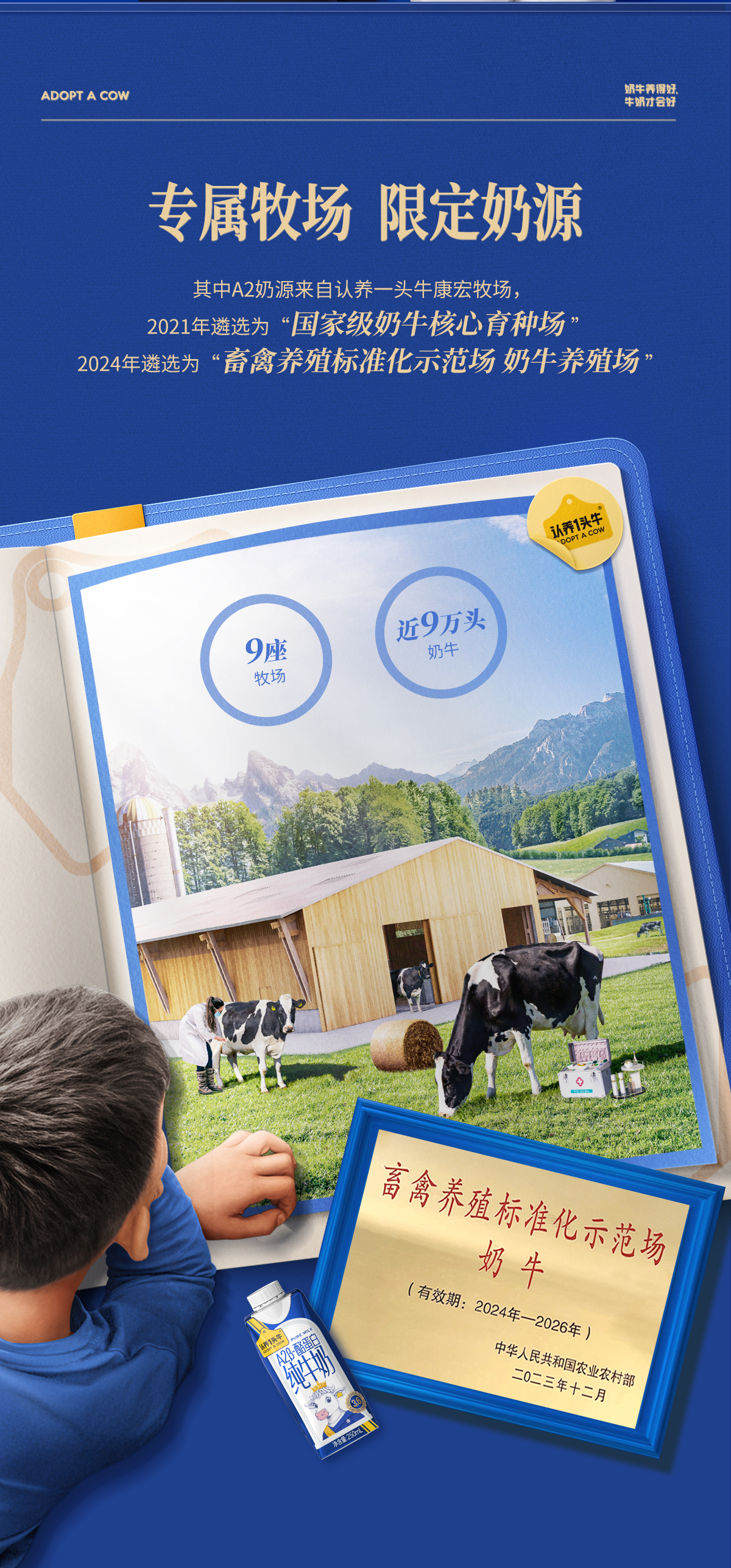 认养一头牛3.6g优质蛋白A2β-酪蛋白高端纯牛奶250ml * 10盒*2提
