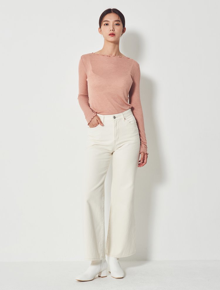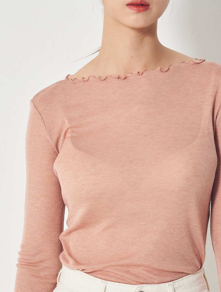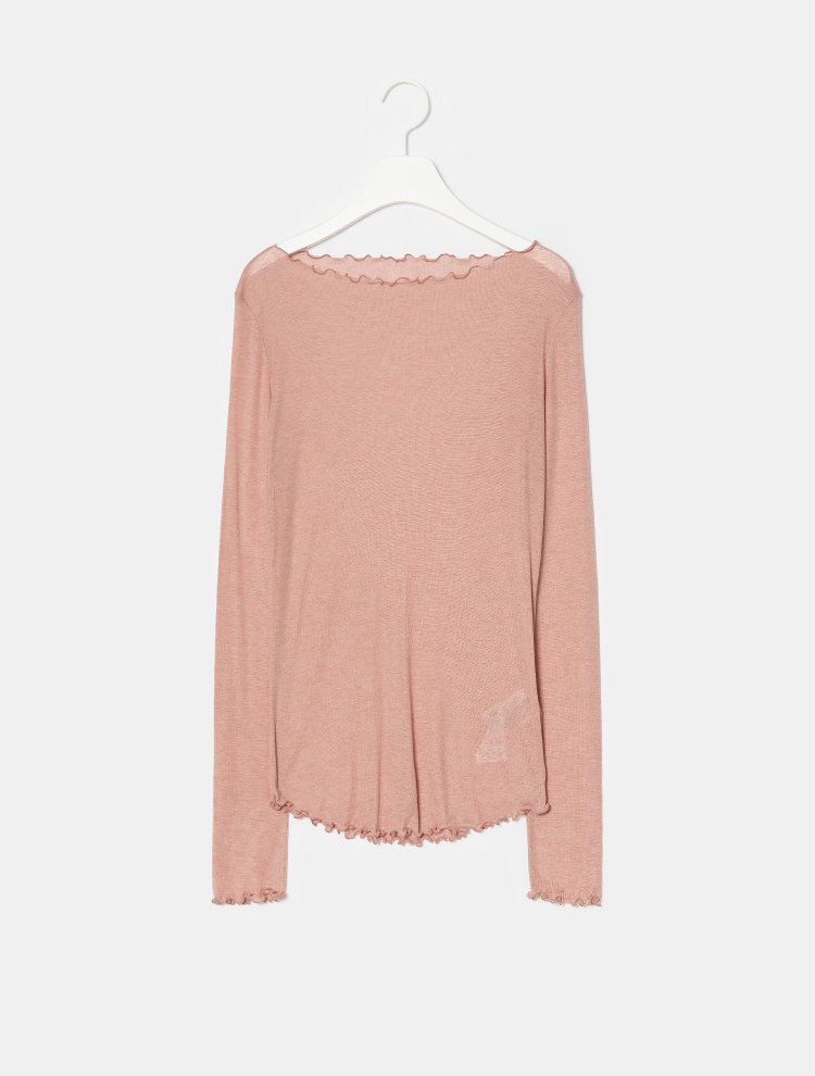 8seconds High collar T-shirt珊瑚透明褶皱船领长袖T恤女款JPY带授权招加盟代理