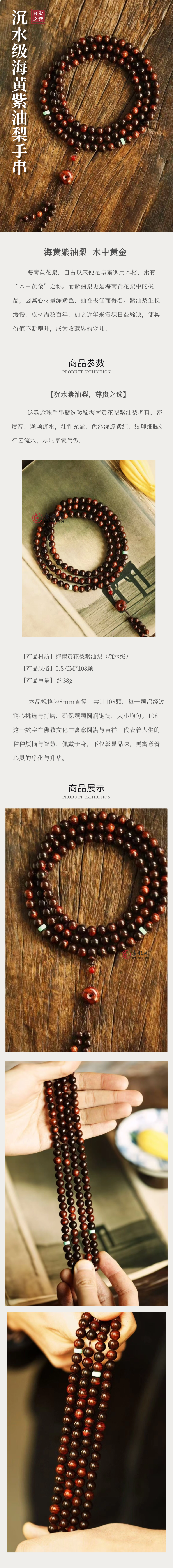 沉水级海黄秒紫油梨0.8*108佛珠念珠手串