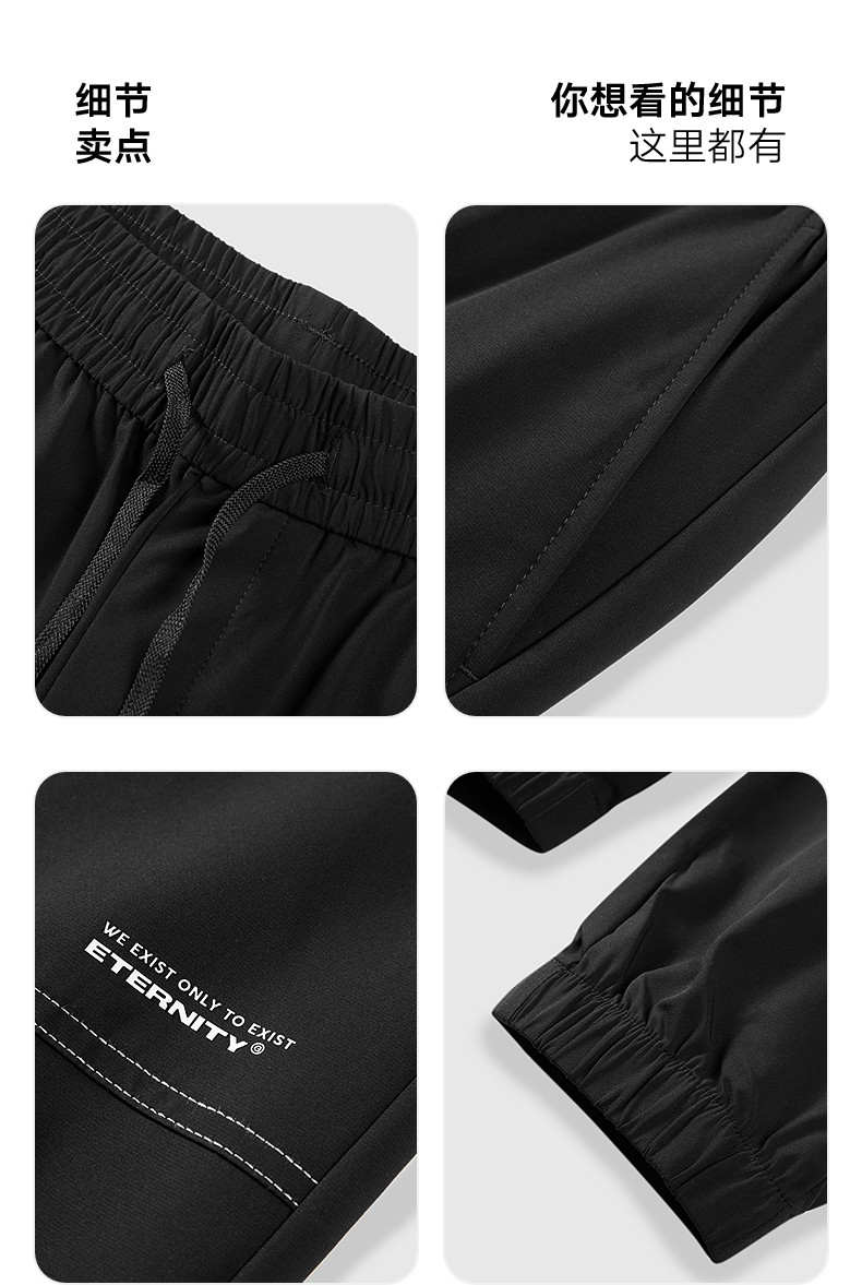 GXG男装 黑色刺绣点缀束脚裤日常简约休闲裤男长裤 2025春季热卖