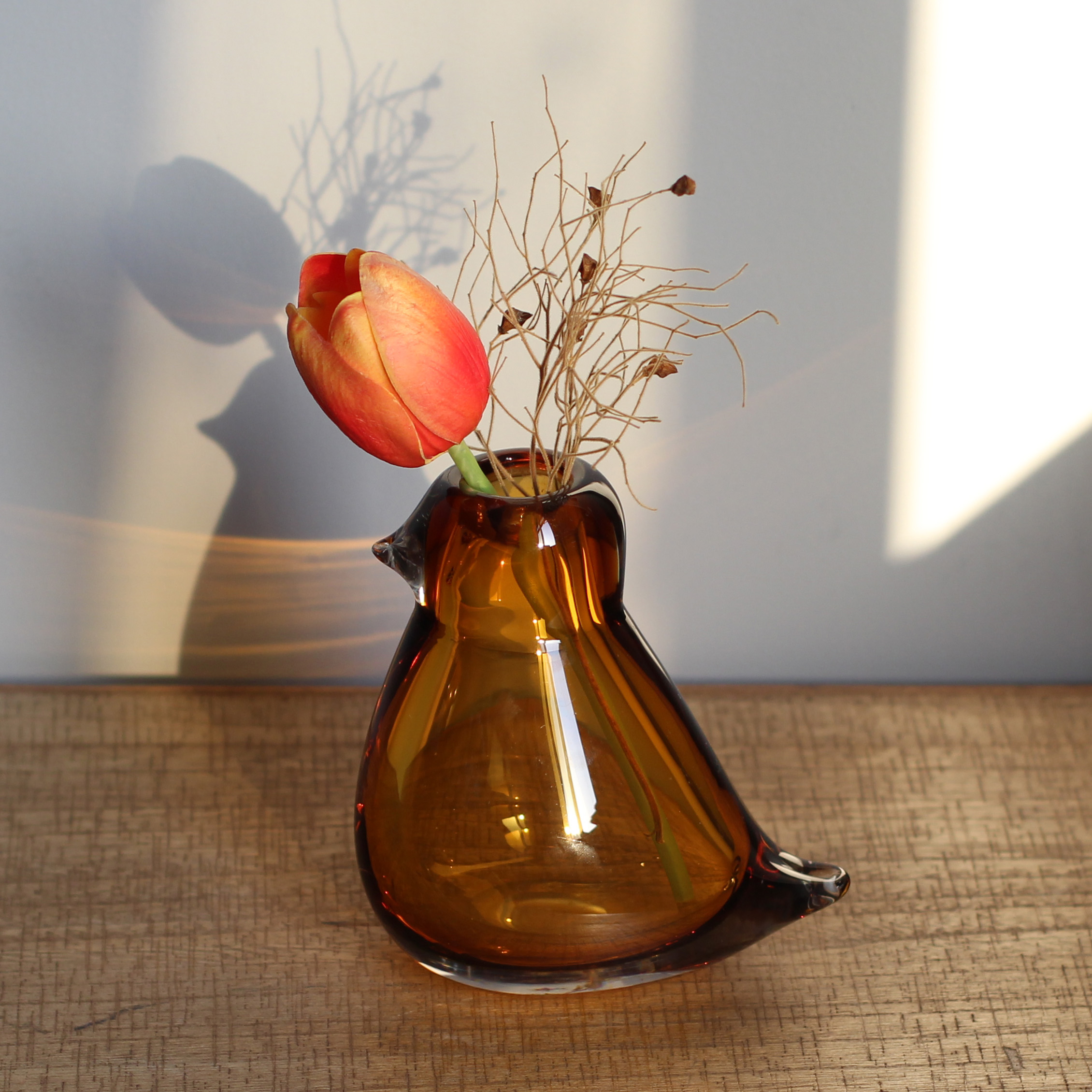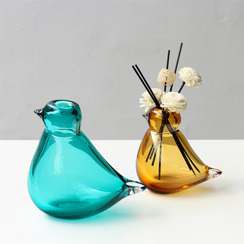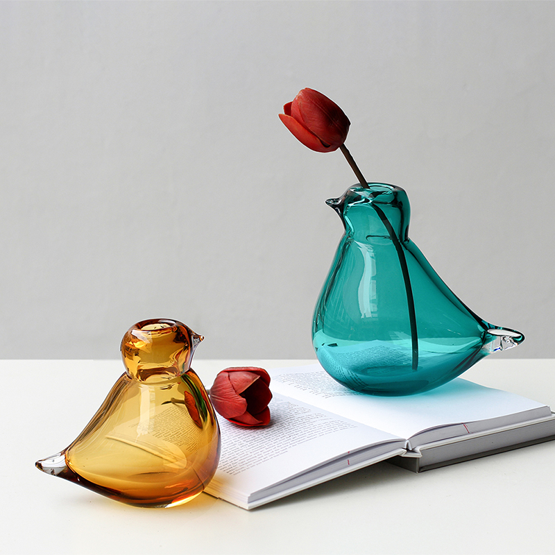 简约轻奢摆件小鸟琉璃花瓶北欧创意水培插花客厅装饰迷你小摆件