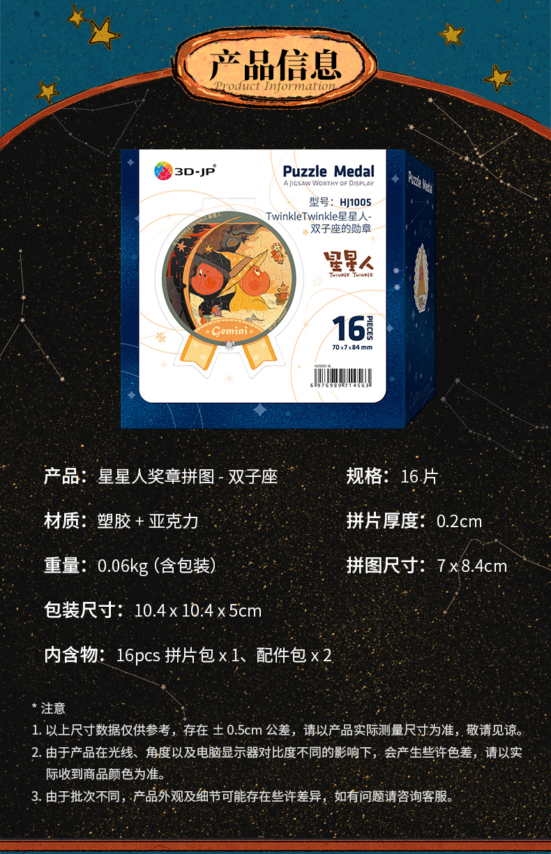 16片 奖章拼图 HJ1005 TwinkleTwinkle星星人-双子座的勋章