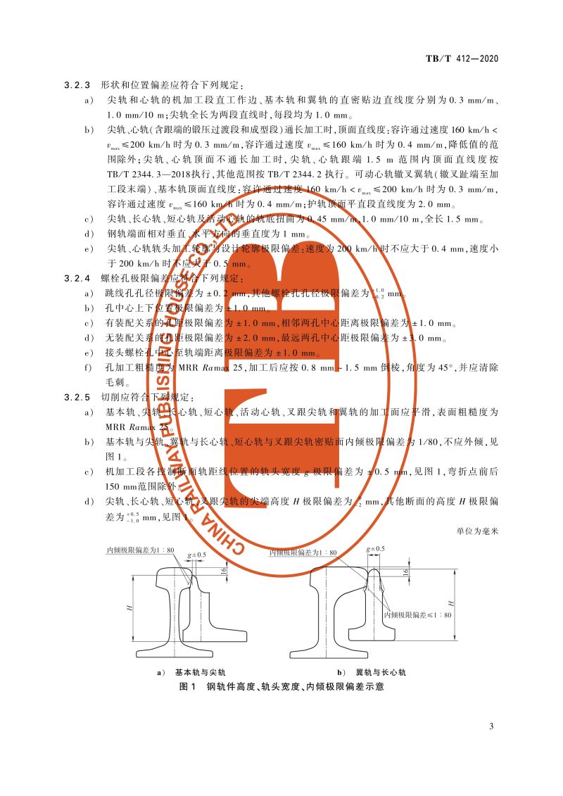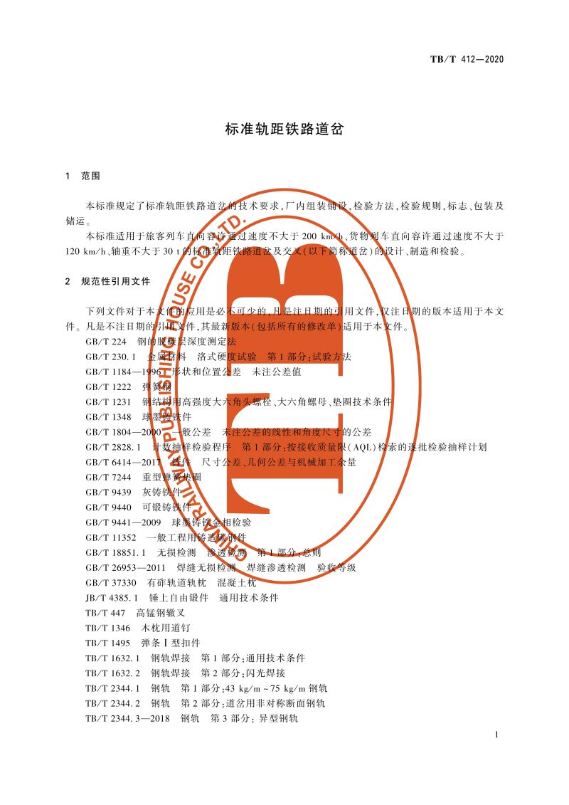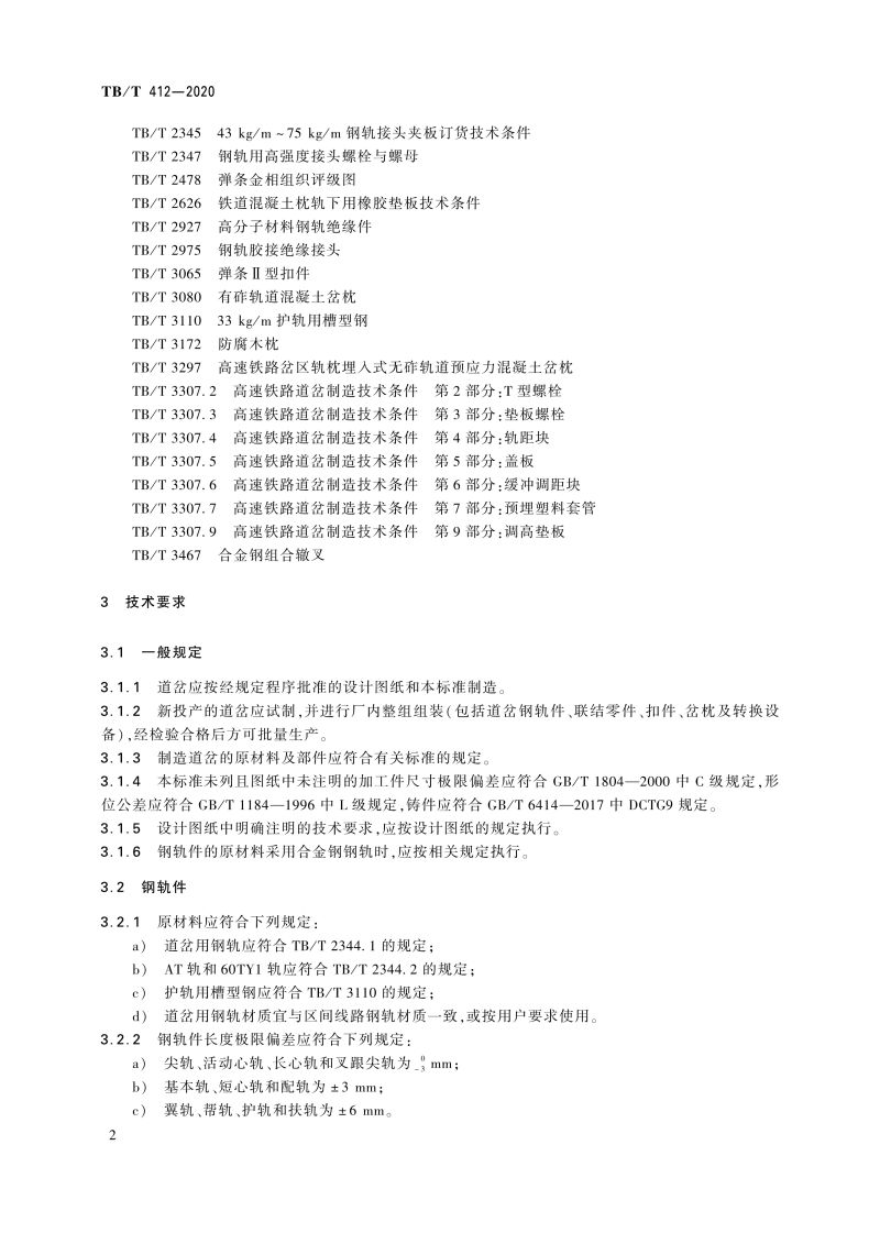15113.6142标准轨距铁路道岔 TB/T 412—2020