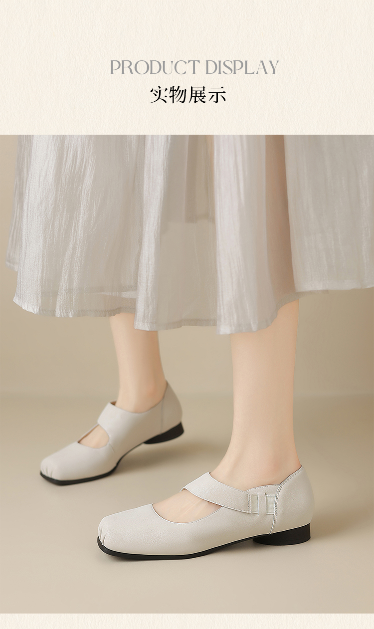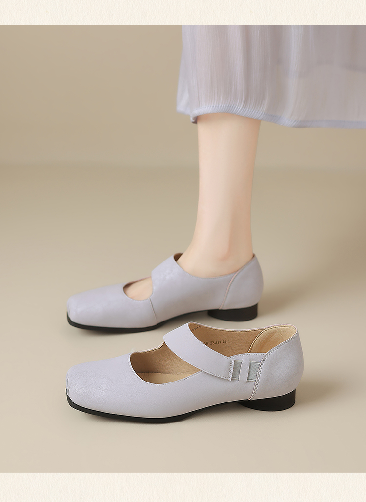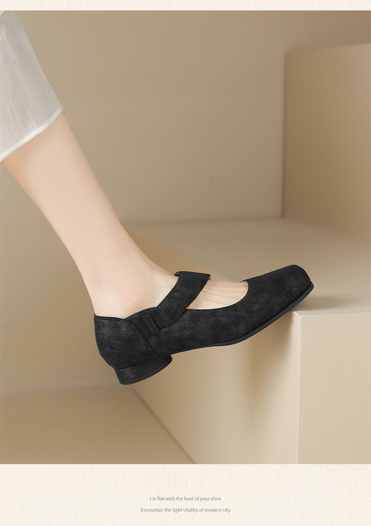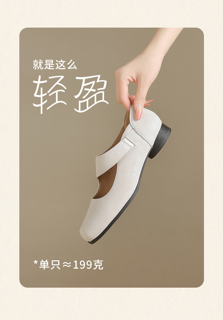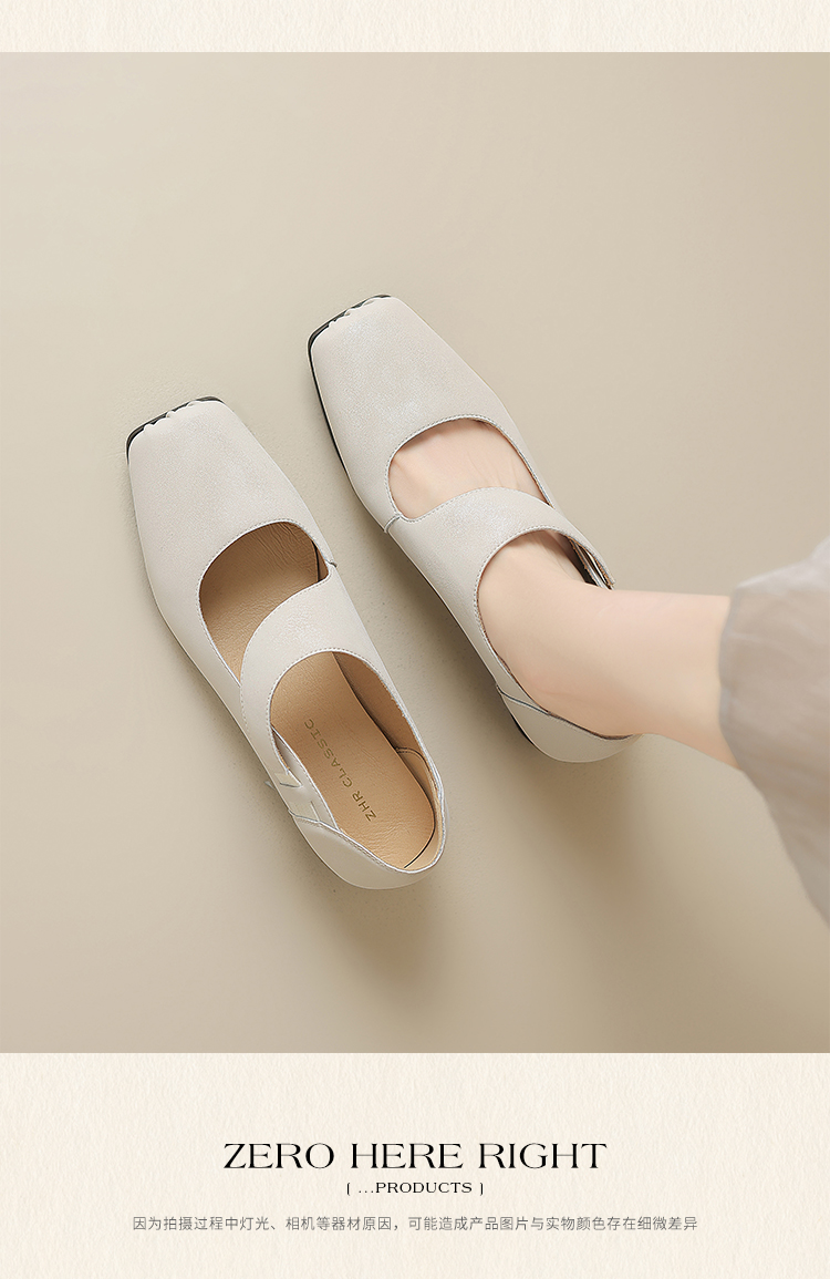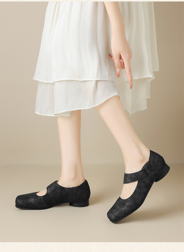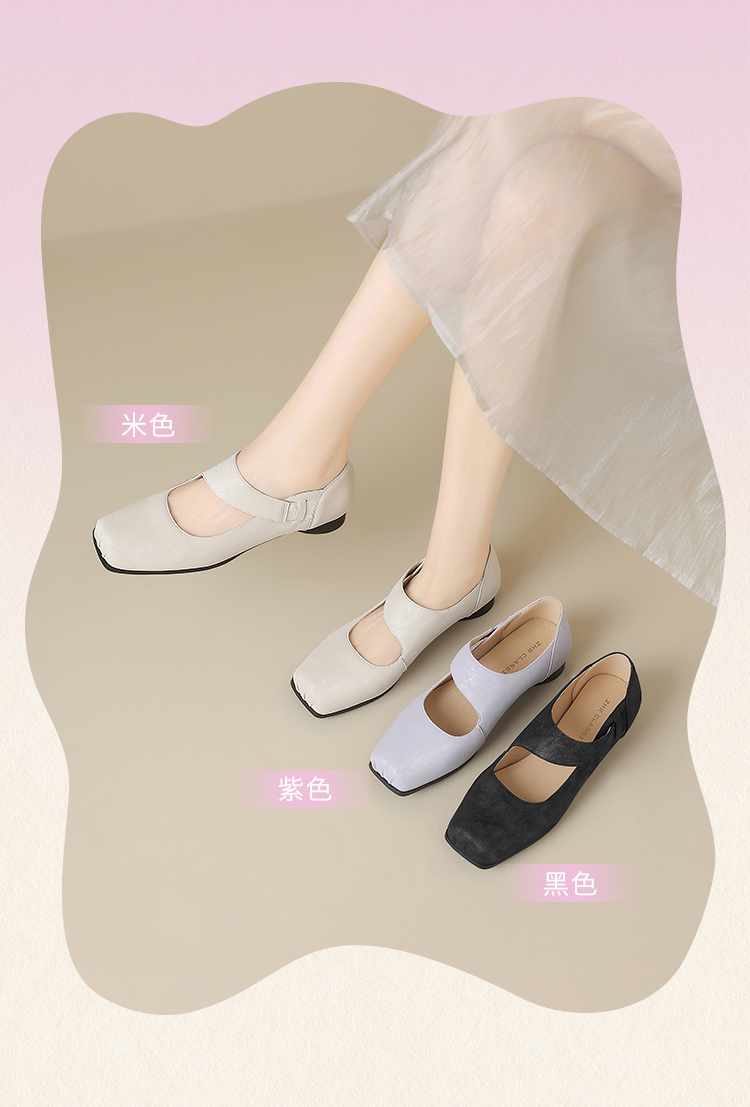 ZHR松紧交叉带玛丽珍鞋女2025夏新款方头芭蕾风粗跟乐福小皮鞋