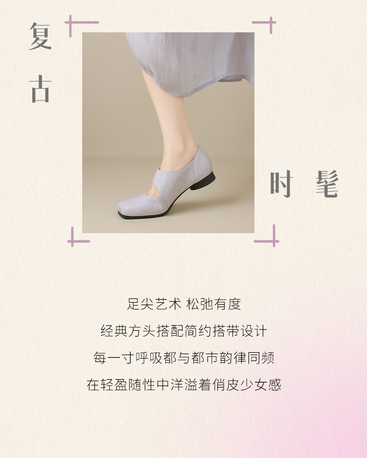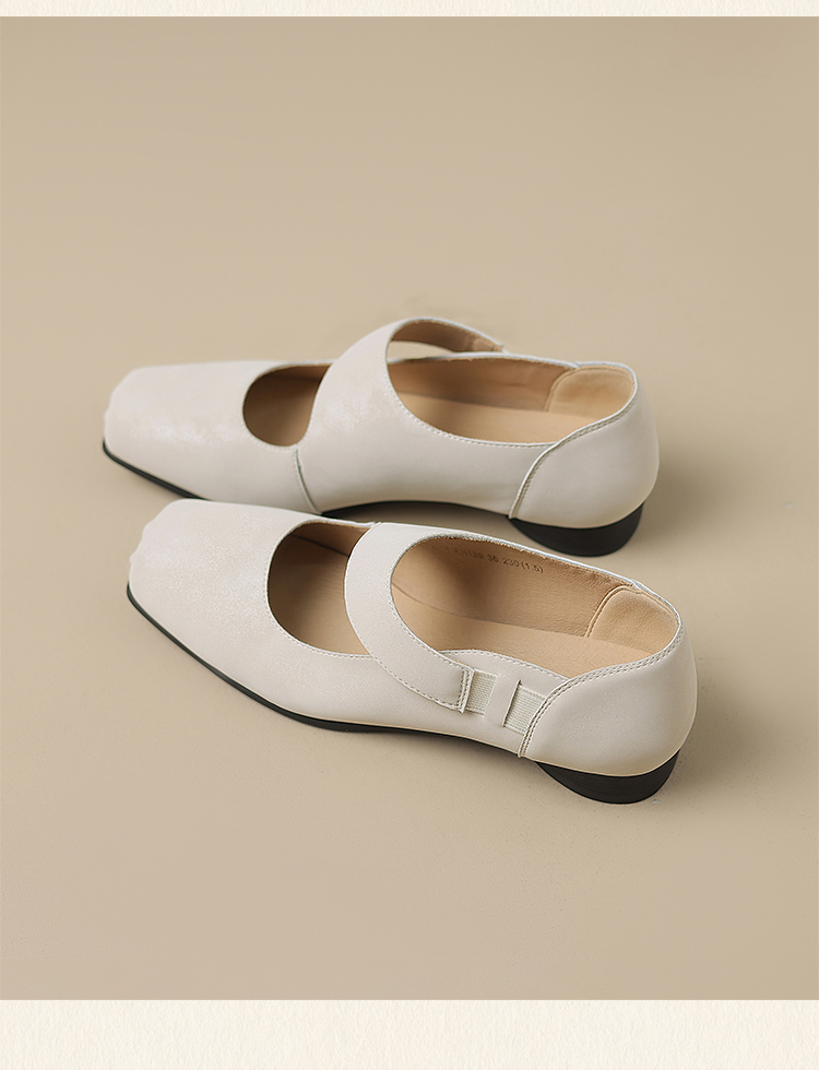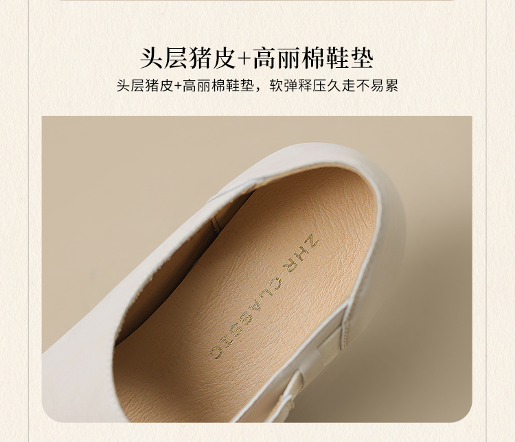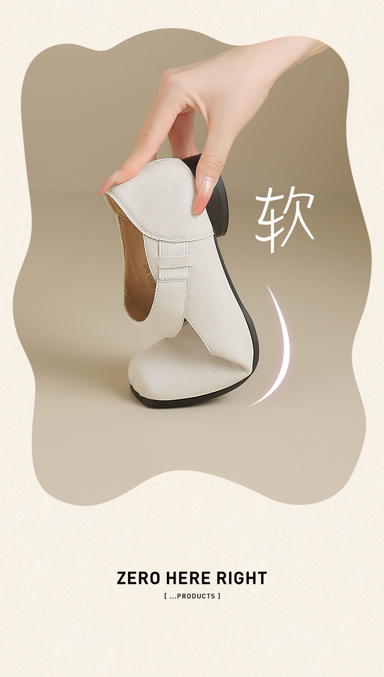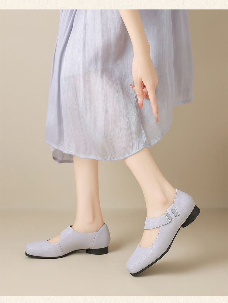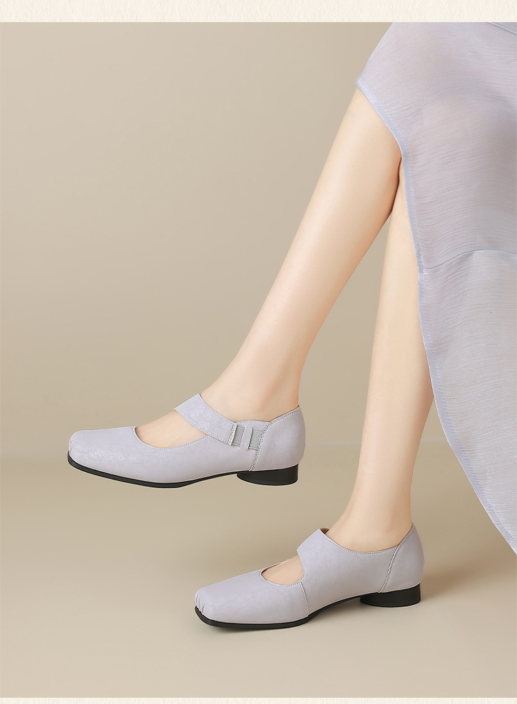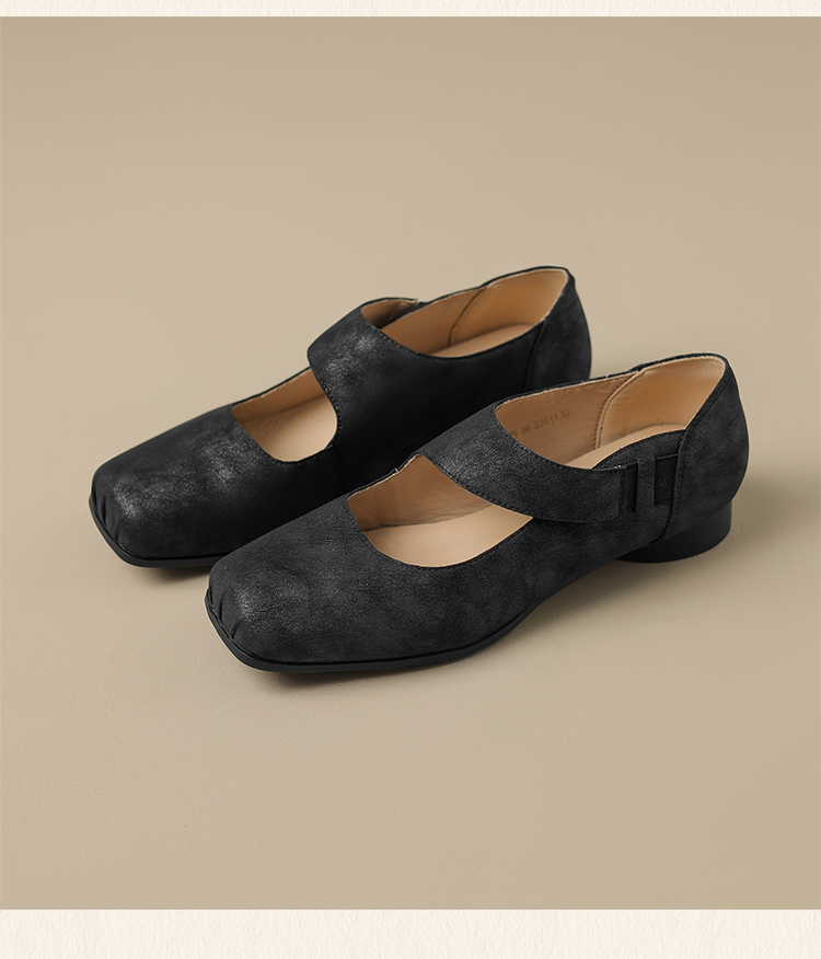 ZHR松紧交叉带玛丽珍鞋女2025夏新款方头芭蕾风粗跟乐福小皮鞋