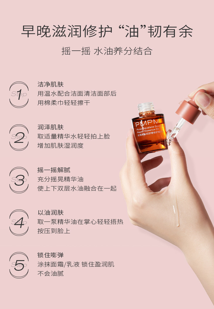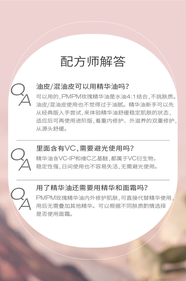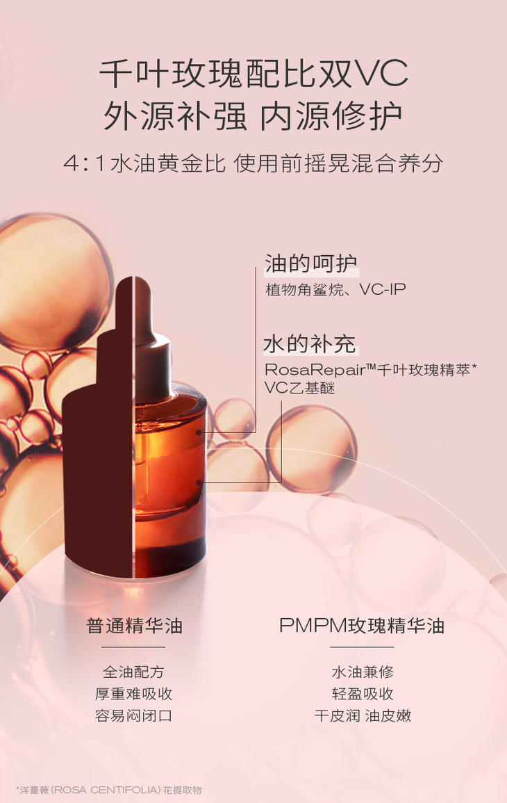 【维稳焕亮】PMPM千叶玫瑰精华油护肤油 进阶版精华液肌底液面部精华提亮玫瑰水新