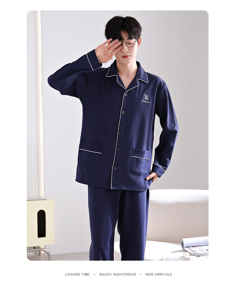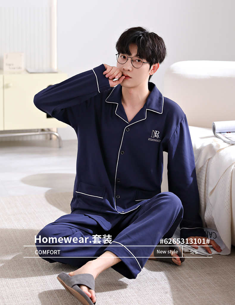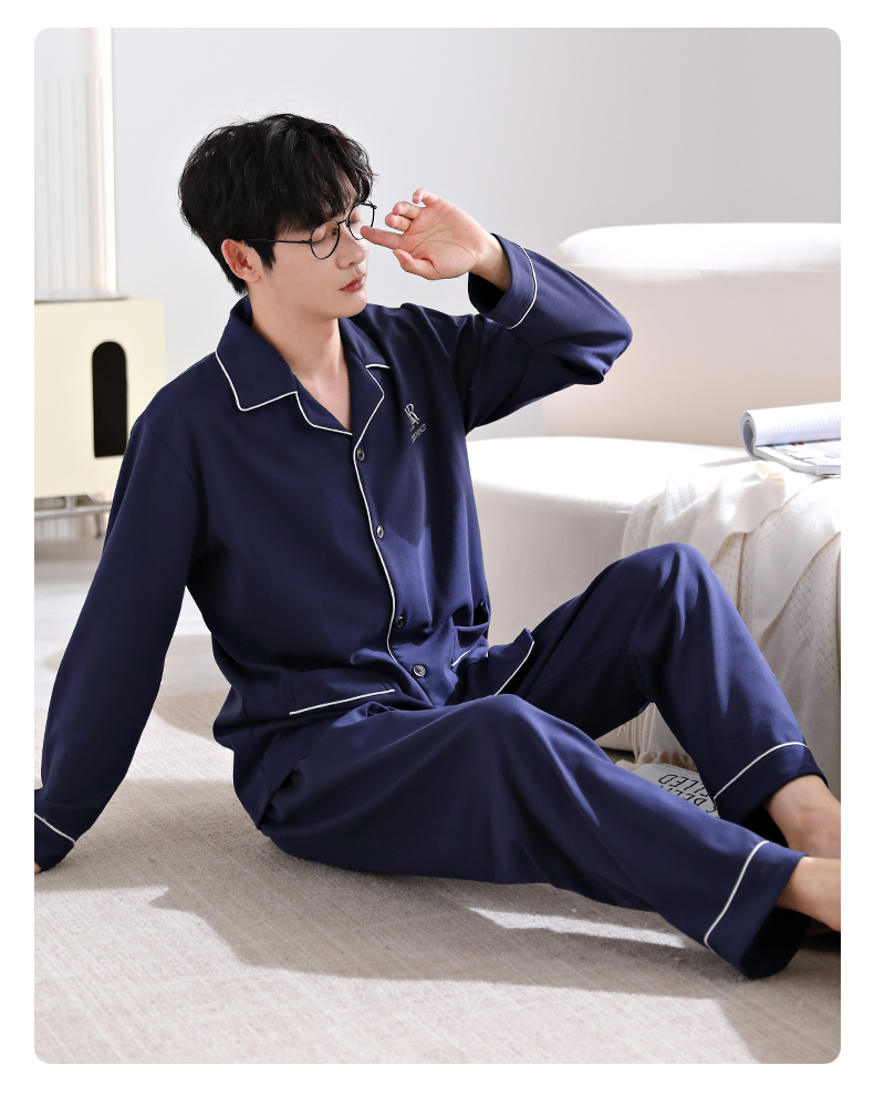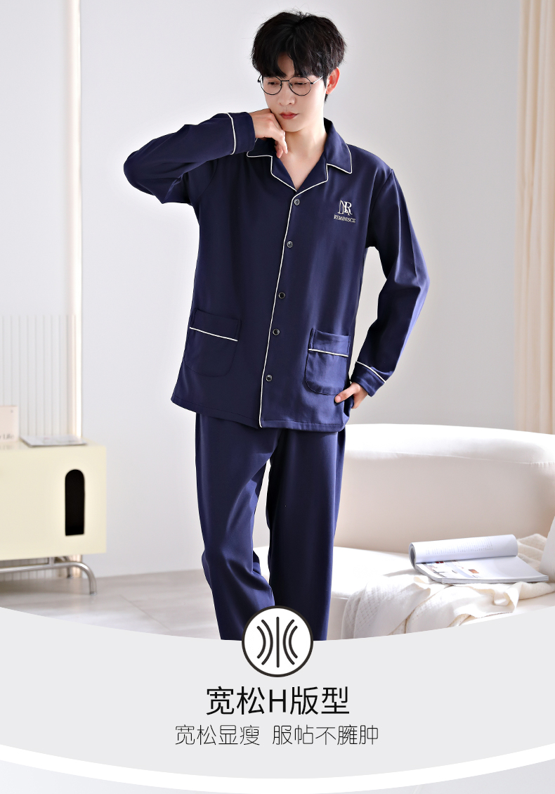 爱帝男式翻领长袖家居服