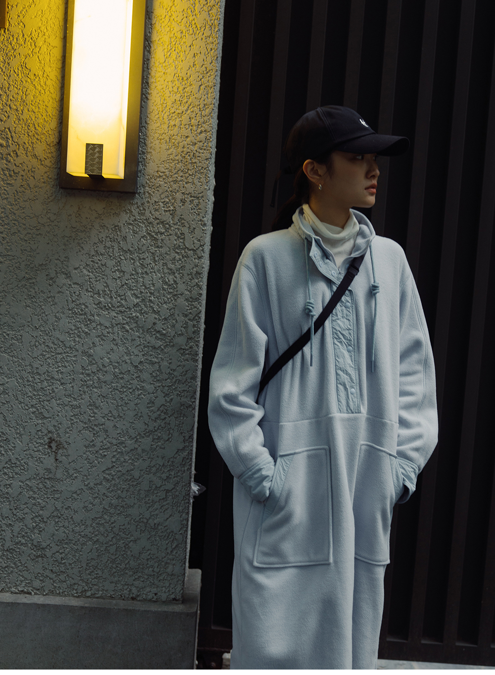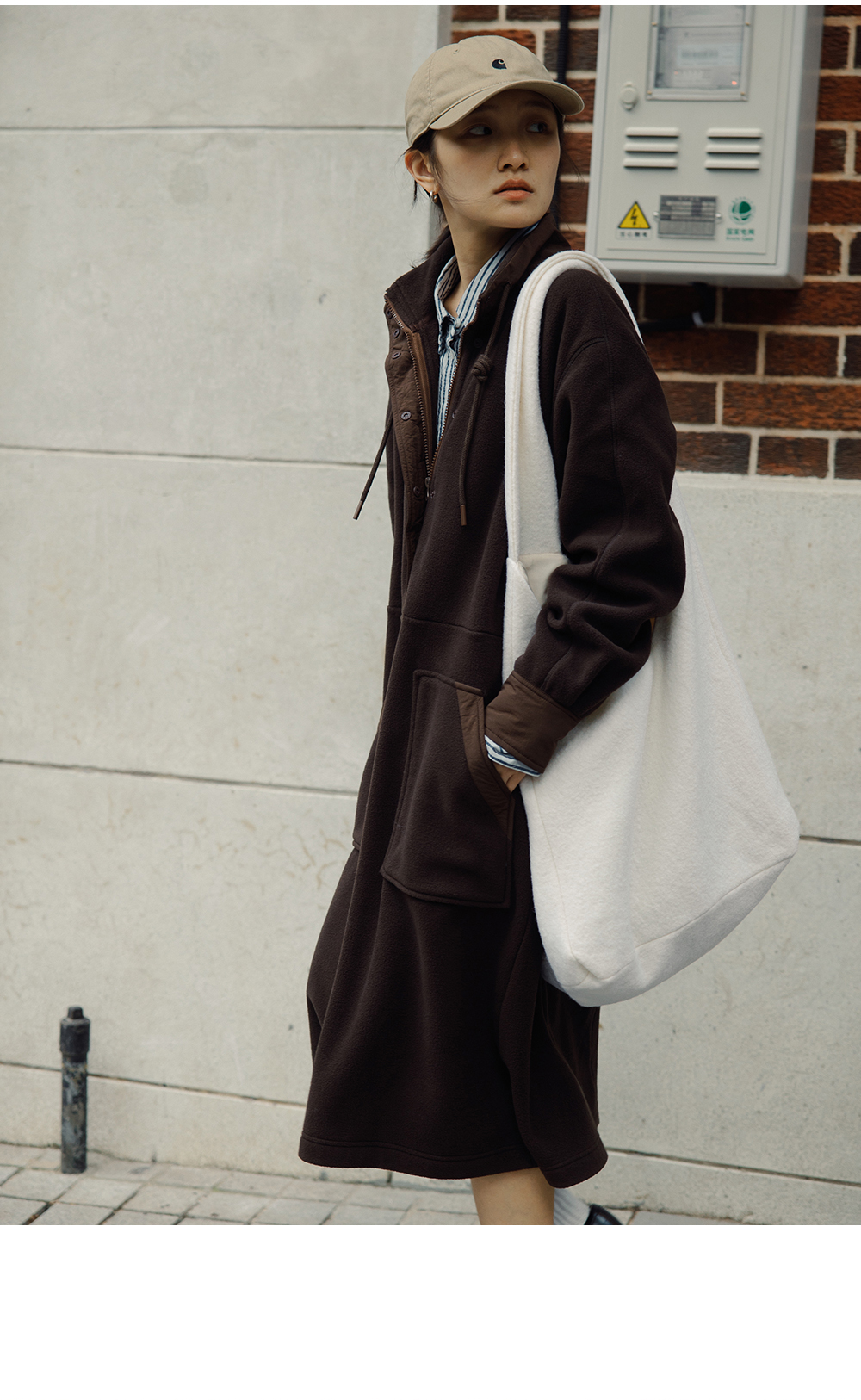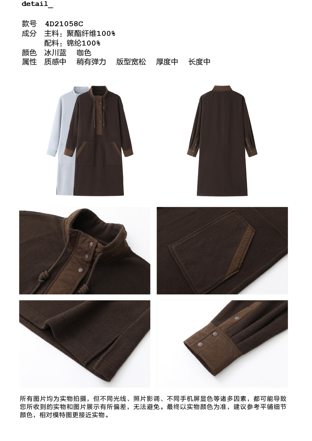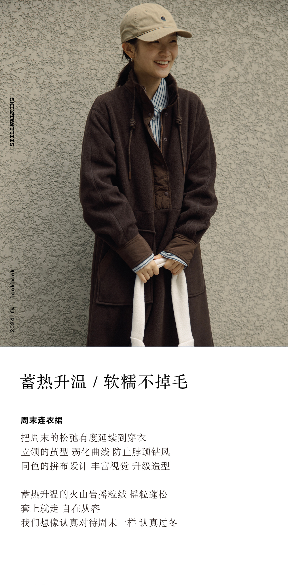 步履不停/4D31155C/双面摇粒绒立领连衣裙软糯保暖卫衣裙