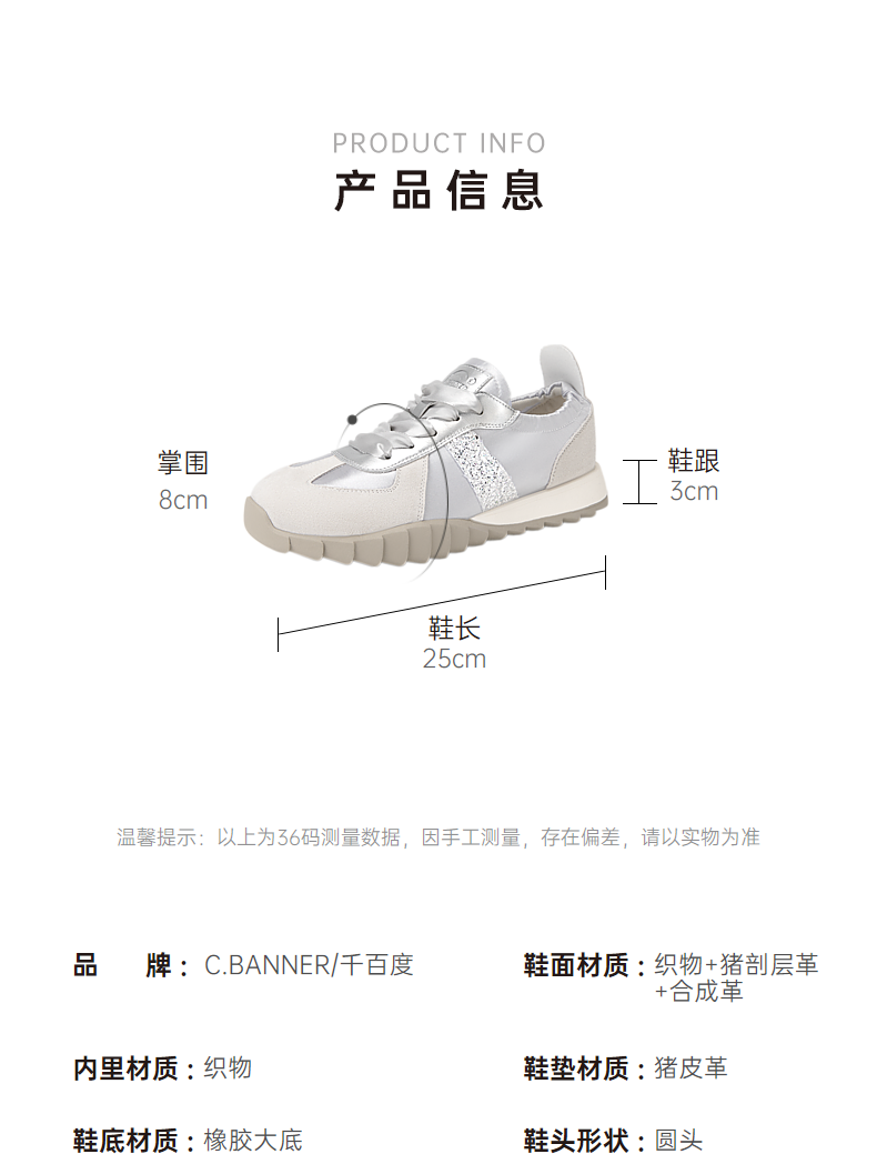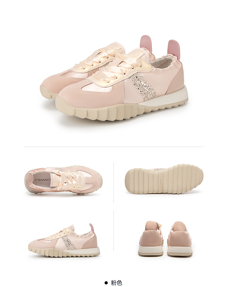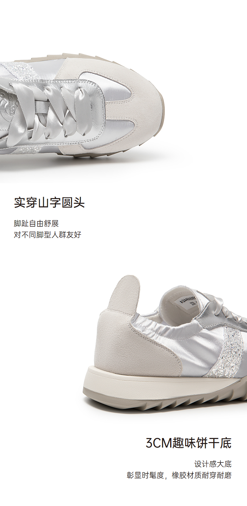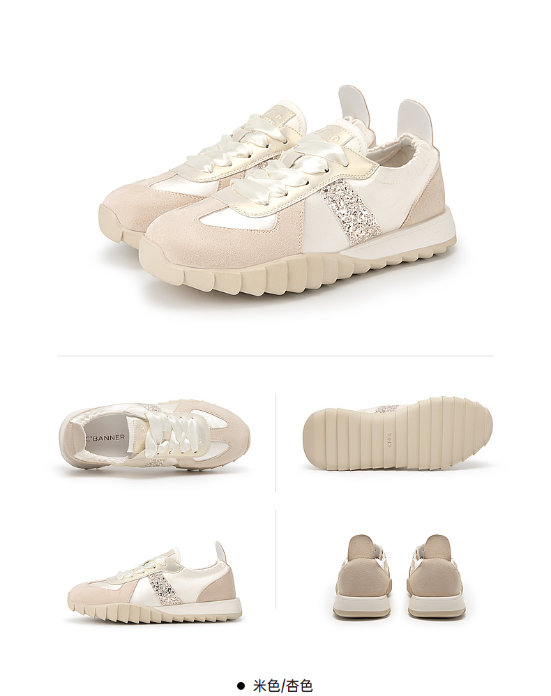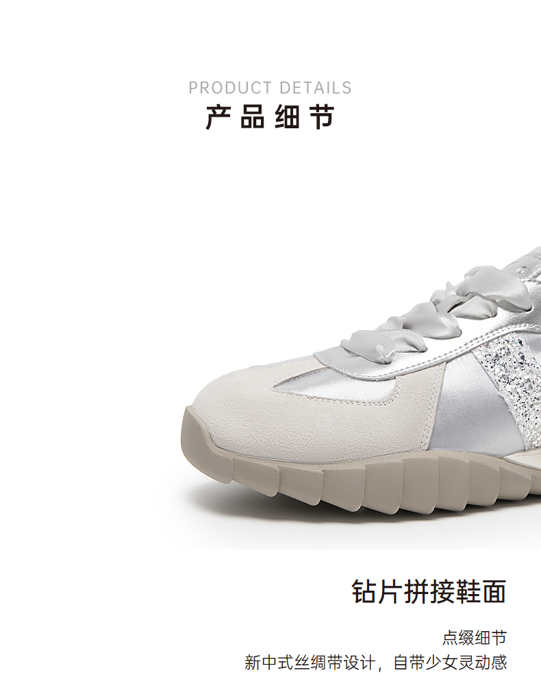 千百度新中式时尚休闲鞋女款秋季钻片拼接厚底德训运动鞋A24466699