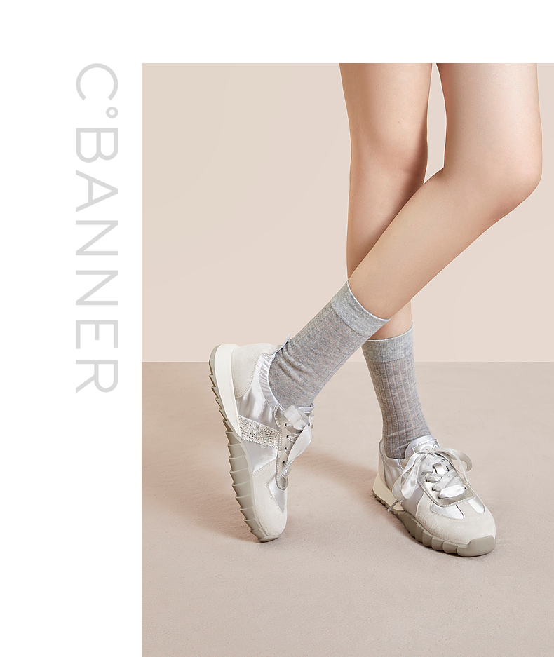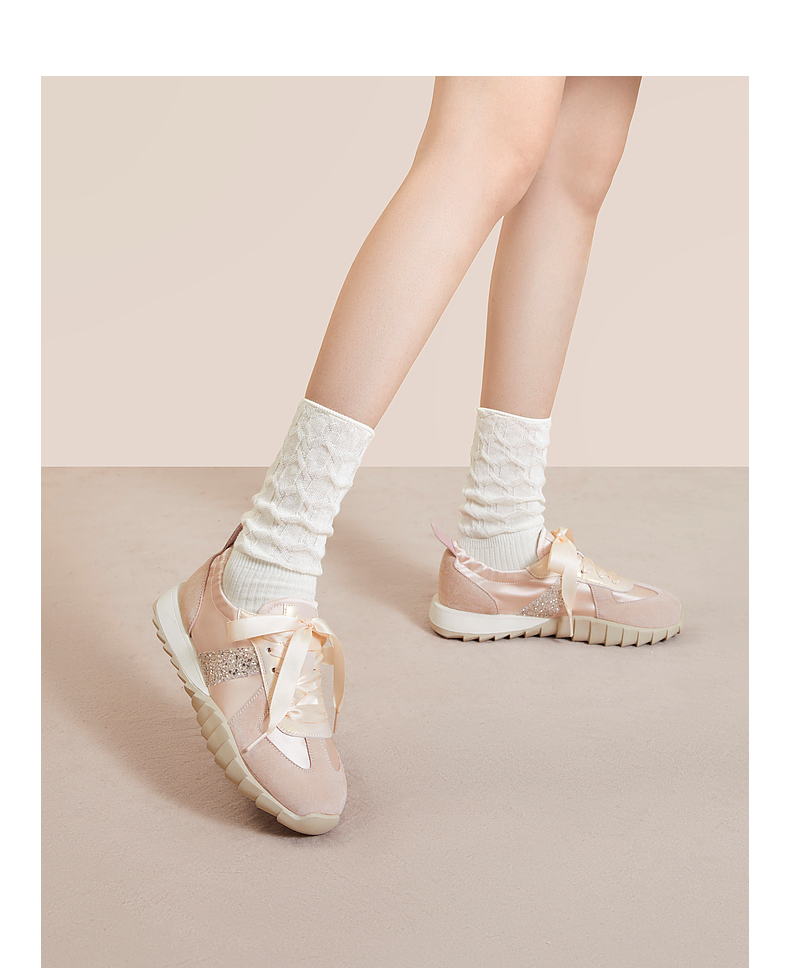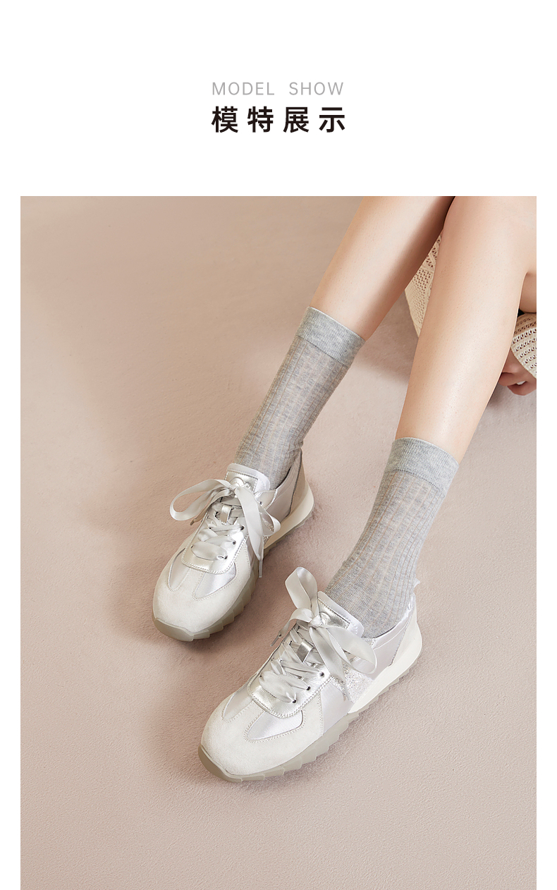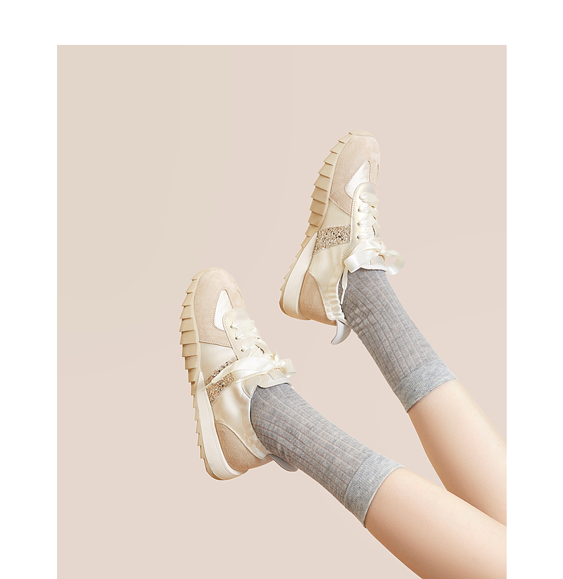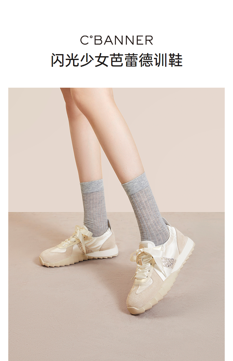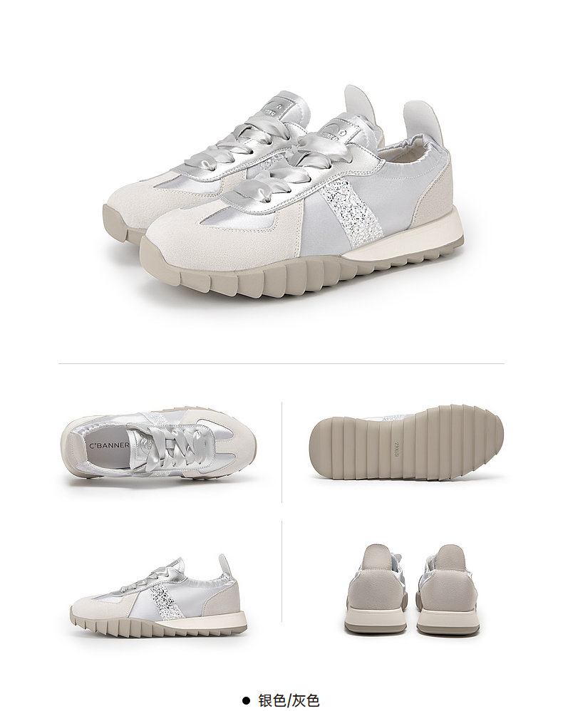 千百度新中式时尚休闲鞋女款秋季钻片拼接厚底德训运动鞋A24466699