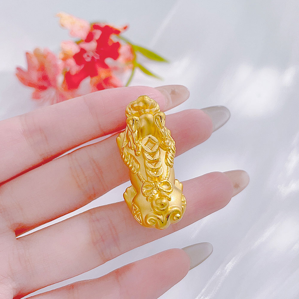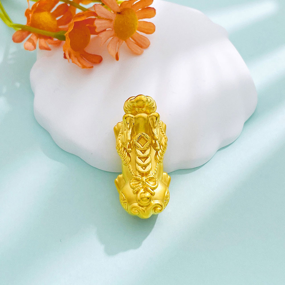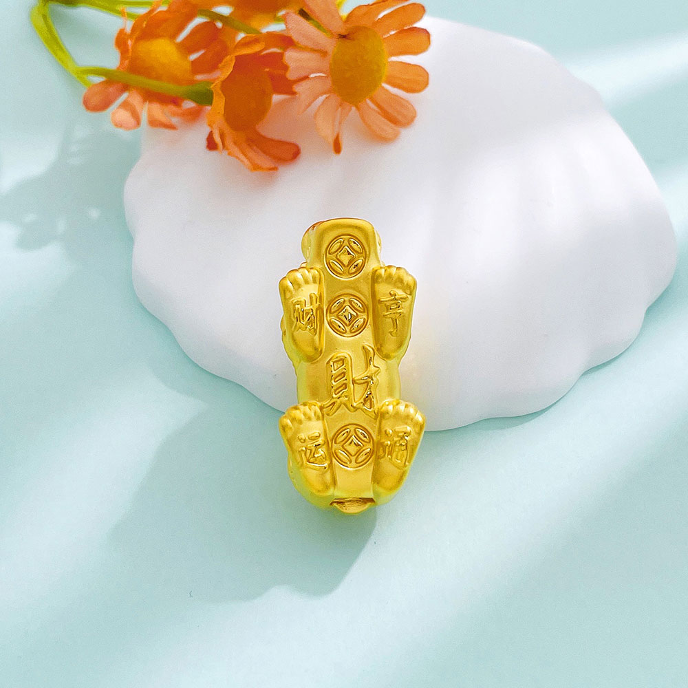 【限时7.5折】【定价黄金】足金 3D硬金空心财运亨通铜钱图案貔貅手串配件Diy手串配件(面宽约35.6*16.1mm)(AU3DSC00033-1)(特殊产品下单后不退款不退货不换货不补差价)