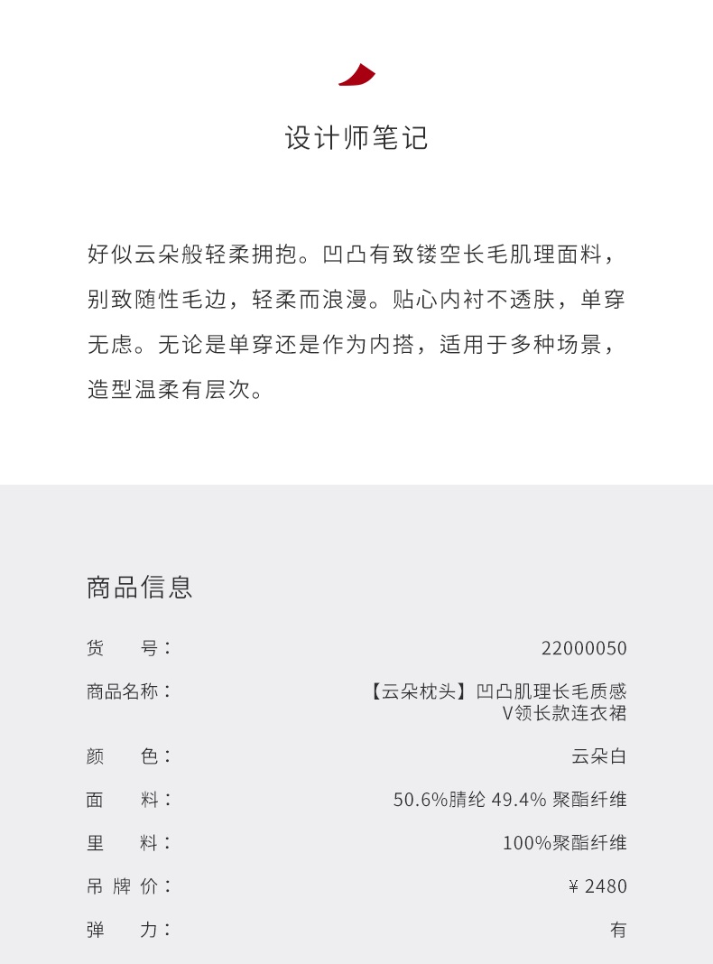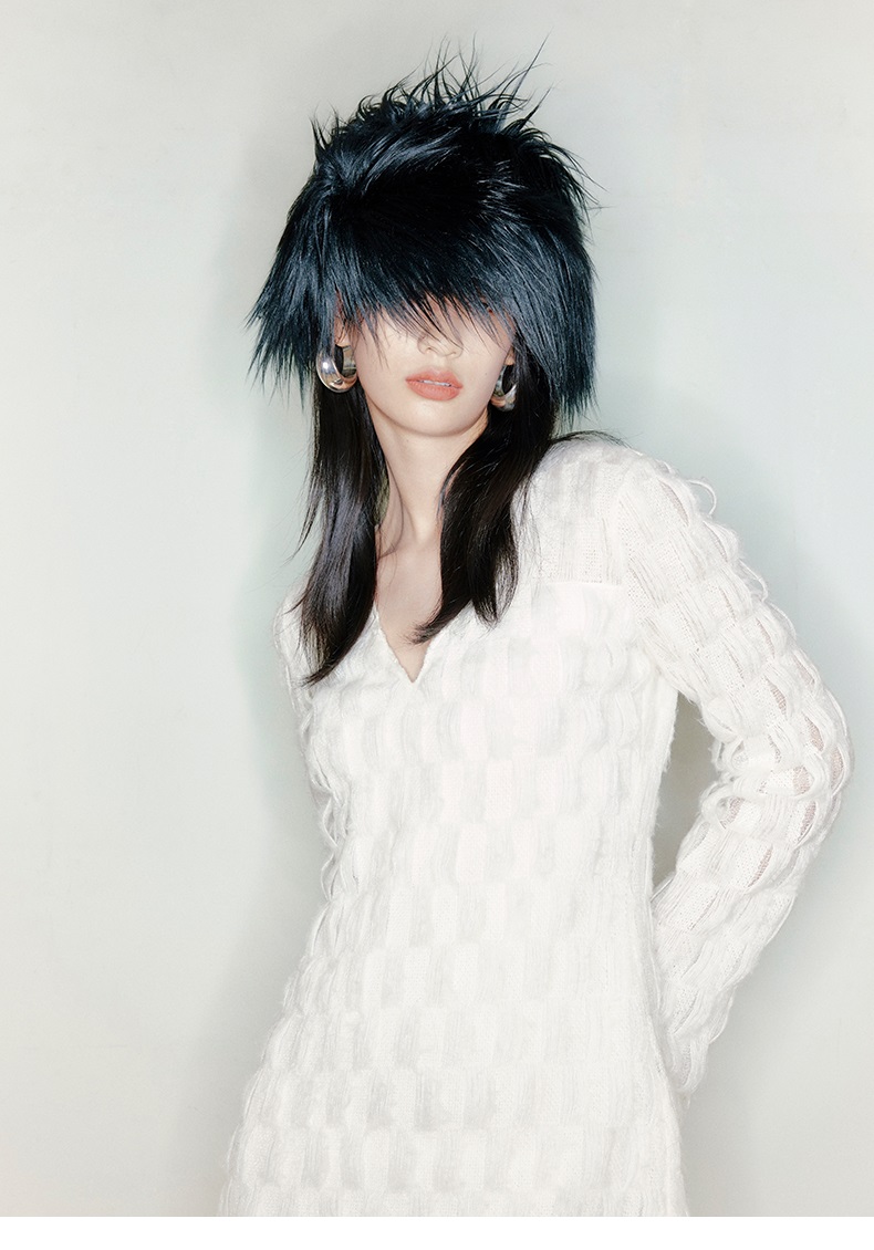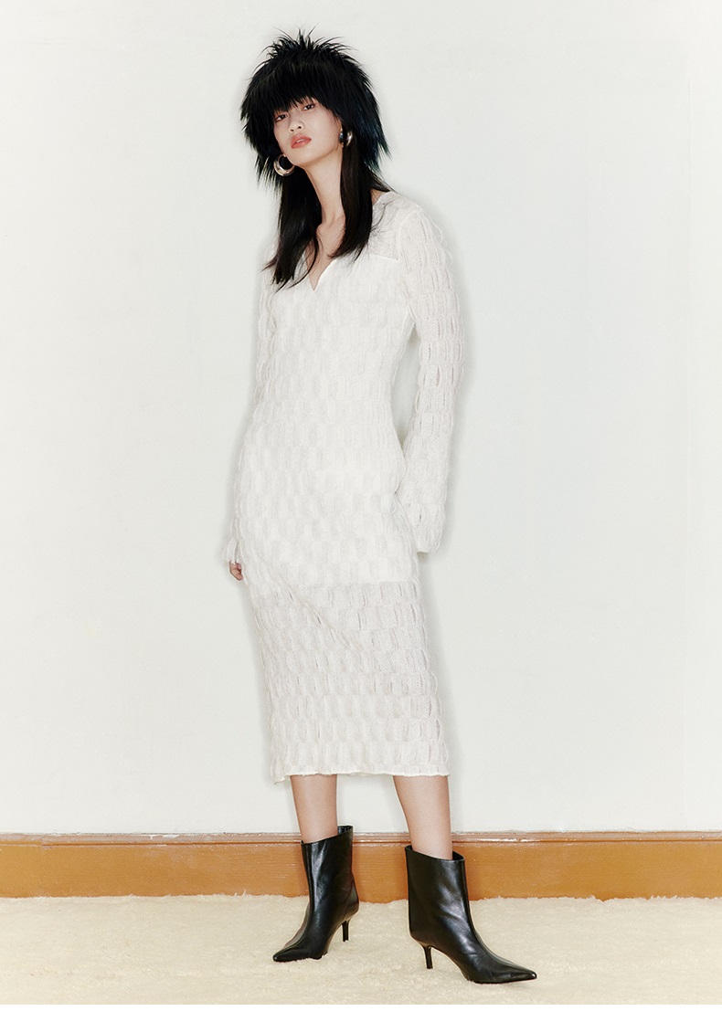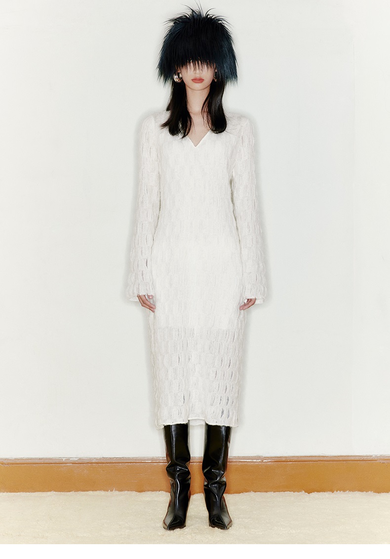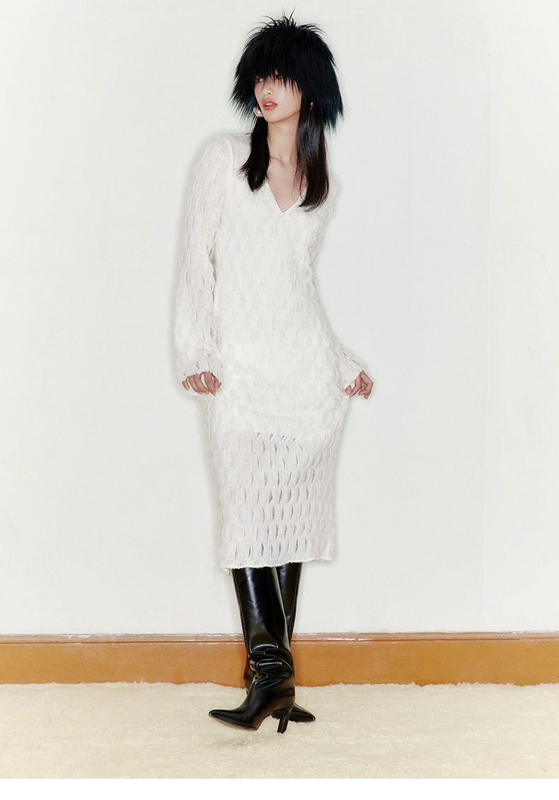 【云朵枕头】凹凸肌理长毛质感V领长款连衣裙/22000050