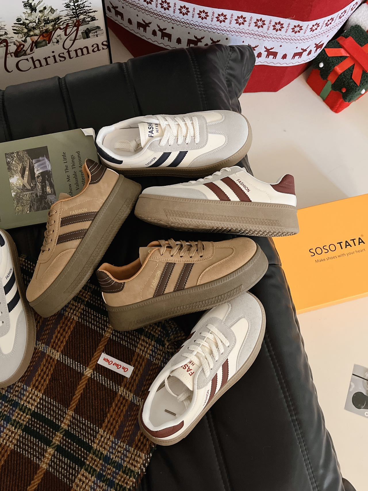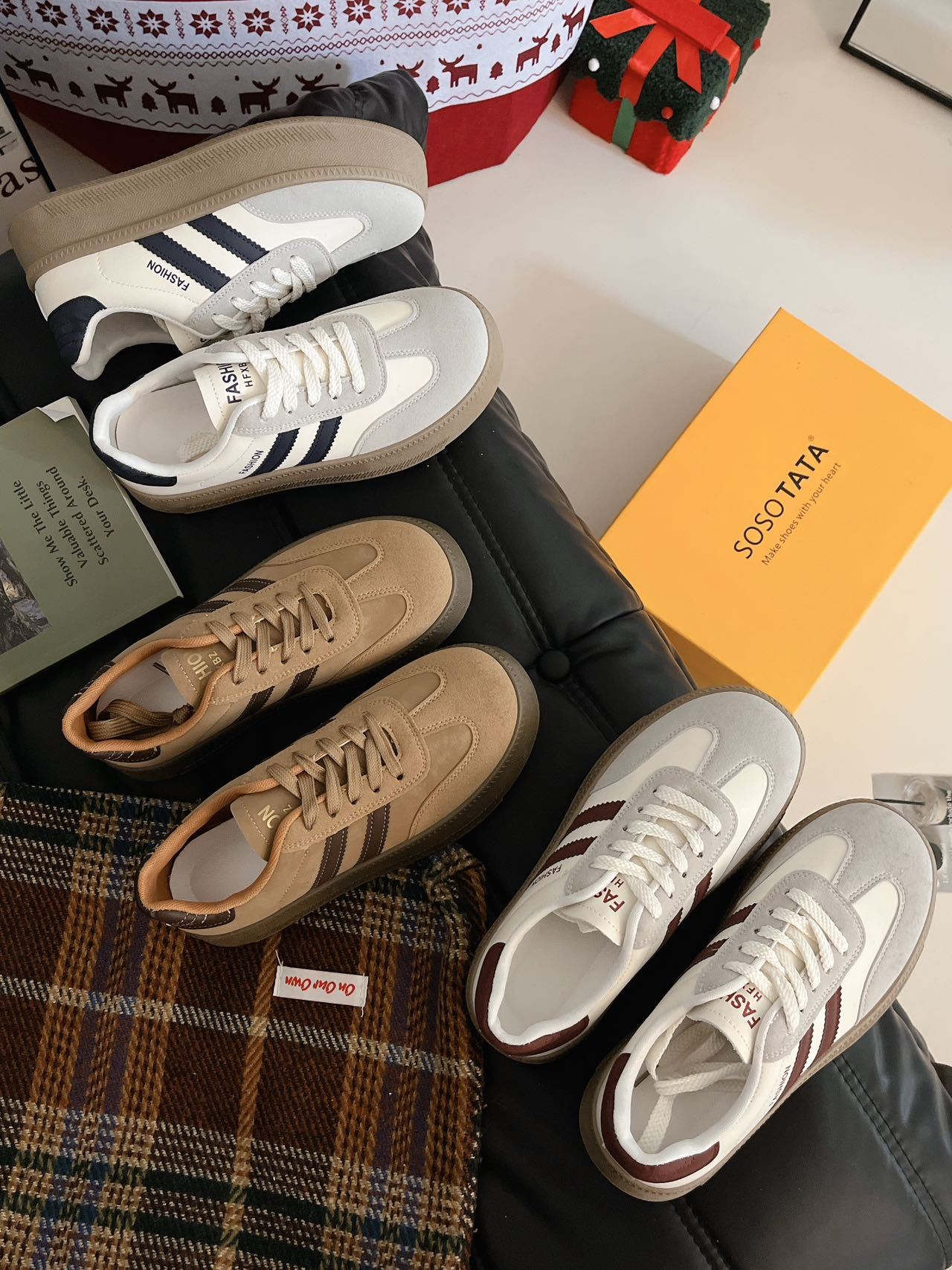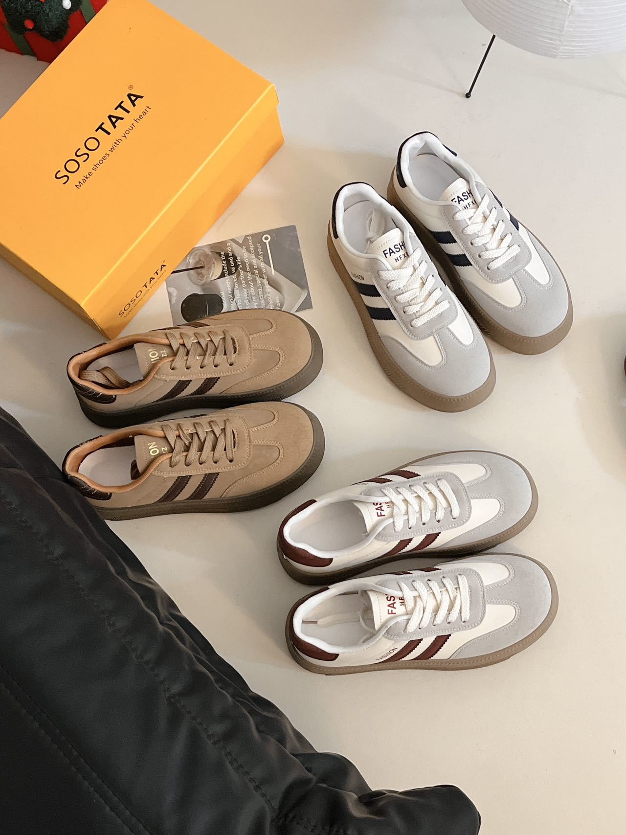 SOSOTATA 复古德训板鞋 4cm跟高设计,上脚柔软,显腿长;足弓支撑,舒适缓压;M型小圆头,上脚不臃肿;防滑鞋底,时尚百搭