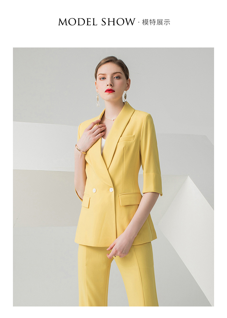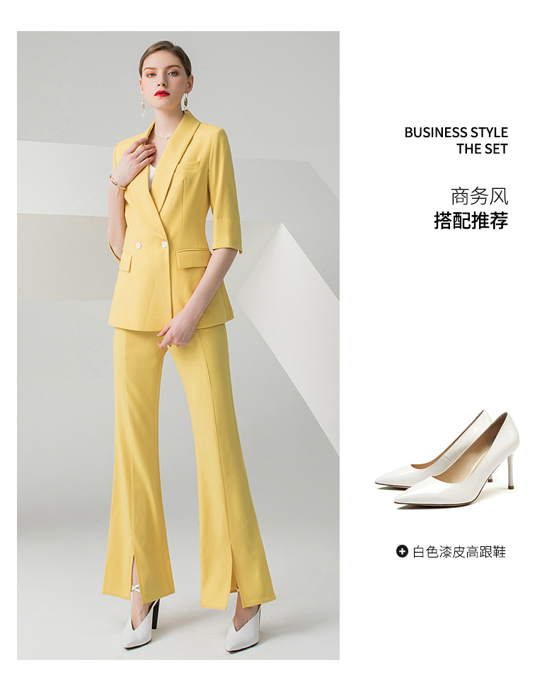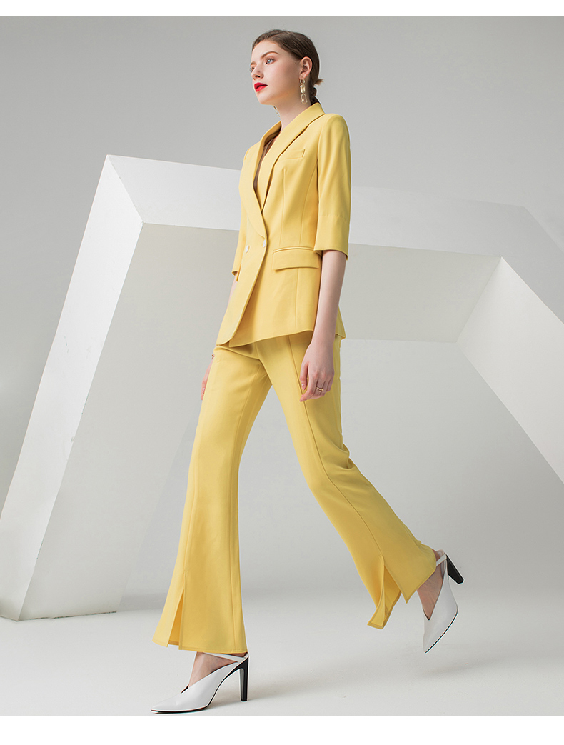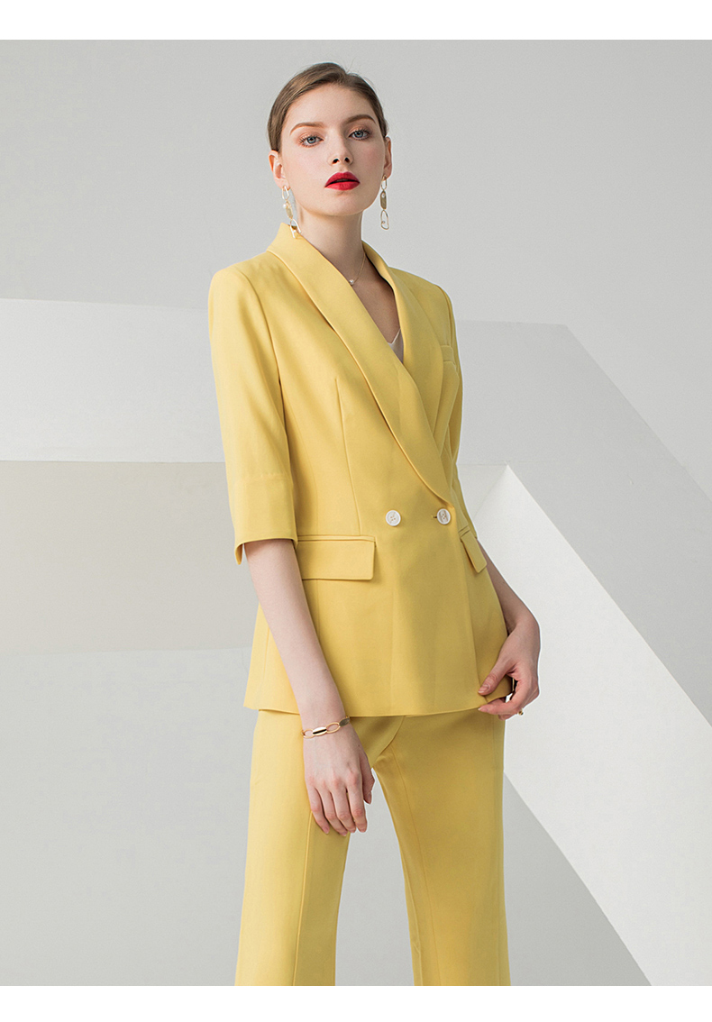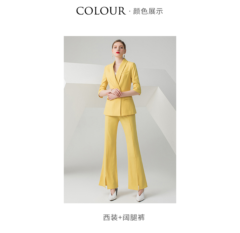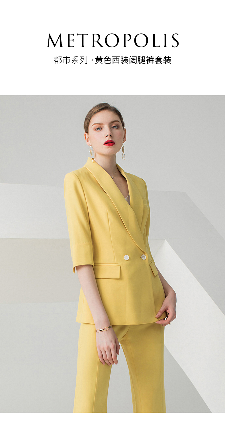 IWY/黄色五分袖西装阔腿裤套装C10226+P30226