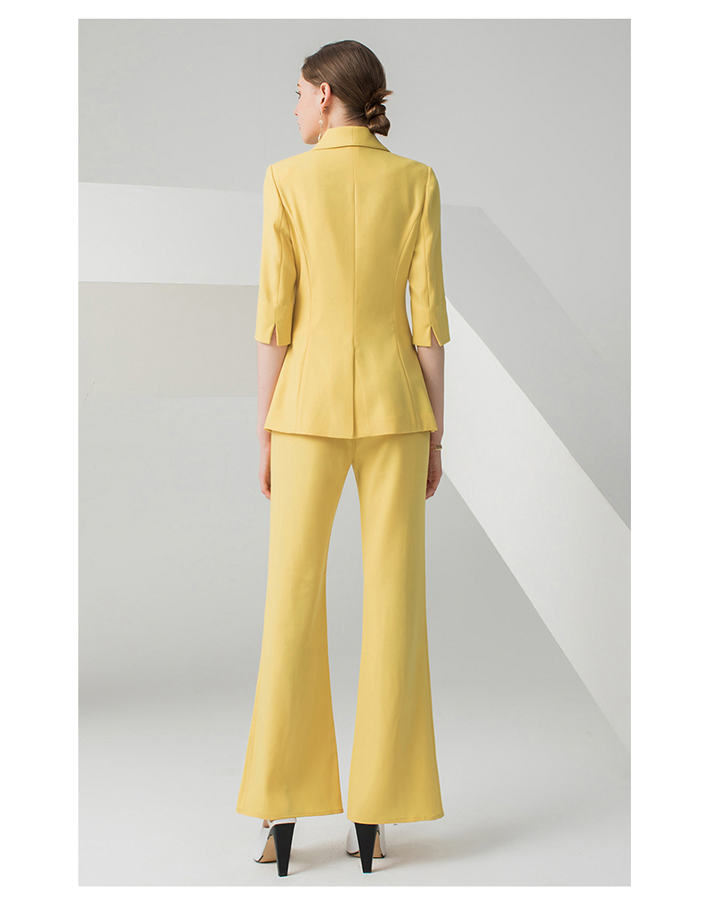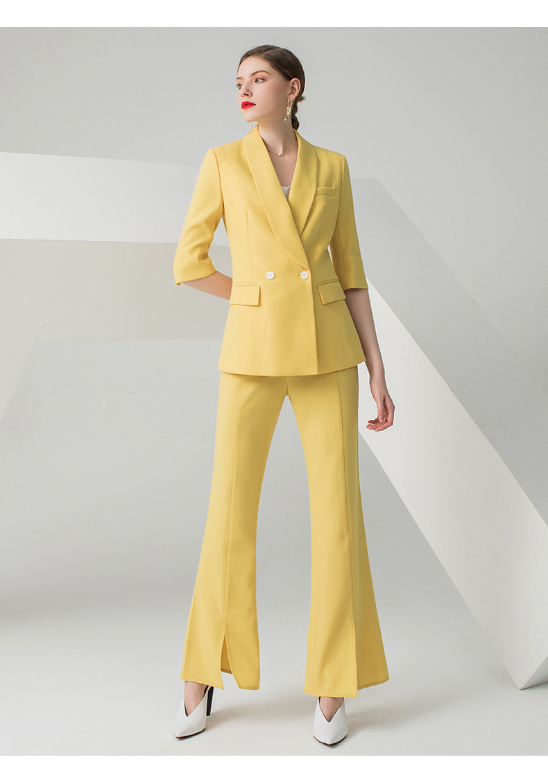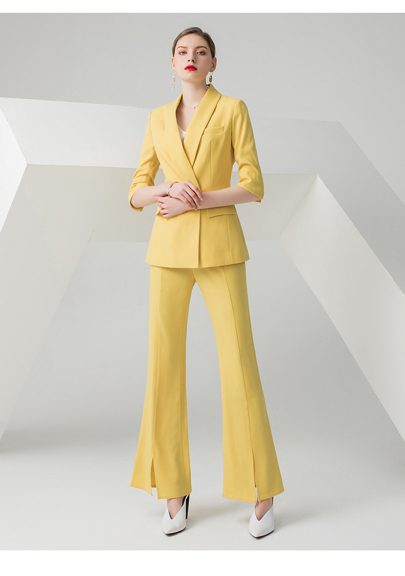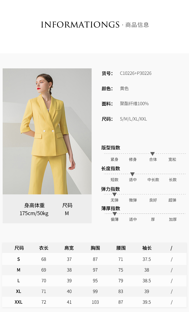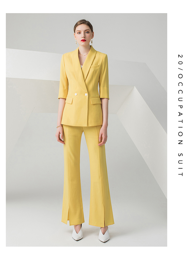 IWY/黄色五分袖西装阔腿裤套装C10226+P30226