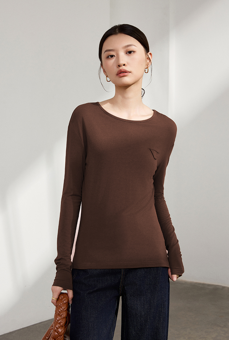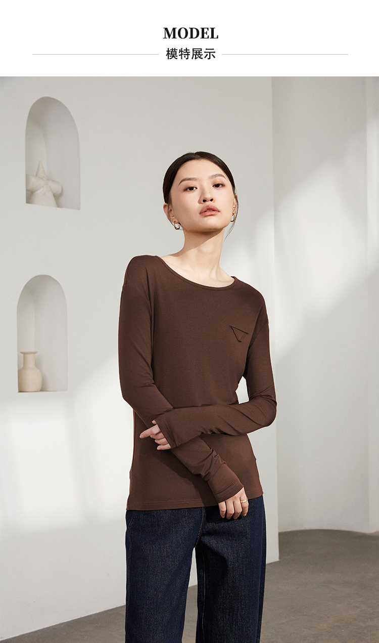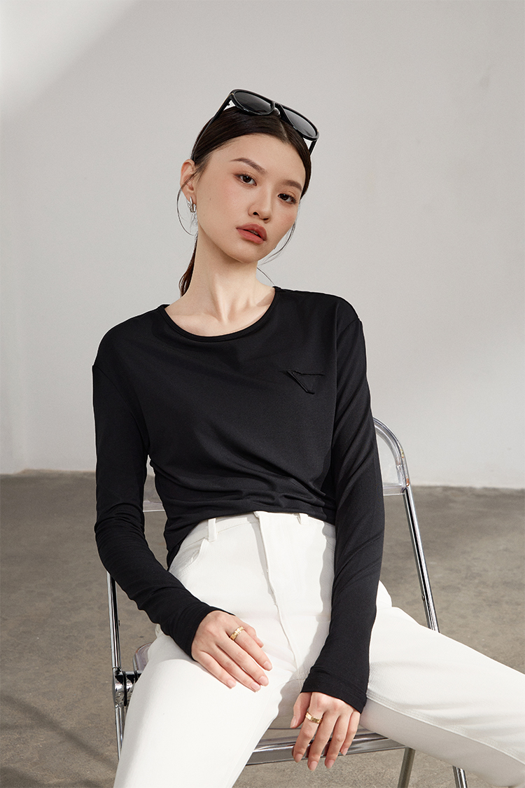 【马油面料独家润肤】LILYMOON秋季马油打底衫T恤三角贴设计感百搭舒适轻盈柔软老钱风