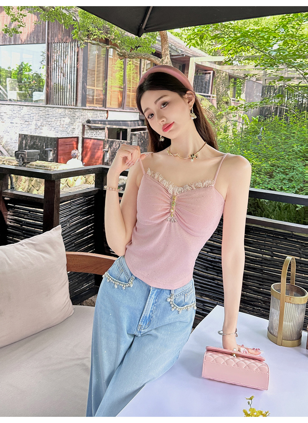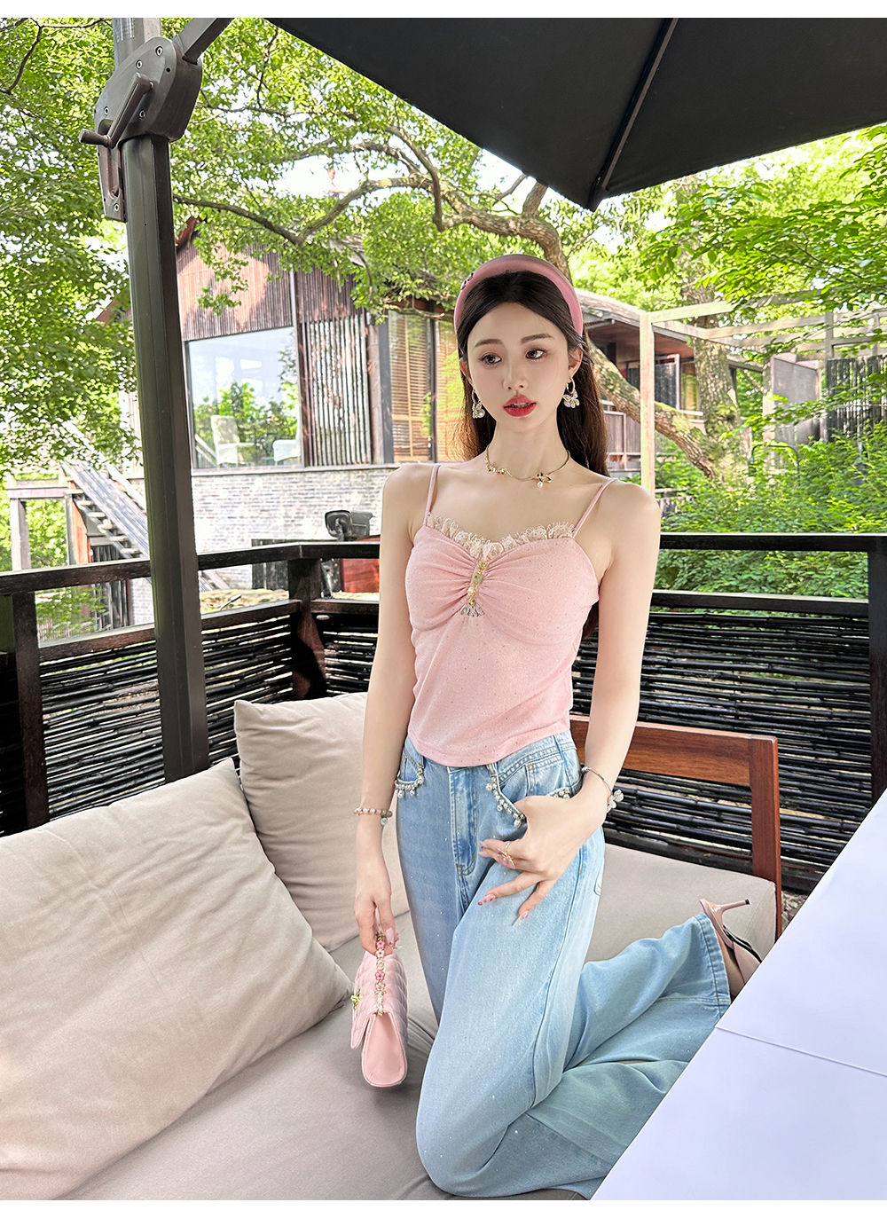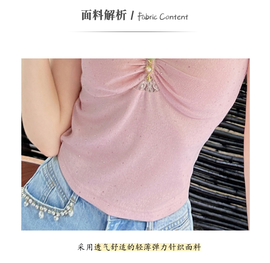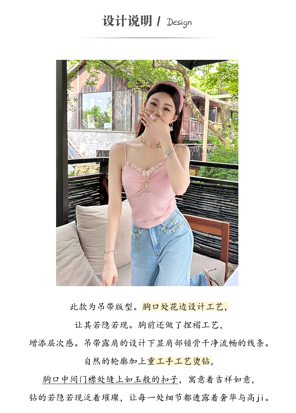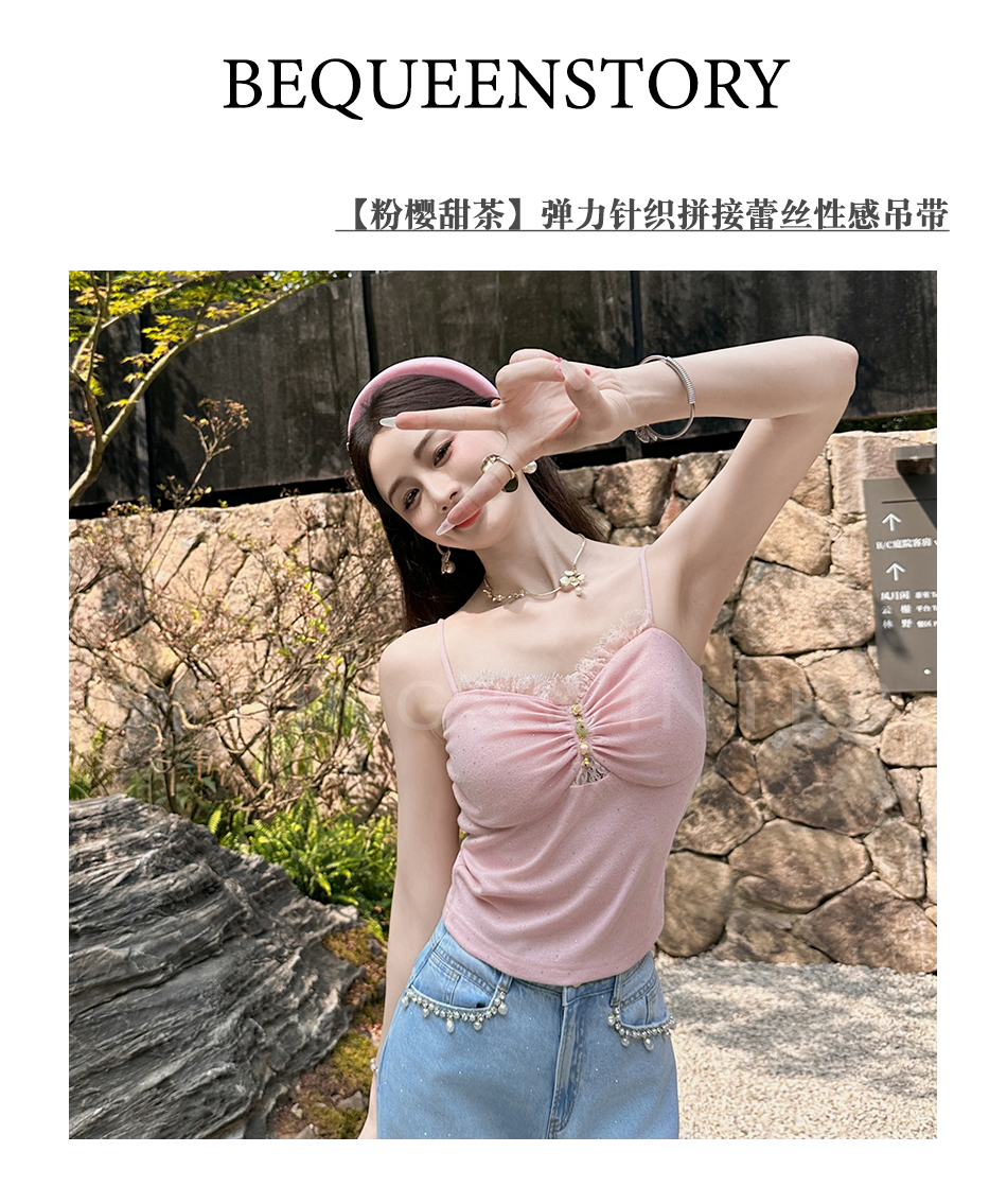 【大货捡漏,不退不换】 【粉樱甜茶】透气轻薄弹力针织拼接蕾丝性感百搭吊带