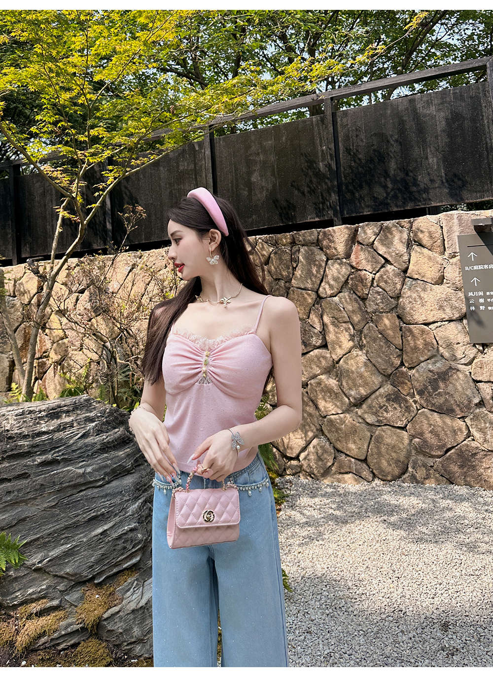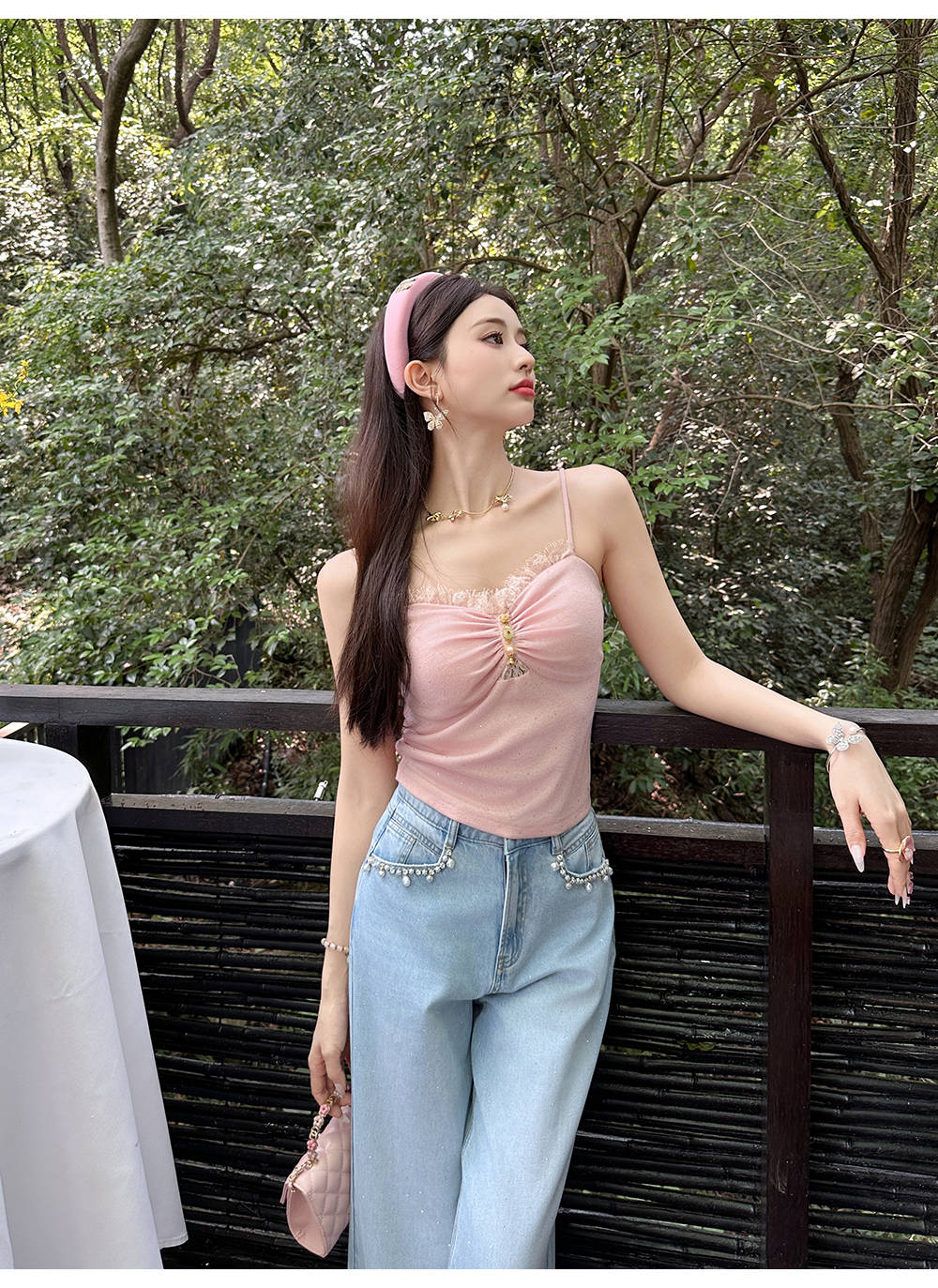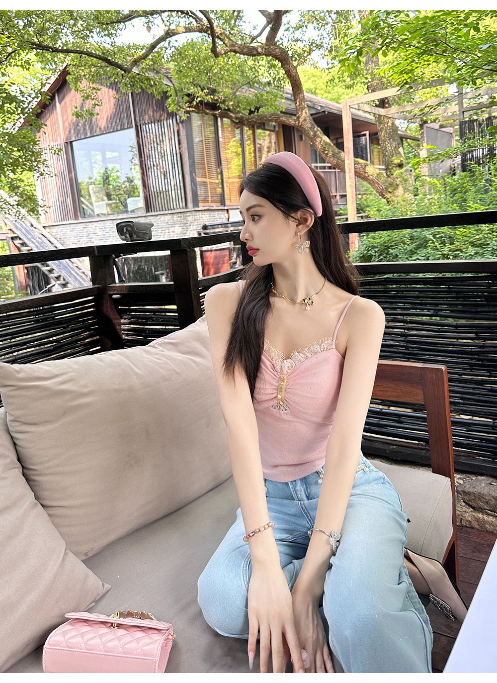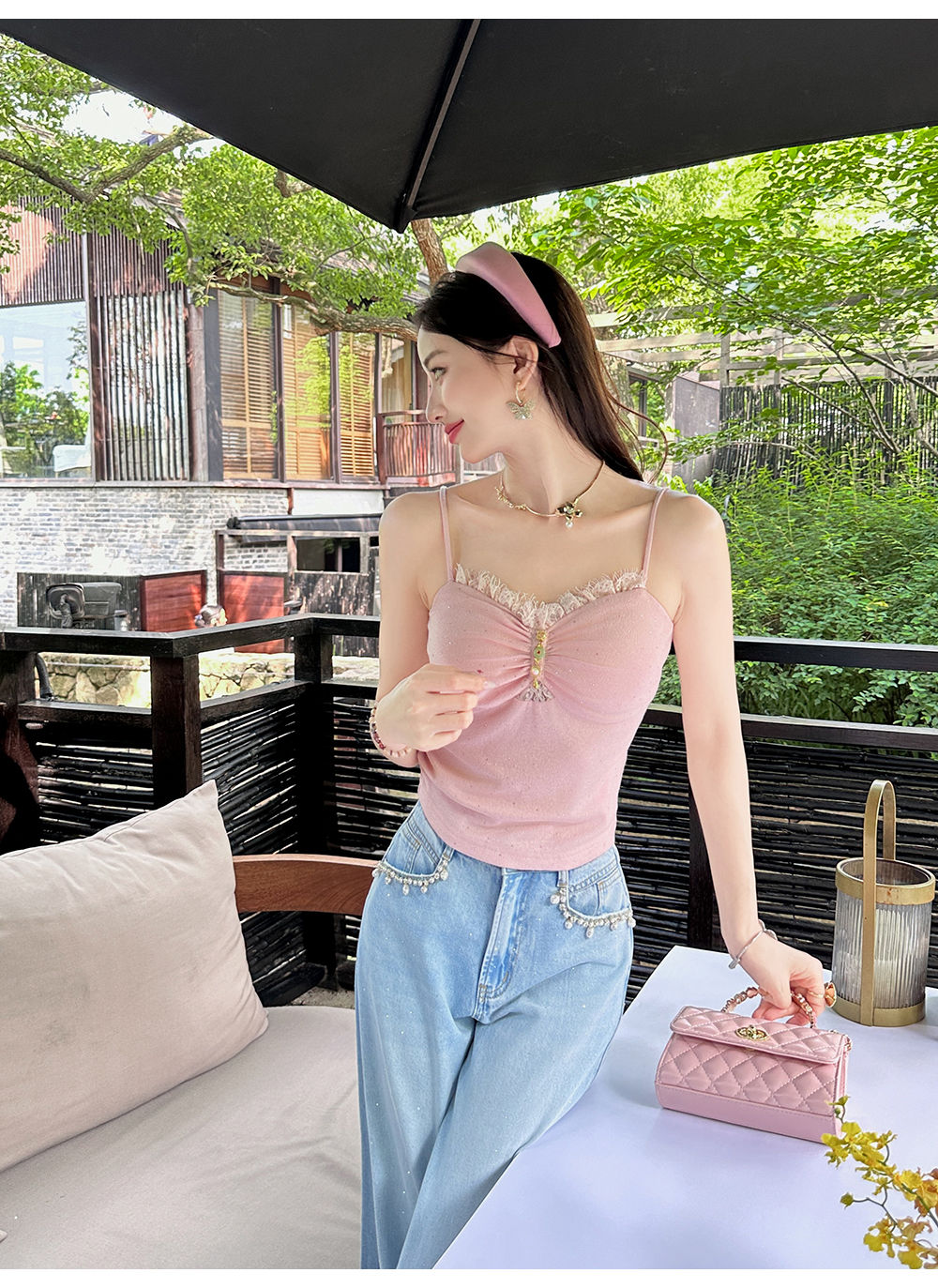 【大货捡漏,不退不换】 【粉樱甜茶】透气轻薄弹力针织拼接蕾丝性感百搭吊带