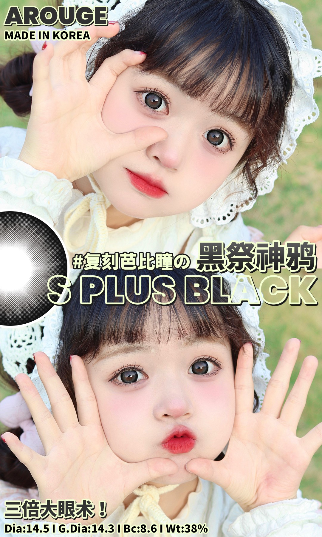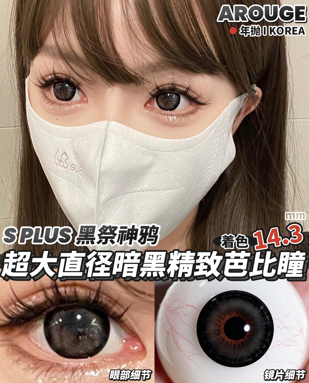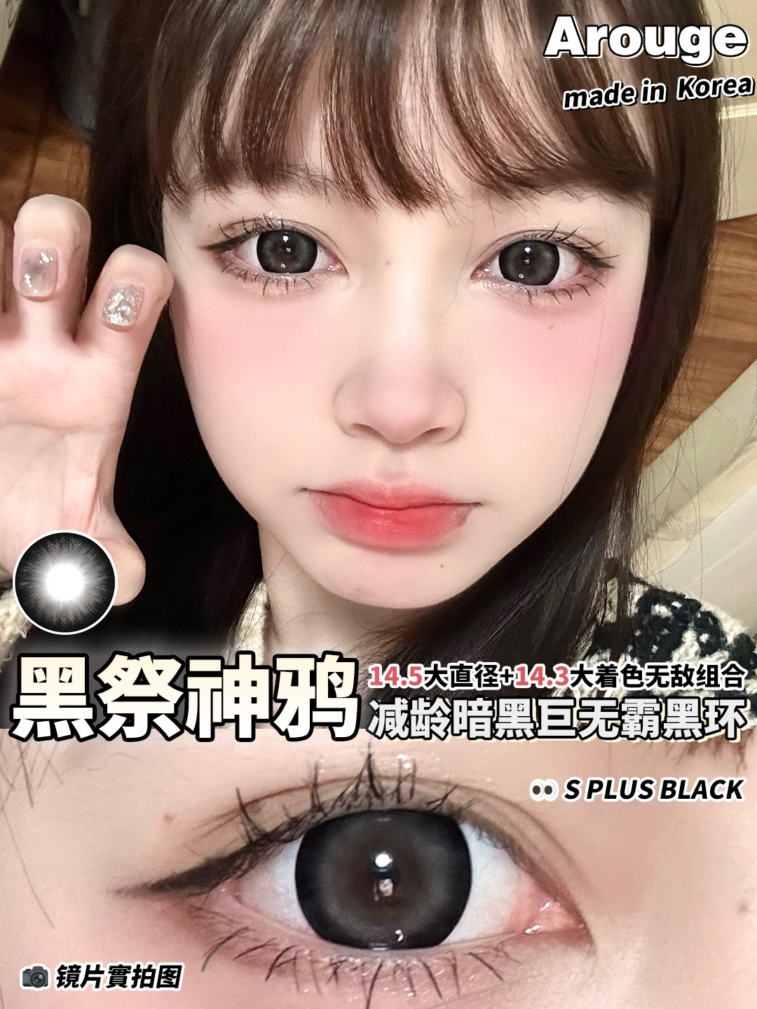 arouge 黑祭神鸦 大得吓人 眼睛可能无法呼吸 大黑环 半年抛 14.5 超大直径 含硅水凝胶