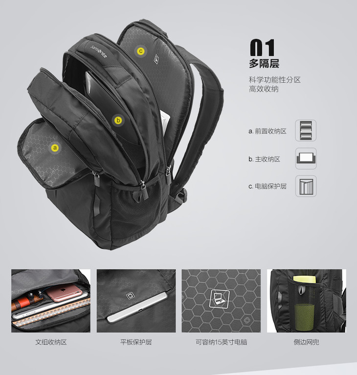 新秀丽休闲电脑双肩包 轻盈大容 通勤差旅好伴侣 Z93