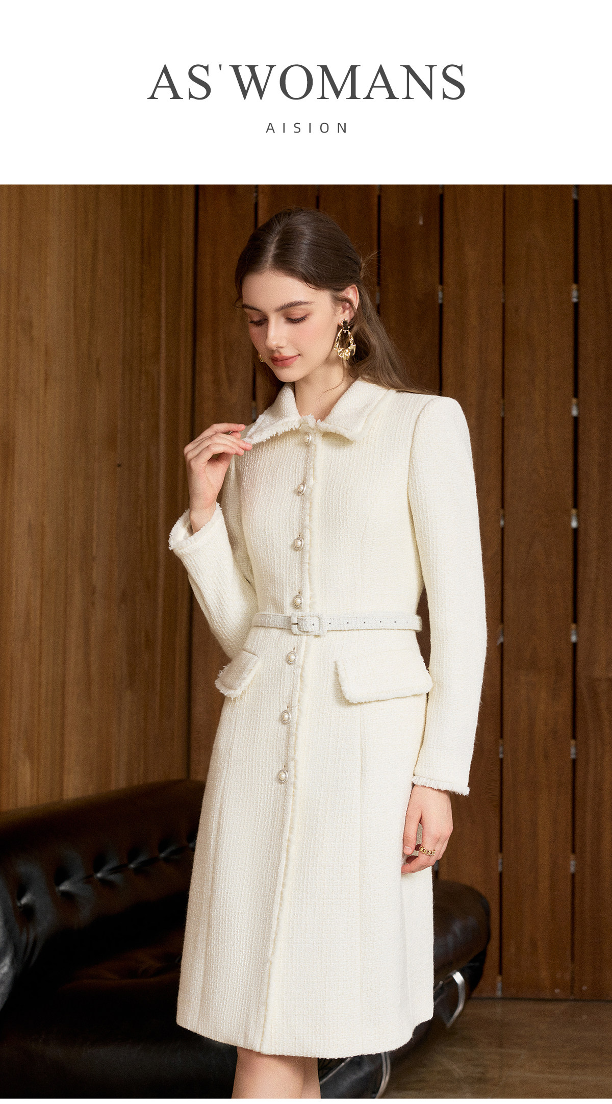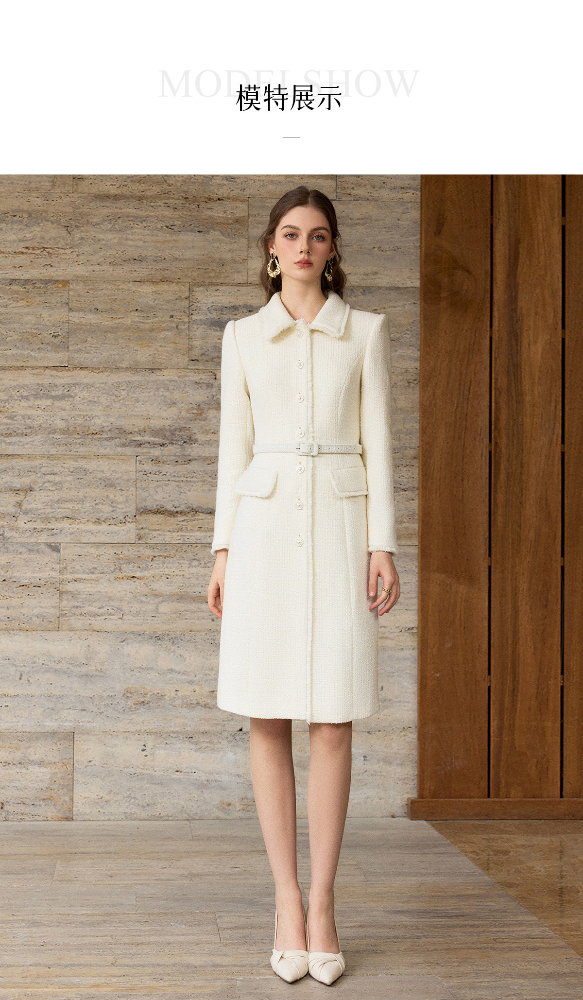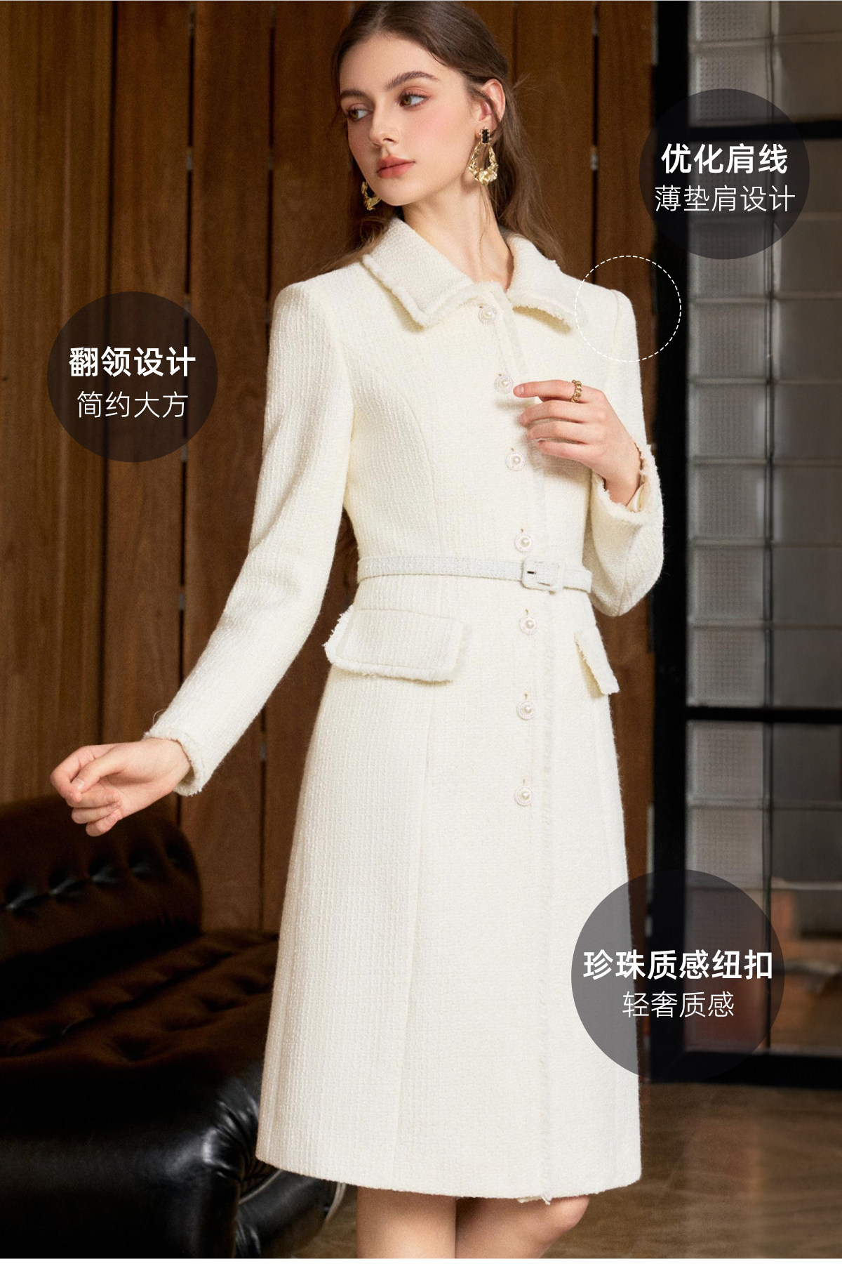 IWY/小香风米白色羊毛连衣裙女收腰排扣高级感气质通勤职业装25Q907