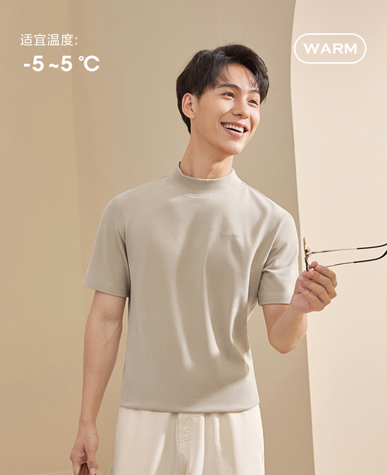 柒牌男士短袖保暖内衣2024秋季新款发热抗菌双面磨毛休闲百搭上衣 127F70030